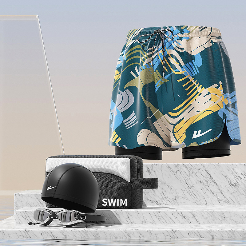 Huili 수영 트렁크 남자 안티 당혹감 플랫 앵글 루즈 프로 남자 온천 빠른 건조 플러스 사이즈 수영 장비 세트스토어 가기