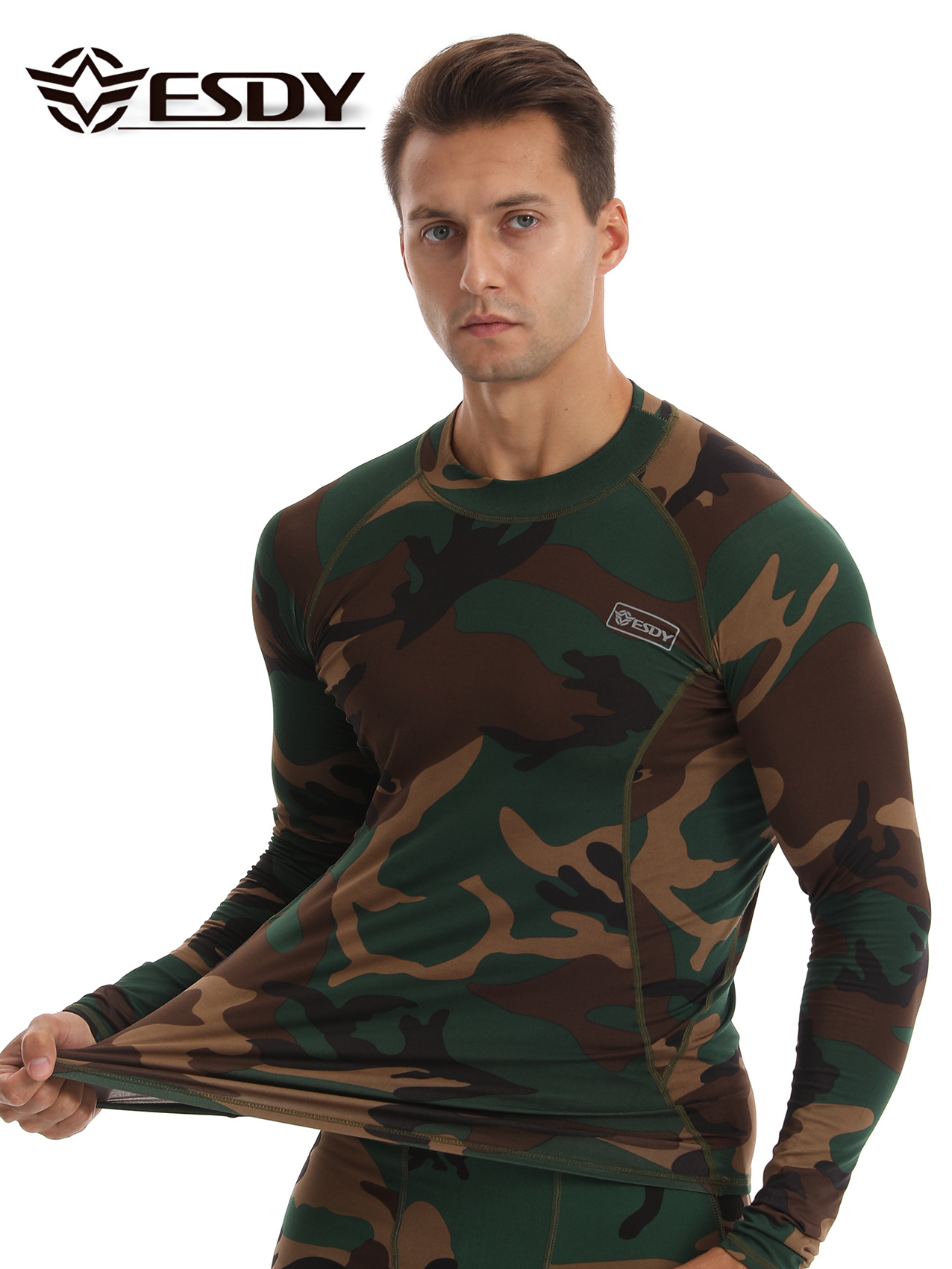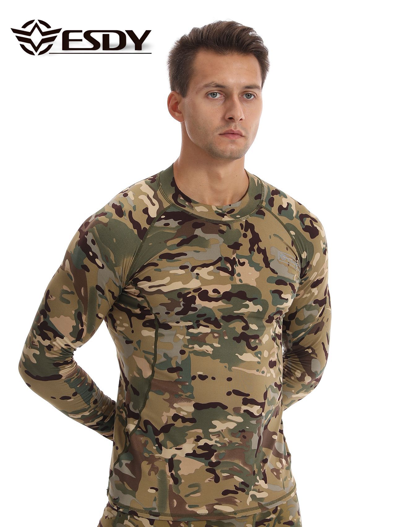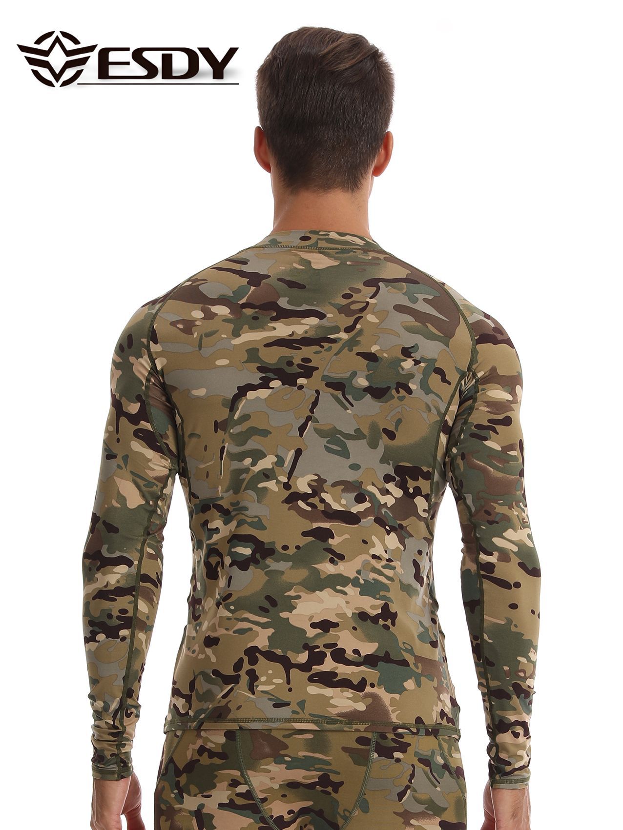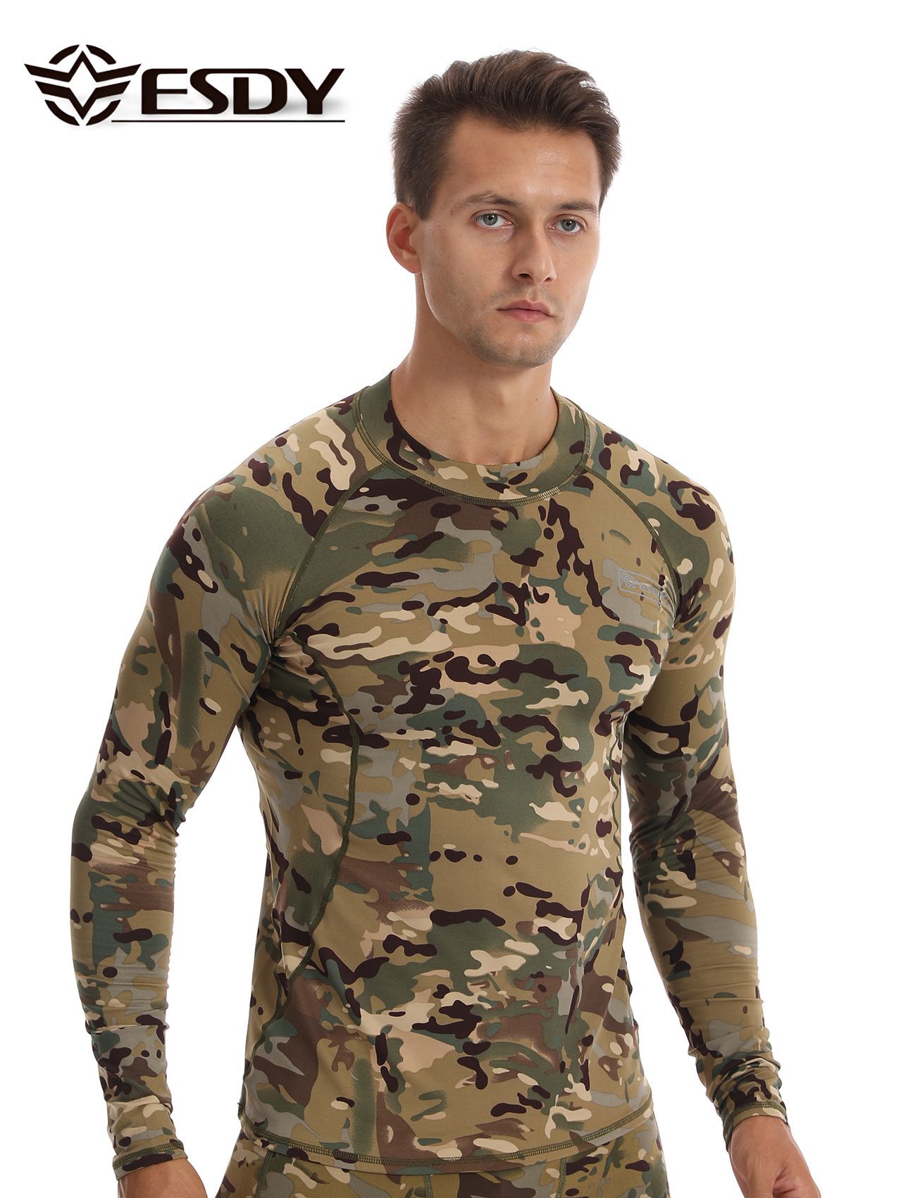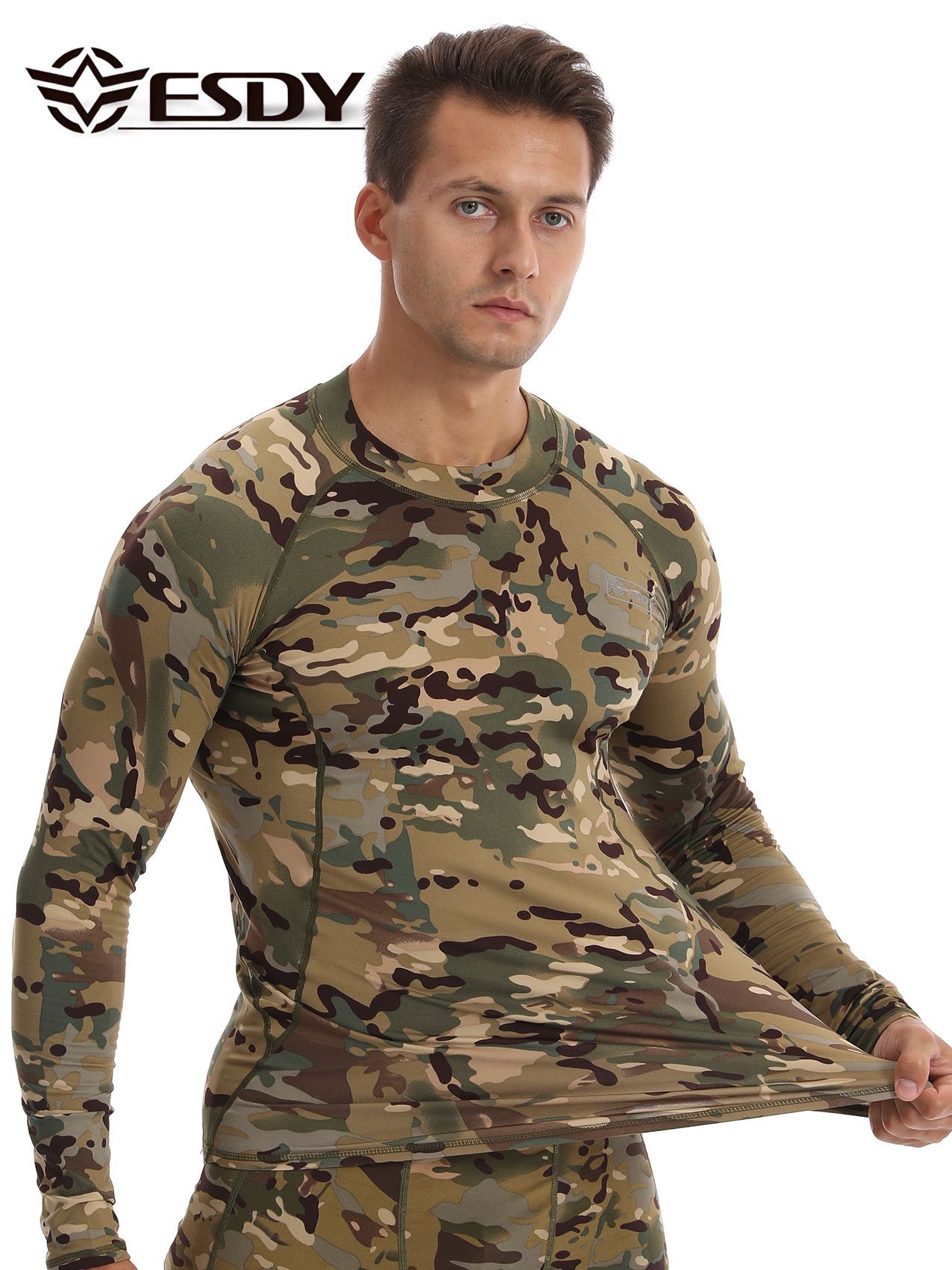 ESDY 새로운 라운드 넥 남자 스포츠 위장 속옷 국경 캐주얼 폴리 에스터 따뜻한 세트 찬 저항하는 174 탑