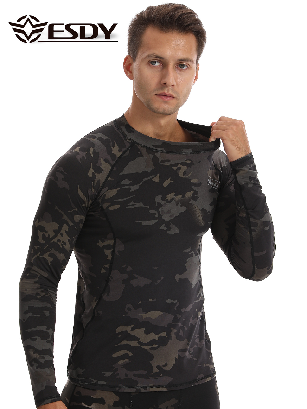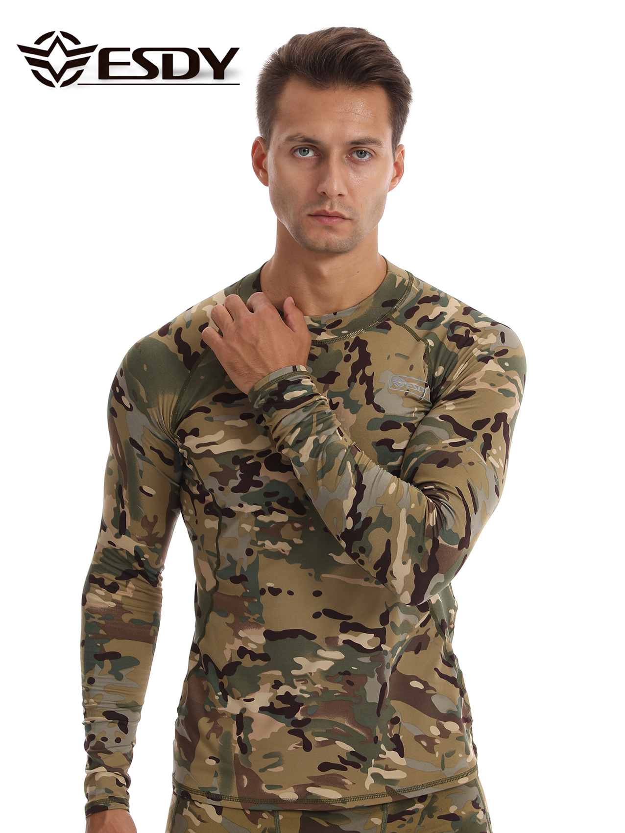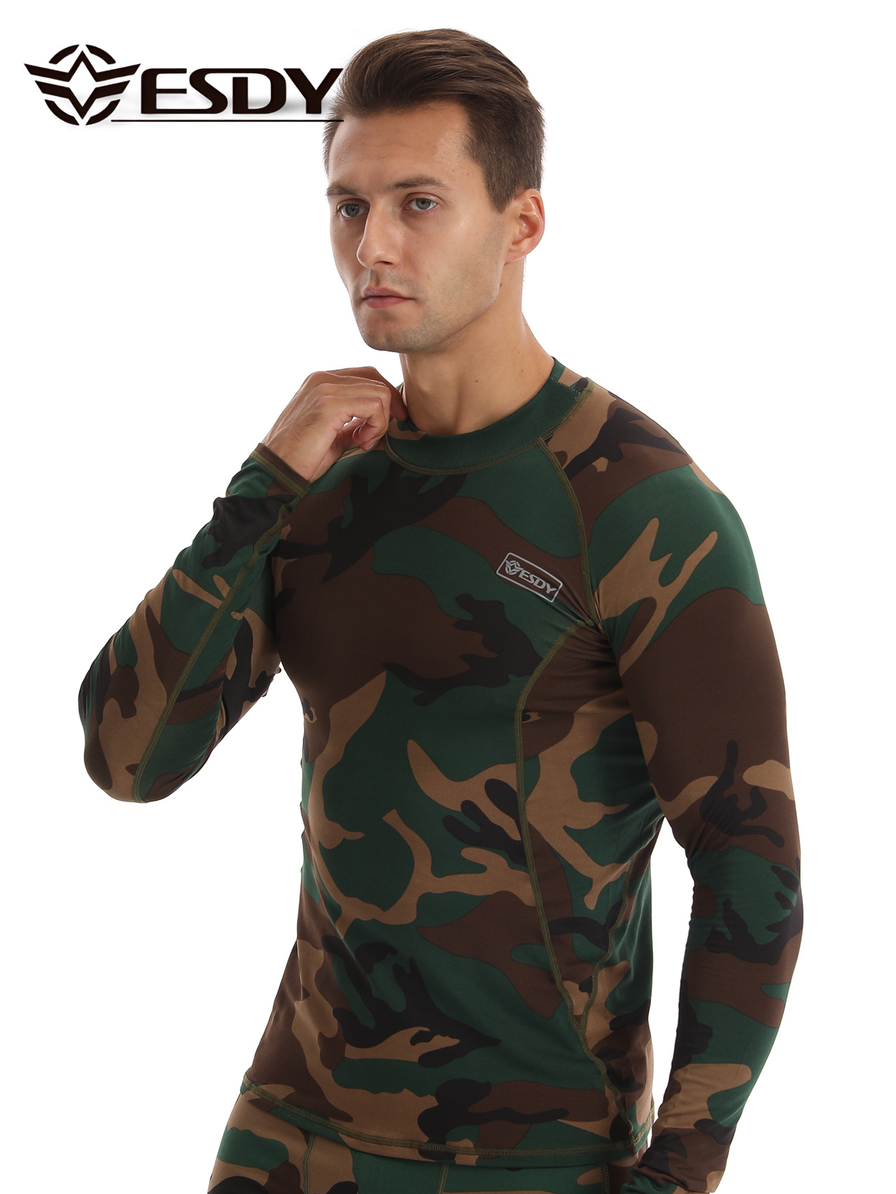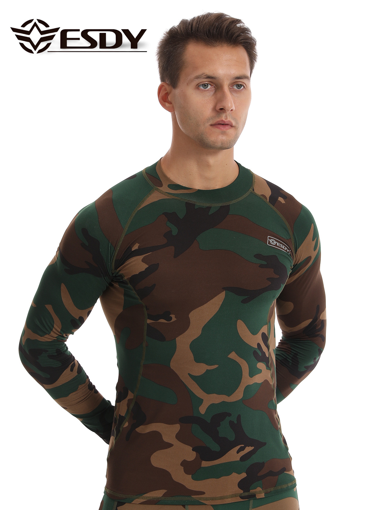 ESDY 새로운 라운드 넥 남자 스포츠 위장 속옷 국경 캐주얼 폴리 에스터 따뜻한 세트 찬 저항하는 174 탑