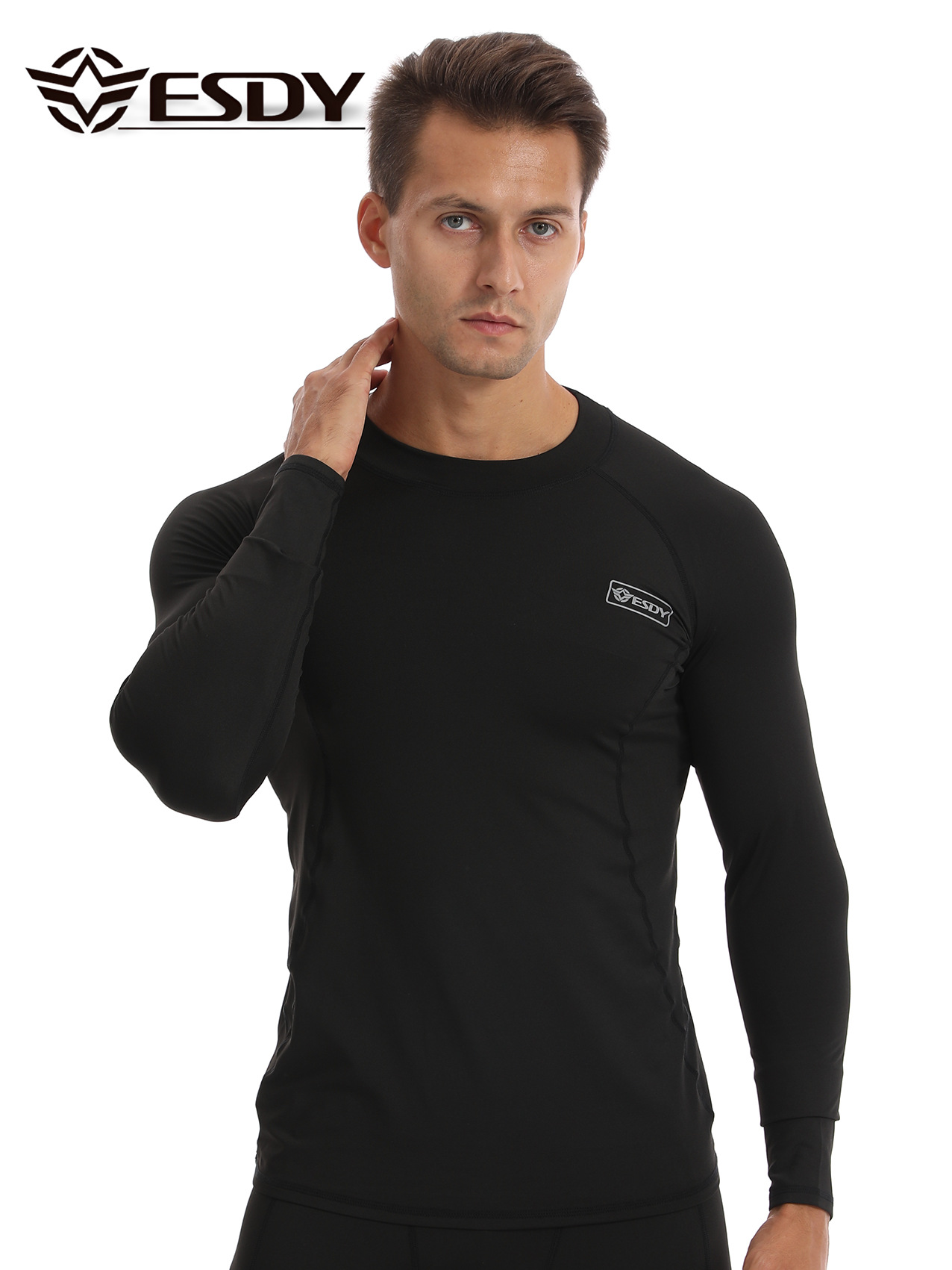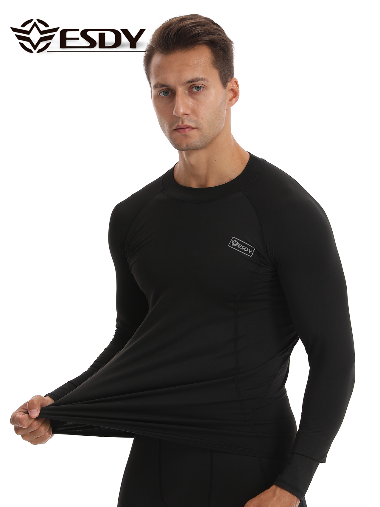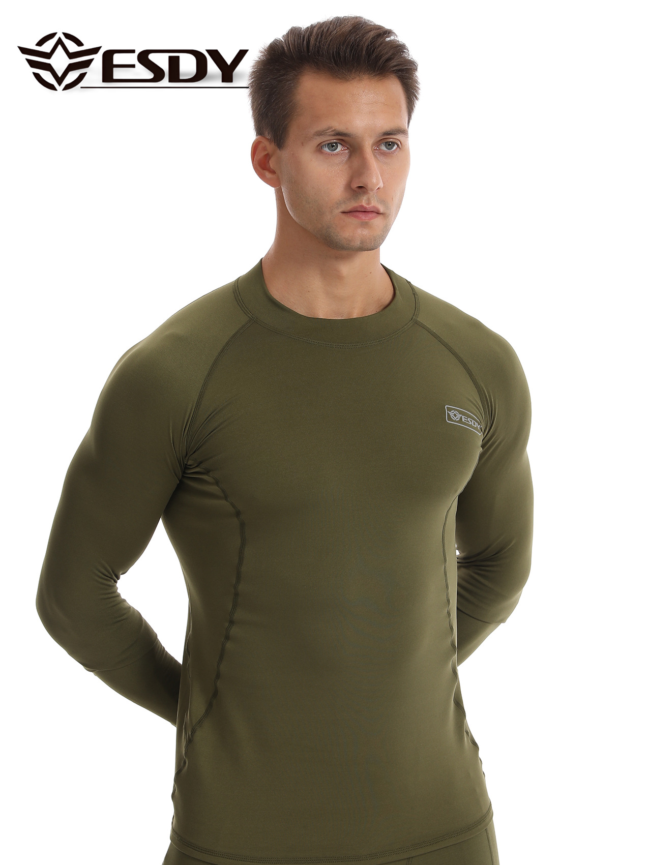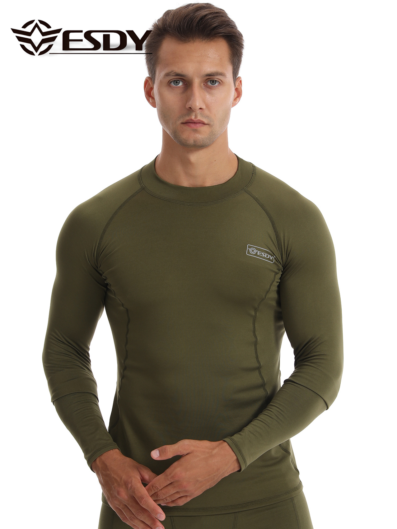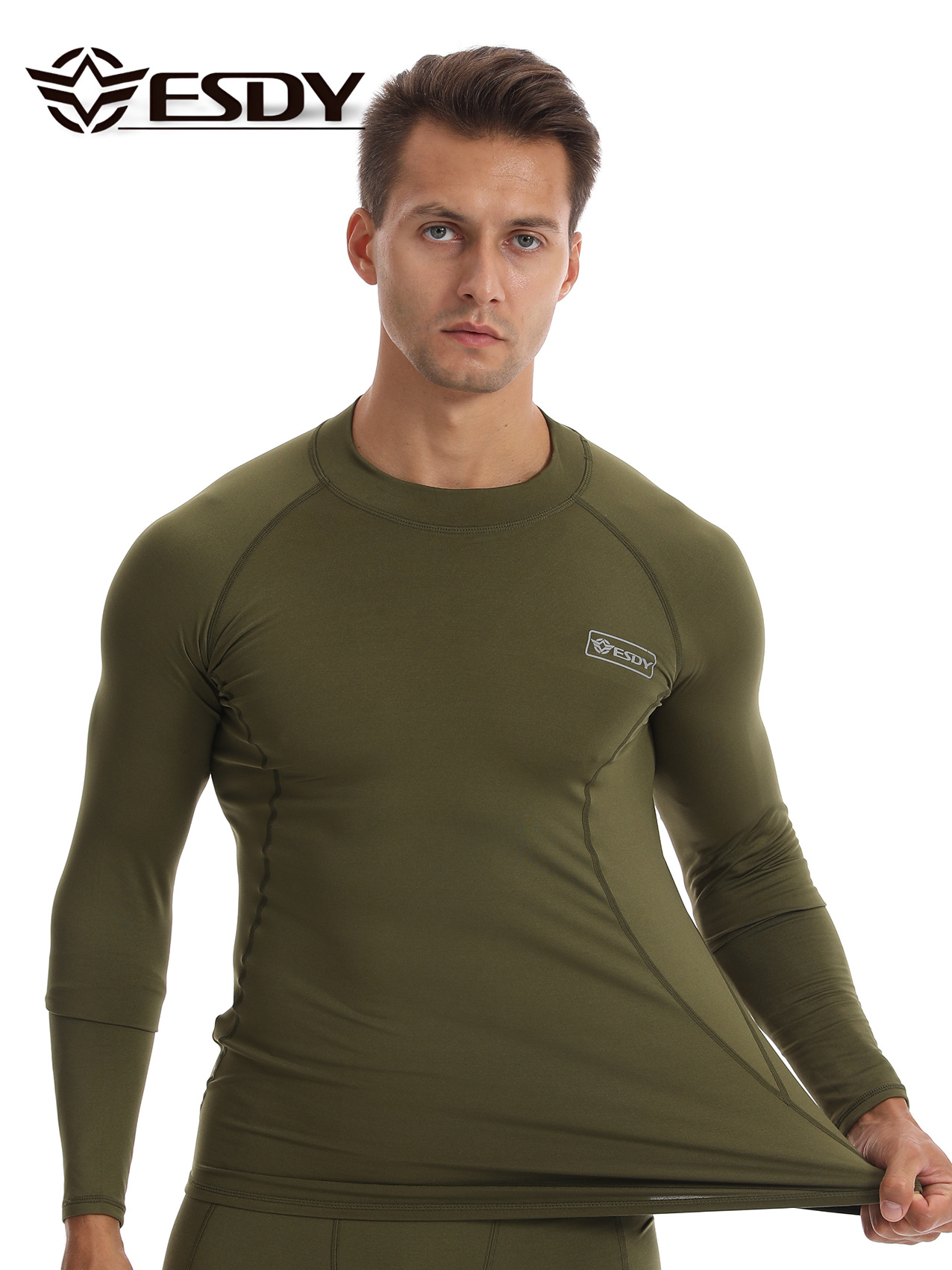 ESDY 새로운 라운드 넥 남자 스포츠 위장 속옷 국경 캐주얼 폴리 에스터 따뜻한 세트 찬 저항하는 174 탑
