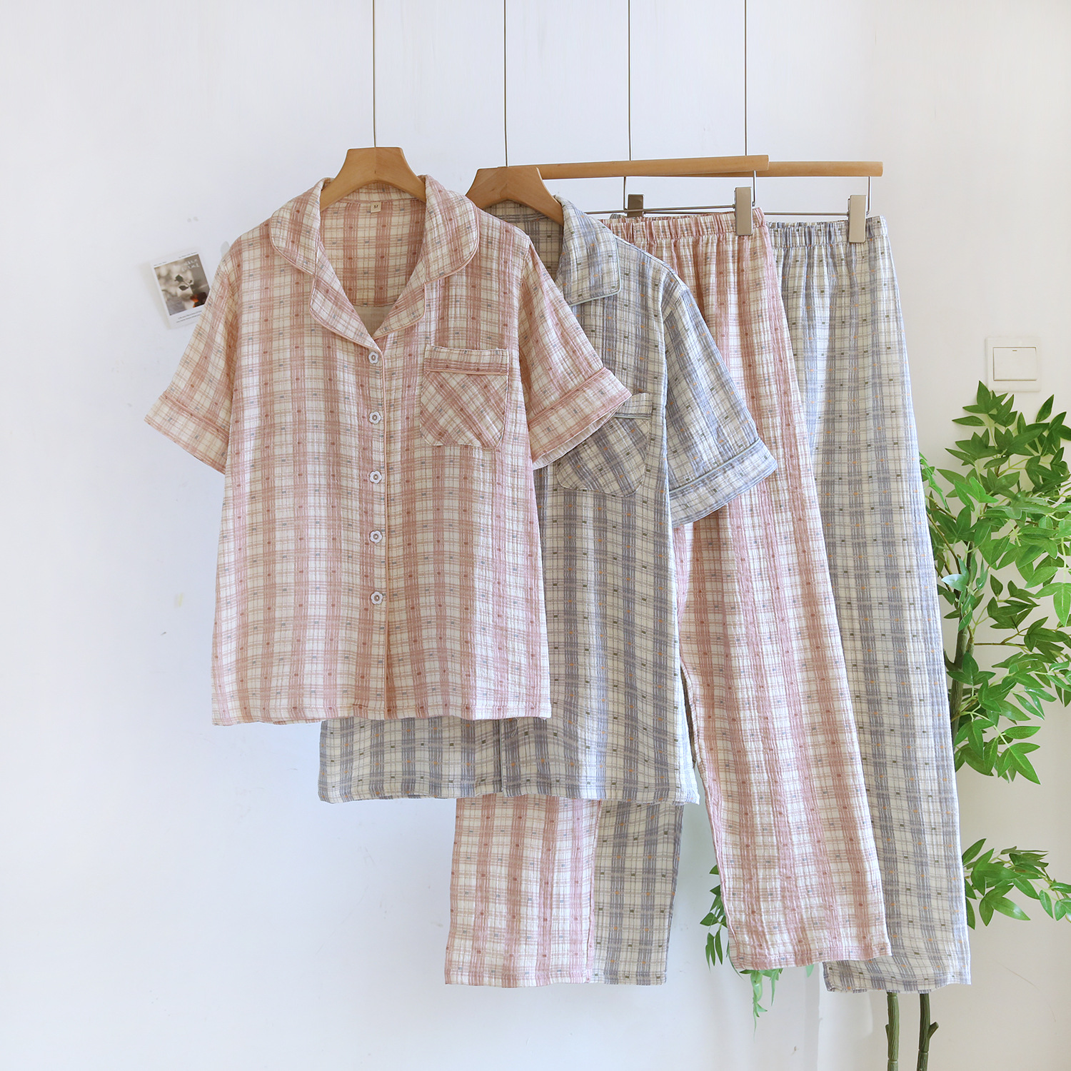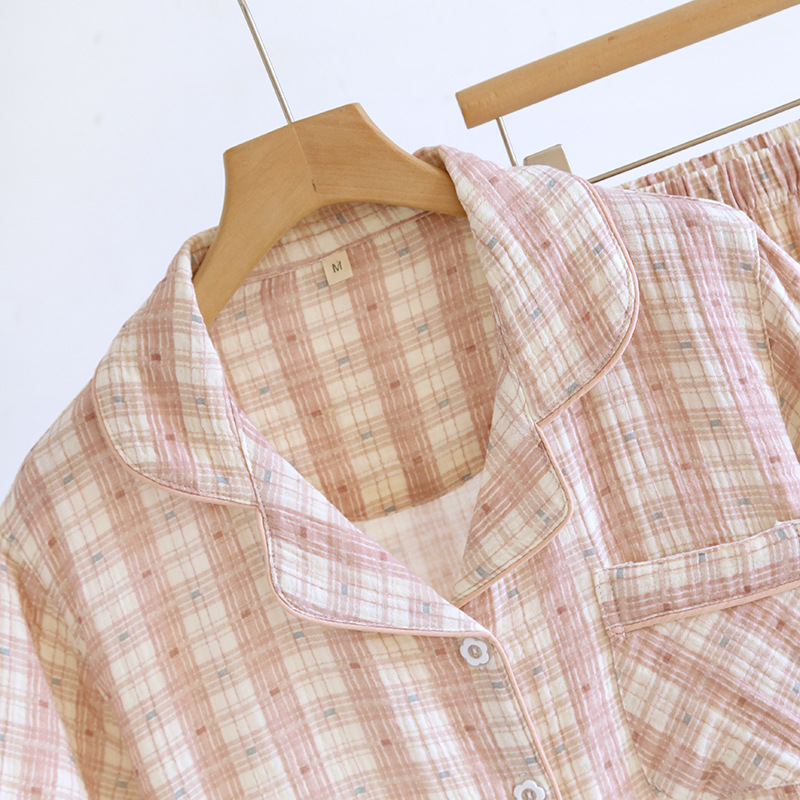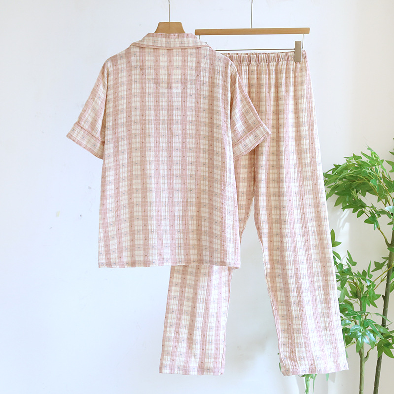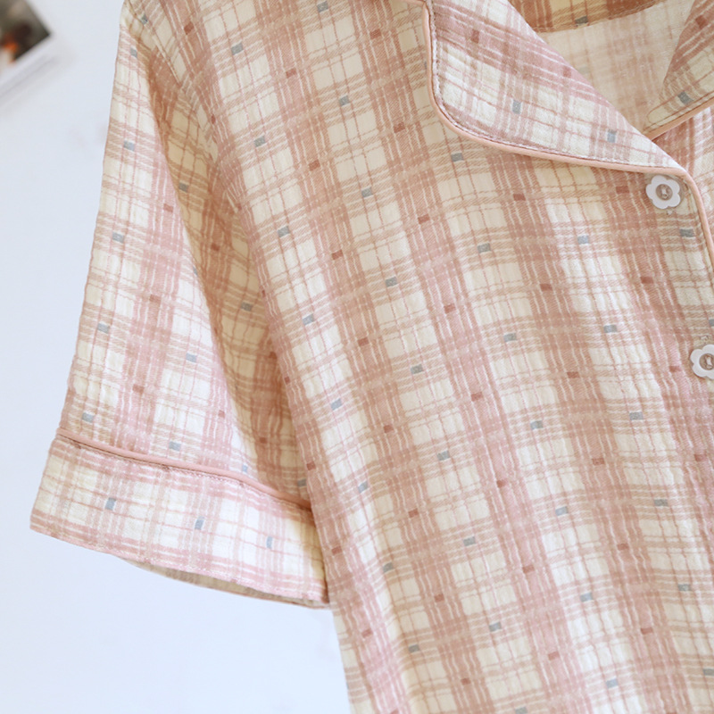커플 잠옷 짧은 소매 바지 플러스 사이즈 간단한 남성과 여성 여름 얇은 코튼 거즈 홈 웨어 소스 공장스토어 가기