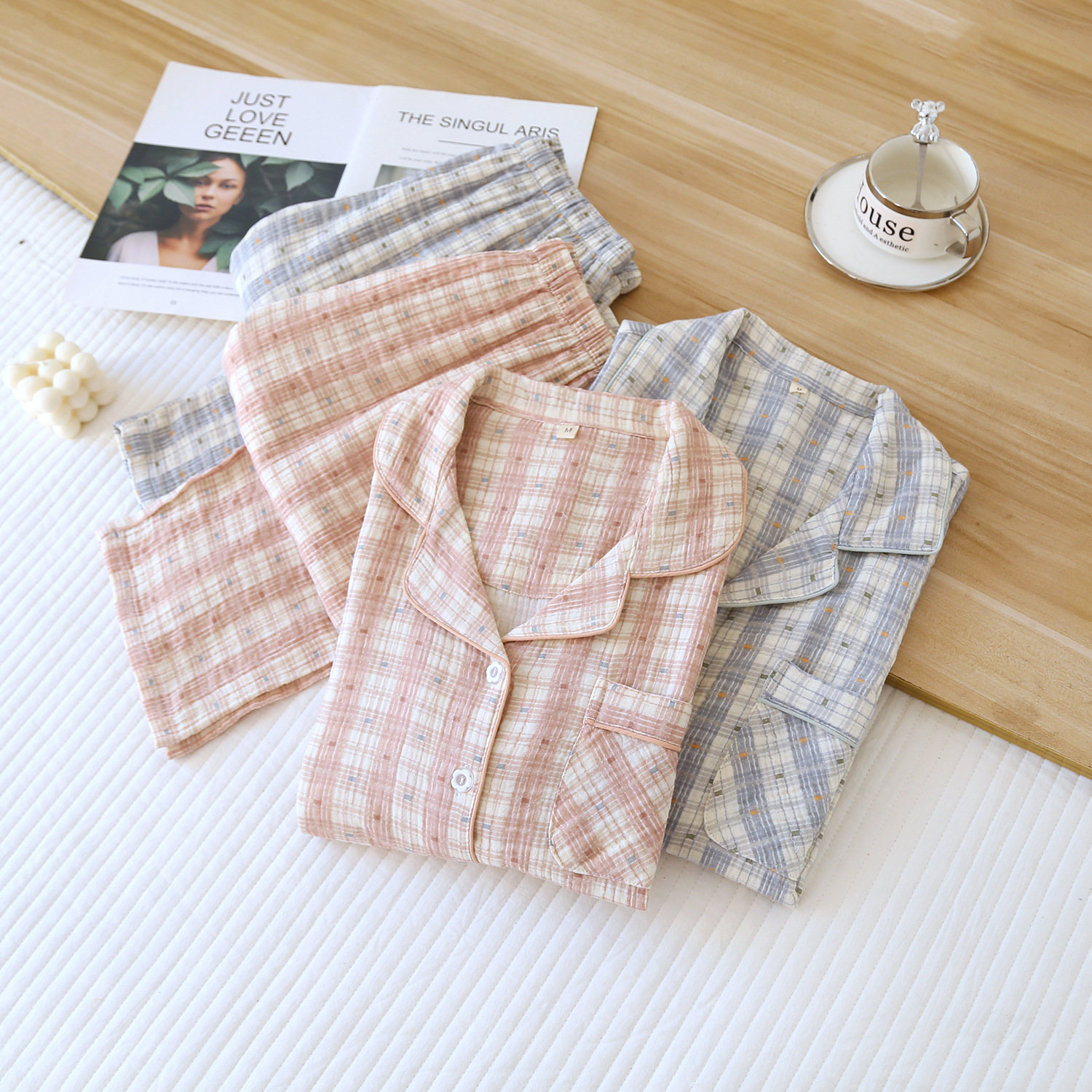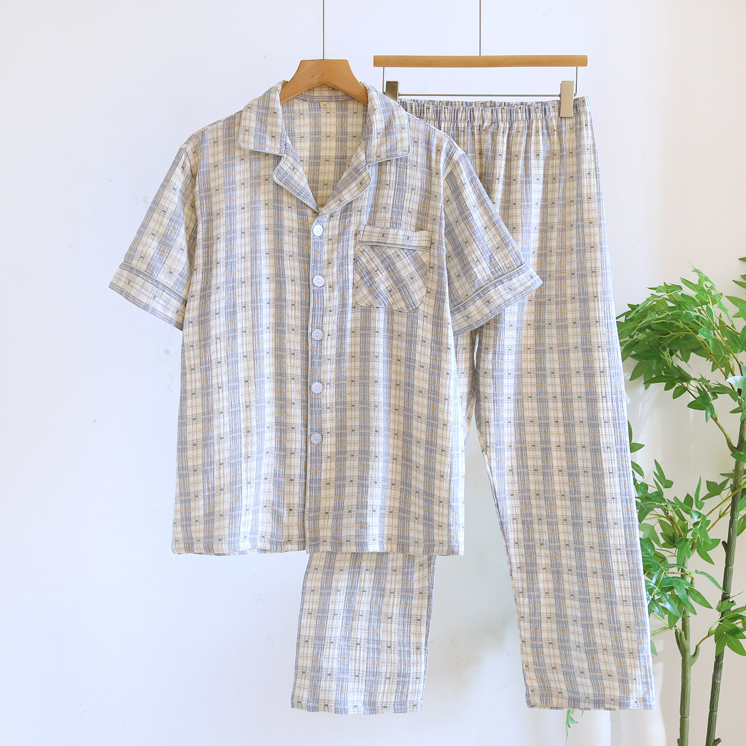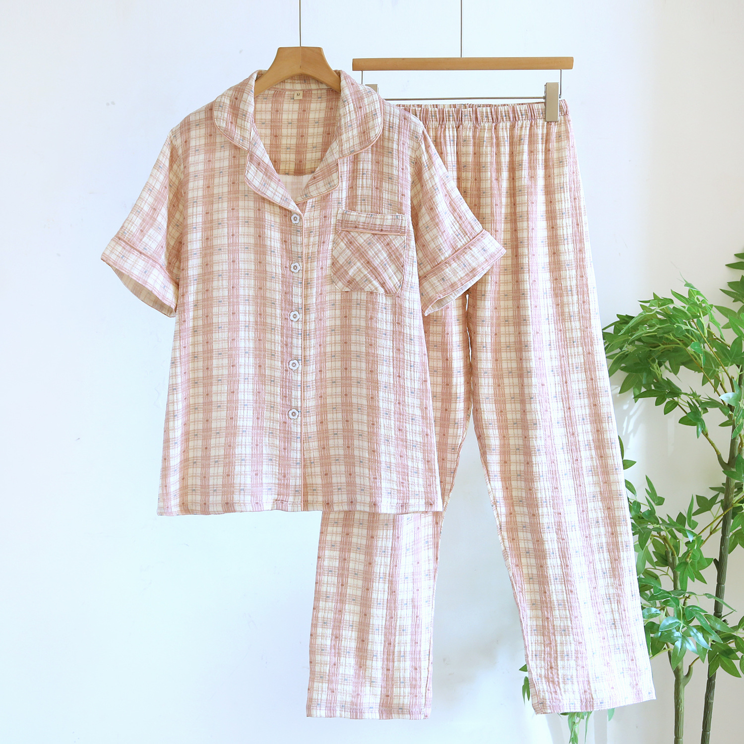 커플 잠옷 짧은 소매 바지 플러스 사이즈 간단한 남성과 여성 여름 얇은 코튼 거즈 홈 웨어 소스 공장스토어 가기