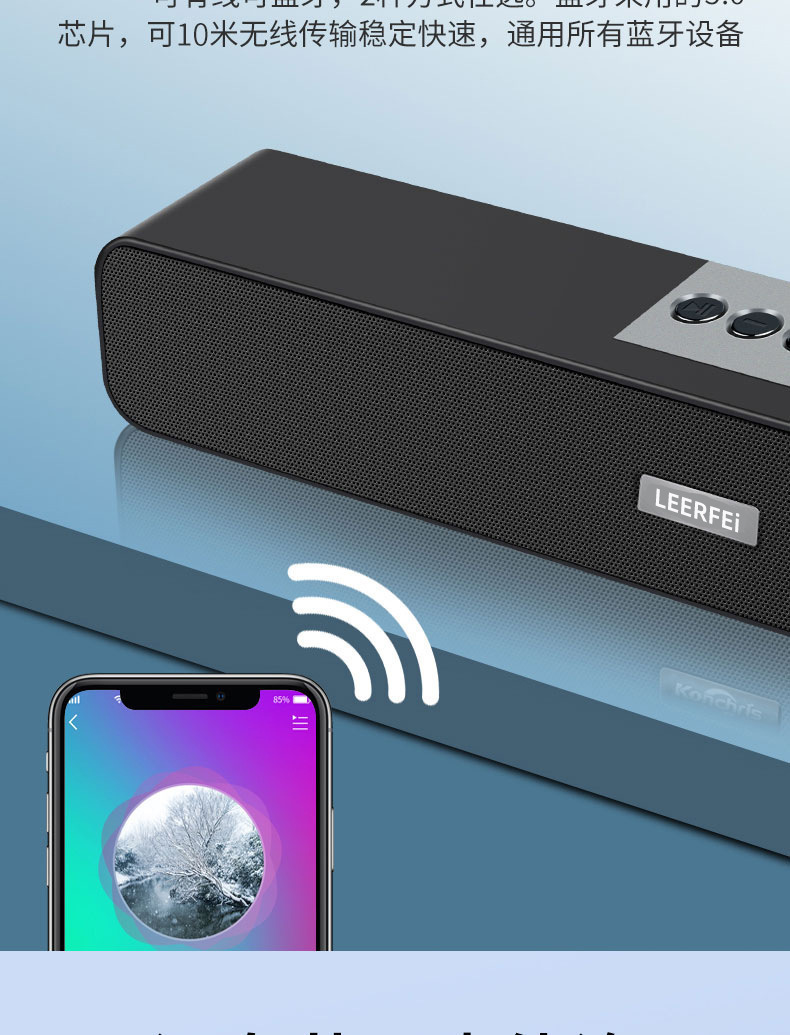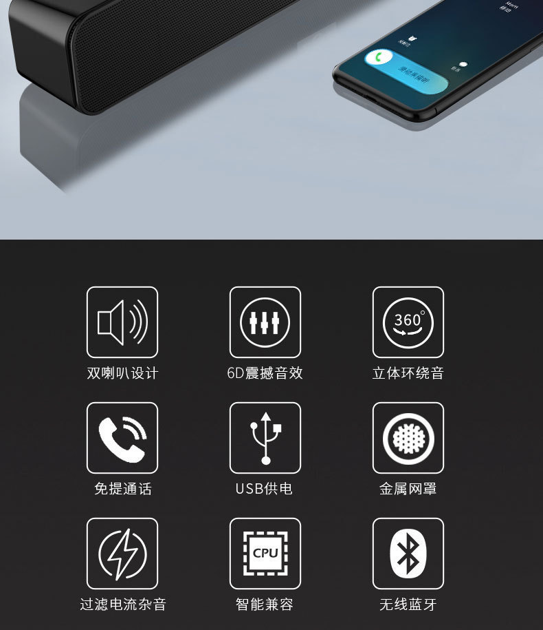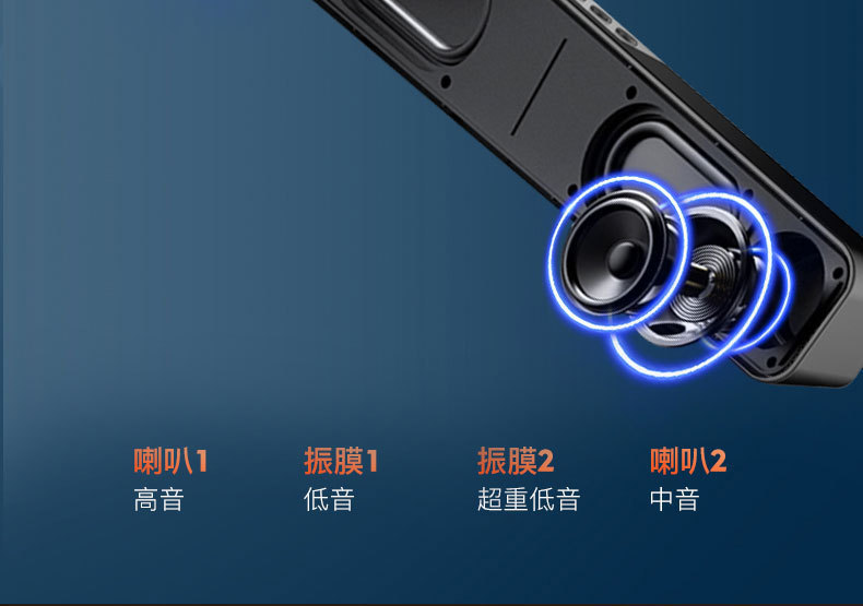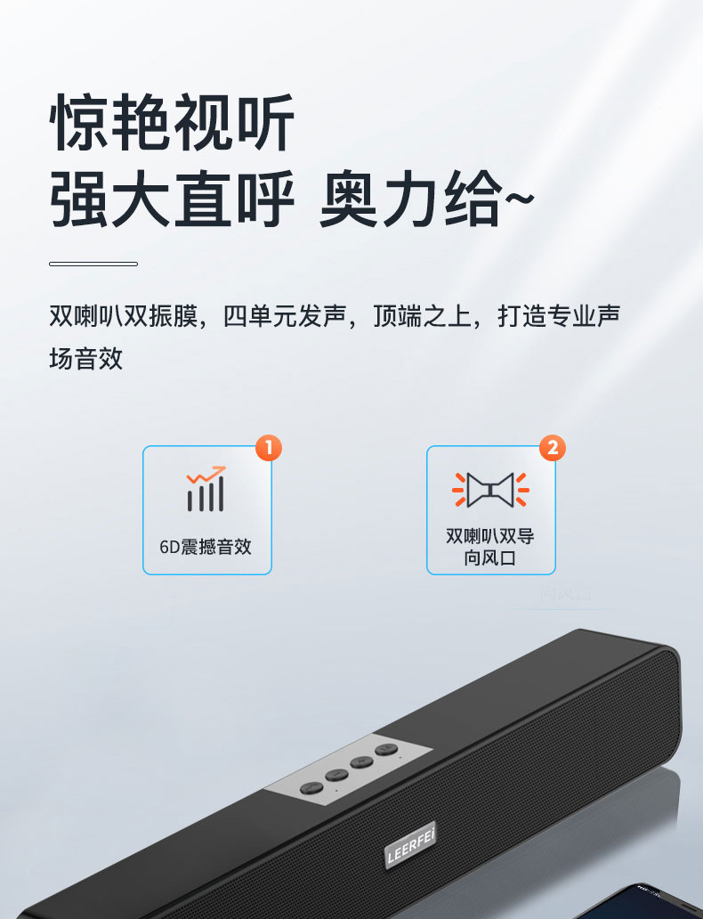 2寸40磁双喇叭双振膜,音质靓丽,U盘、TF卡、AUX、FM