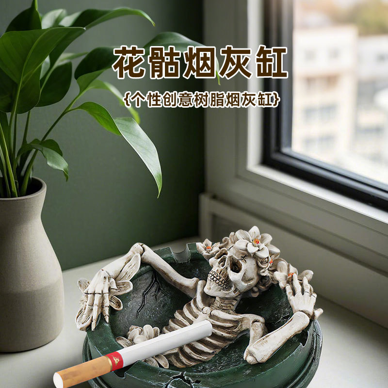 해외 독특한 꽃 장식 해골 수지 재떨이 홈 오피스 데스크탑 장식 분위기 장식품스토어 가기