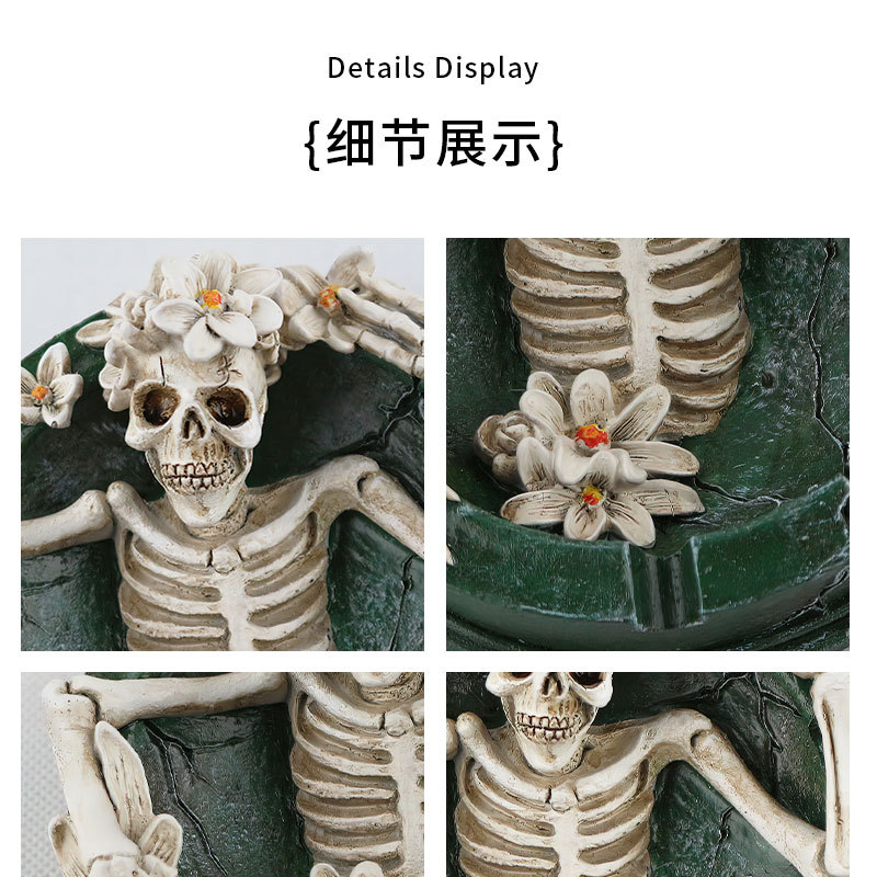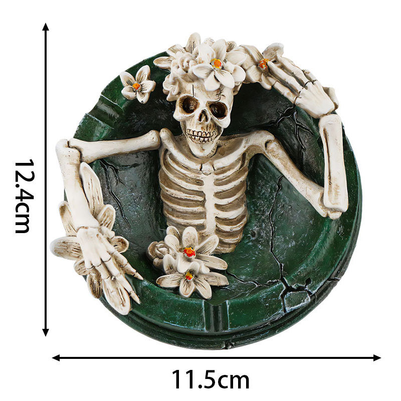 해외 독특한 꽃 장식 해골 수지 재떨이 홈 오피스 데스크탑 장식 분위기 장식품