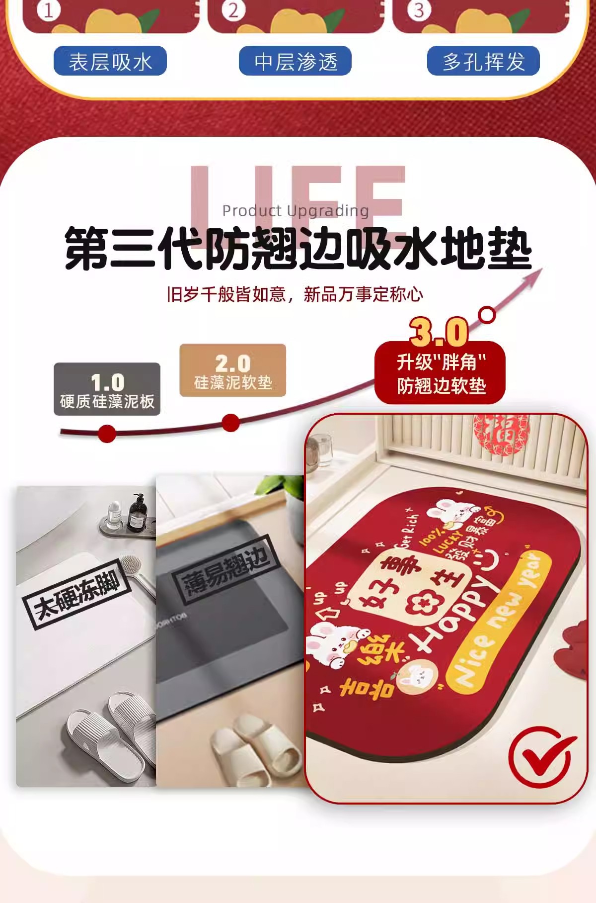 욕실 바닥 매트 화장실 물 흡수성 미끄럼 방지 매트 주방 축제 새해 결혼식 Diatom 진흙 화장실 문 매트