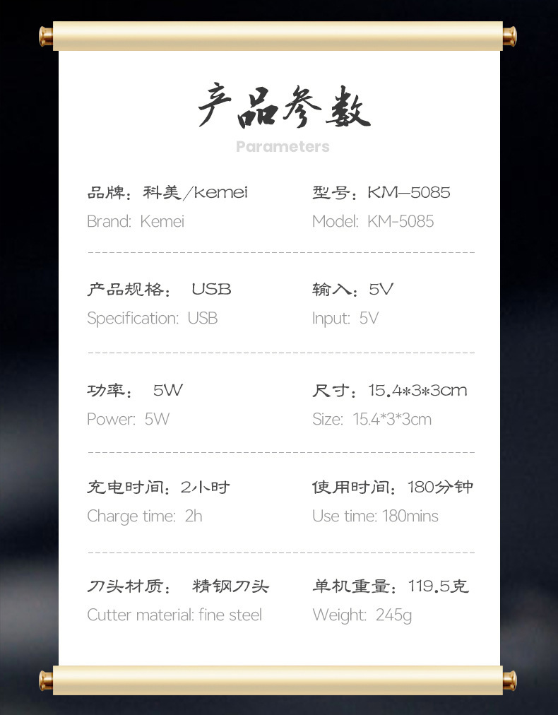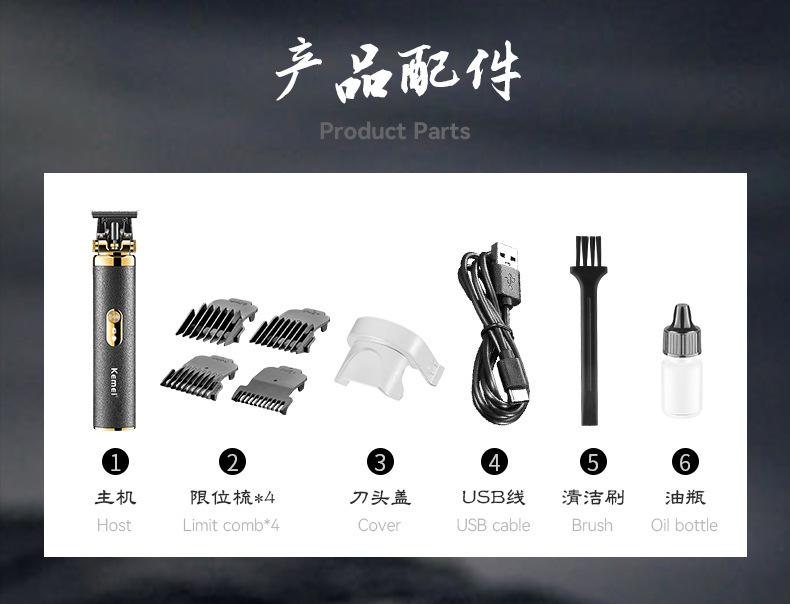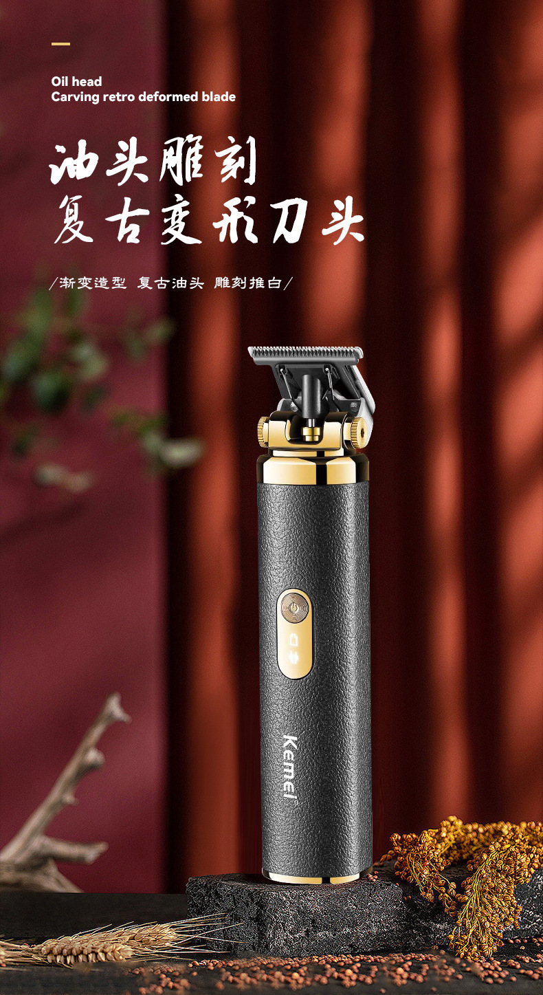 코미 KM-5085 국경 새로운 복고풍 전기 클리퍼 USB 오일 헤드 조각 클리퍼 헤어 클리퍼