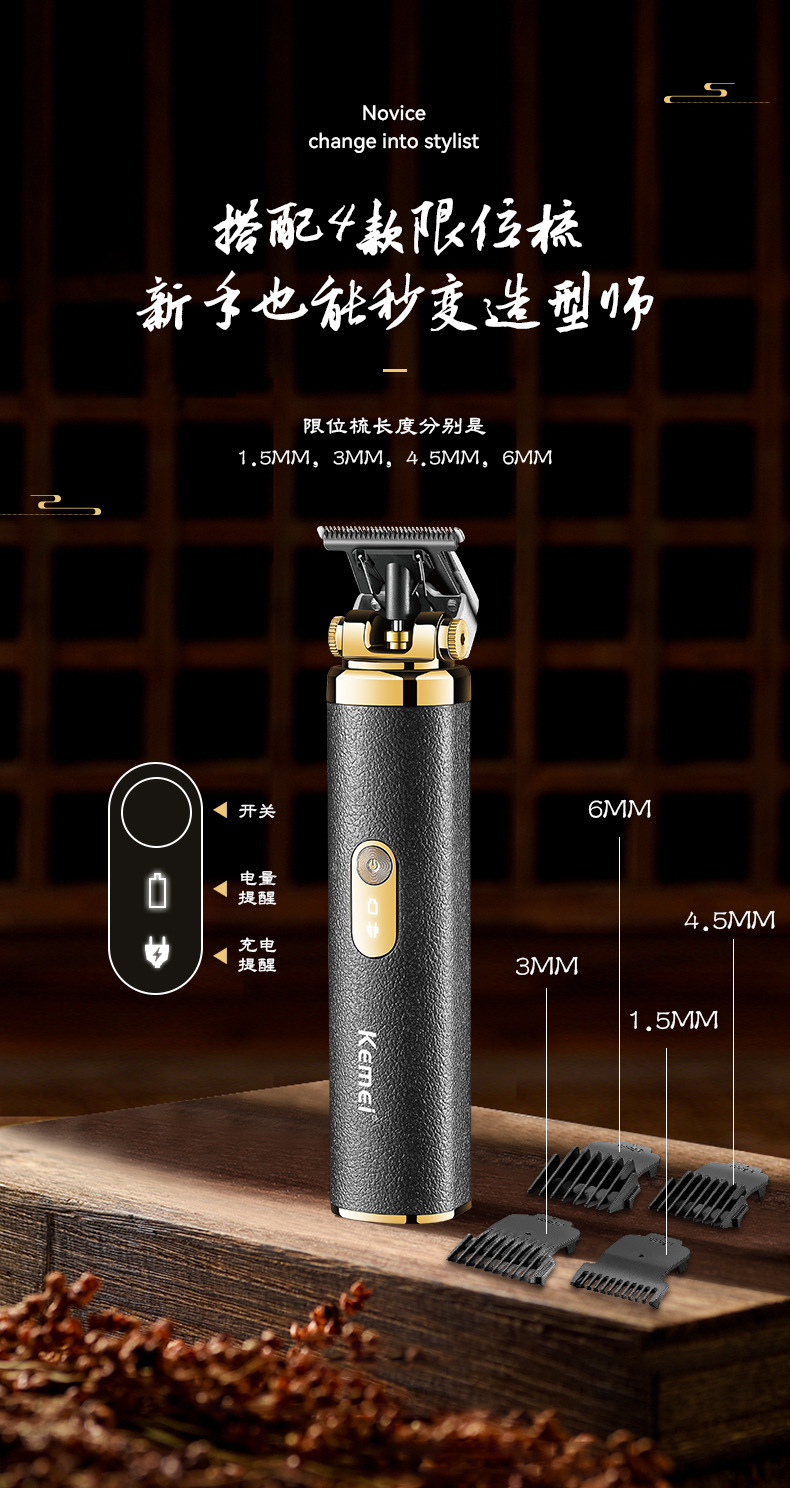 코미 KM-5085 국경 새로운 복고풍 전기 클리퍼 USB 오일 헤드 조각 클리퍼 헤어 클리퍼스토어 가기