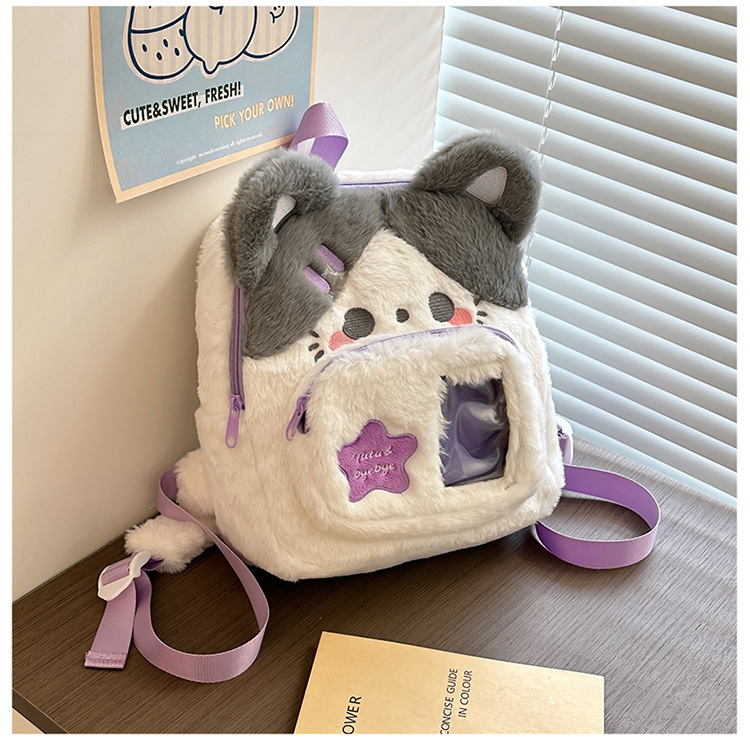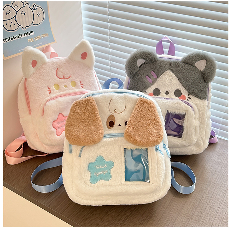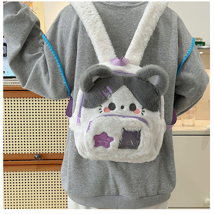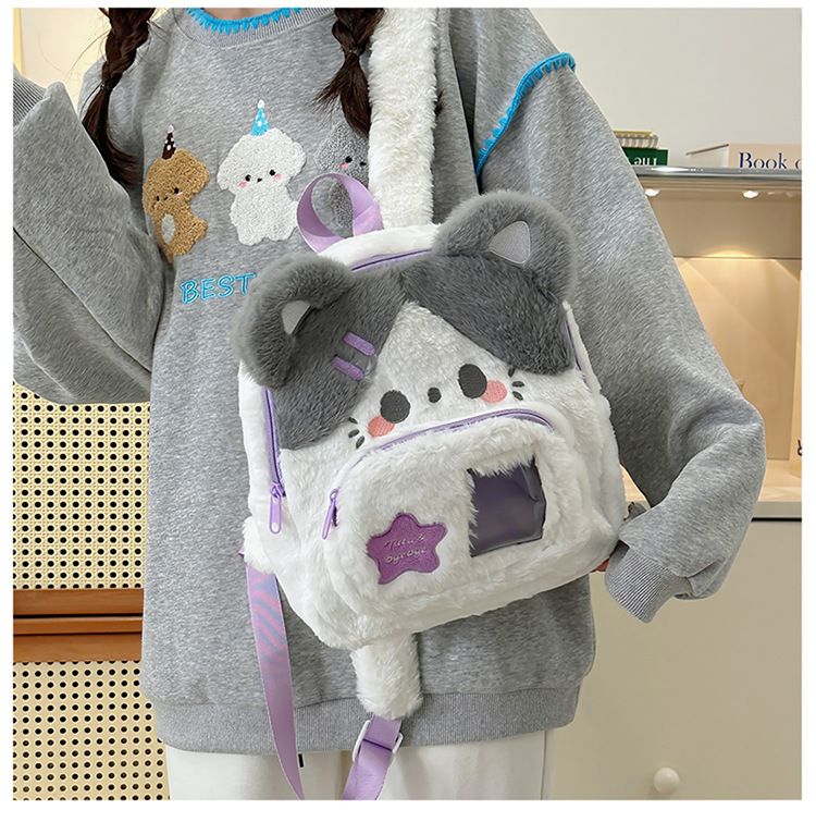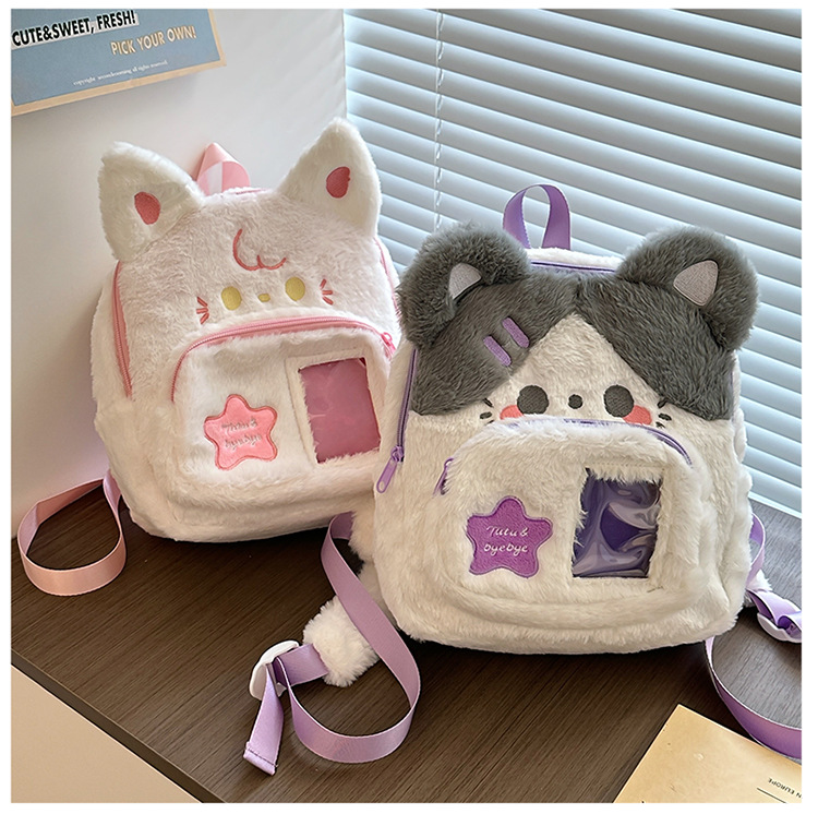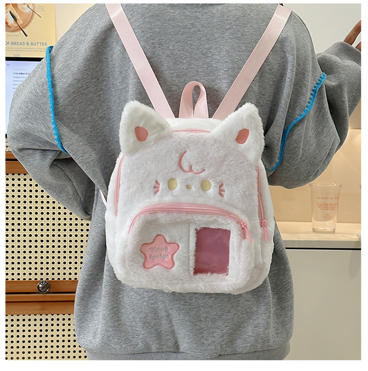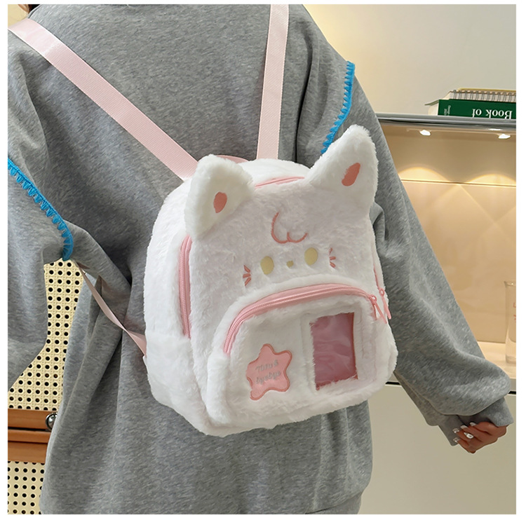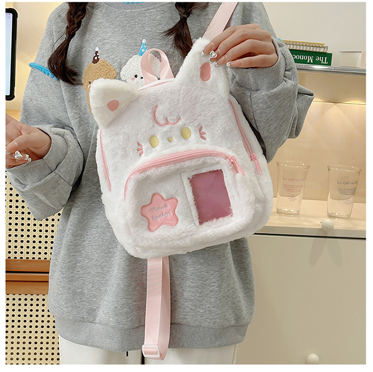 일본 스타일 귀여운 봉제 배낭 2024 새로운 만화 부드러운 귀여운 고양이 학교 가방 부드러운 귀여운 달콤한 소녀 여행 가방스토어 가기