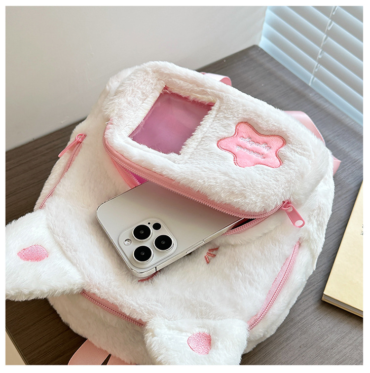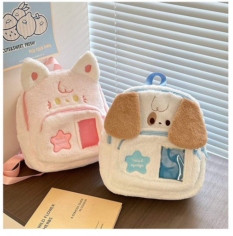 일본 스타일 귀여운 봉제 배낭 2024 새로운 만화 부드러운 귀여운 고양이 학교 가방 부드러운 귀여운 달콤한 소녀 여행 가방