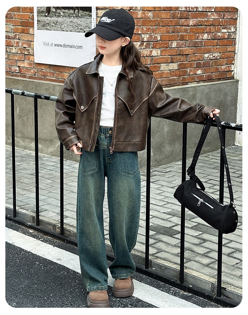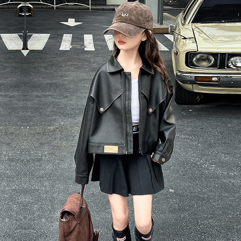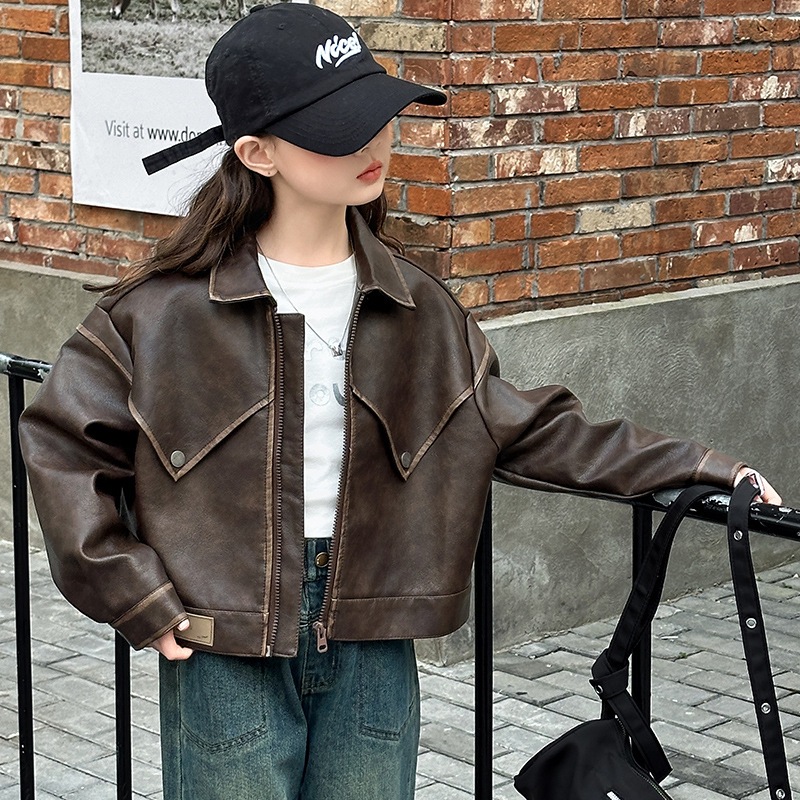 여아 가죽 코트 봄, 가을 코트 2025 여아 가을 코트 중대형 아동 캐주얼 패션 재킷 가죽 코트 유행상의스토어 가기