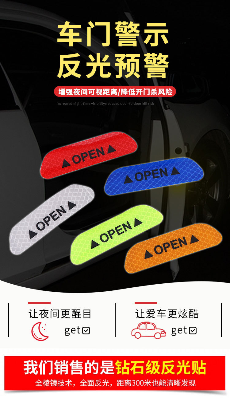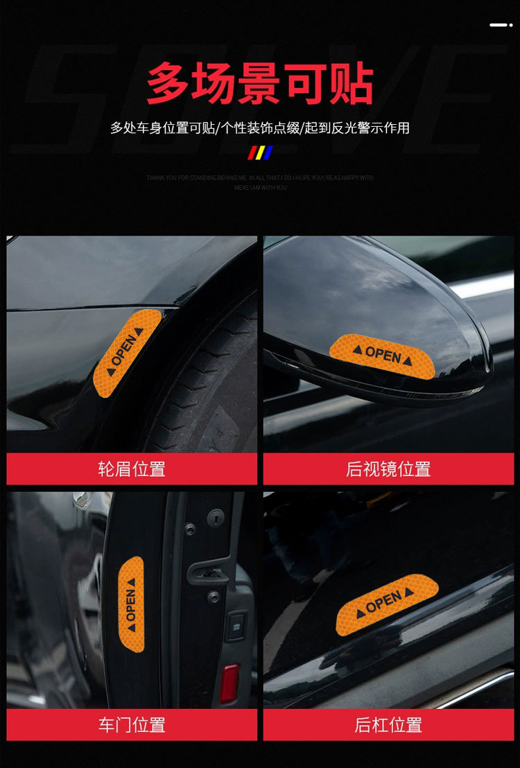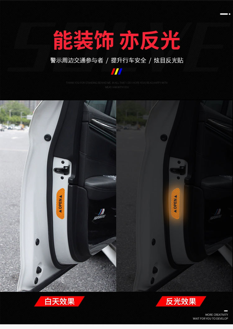 자동차 문 개방 안전 경고 스티커 충돌 방지 스티커 열린 반사 자동차 스티커 창조적 인 밤 몸 반사 스티커