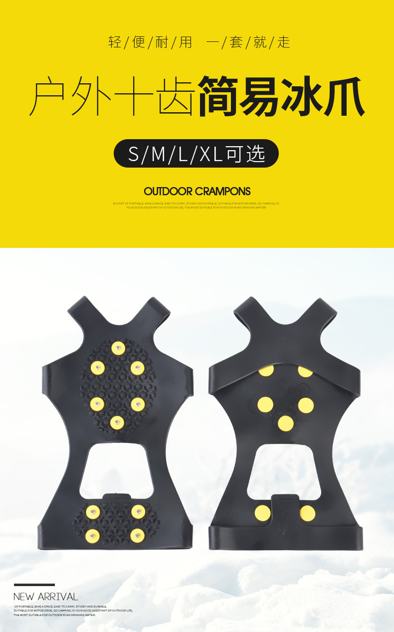 야외 10 치아 간단한 아이스 클로 산 등반 암벽 등반 눈 미끄럼 신발 커버 스키 아이스 및 스노우 로드 내마모성 10 치아 얼음 발톱