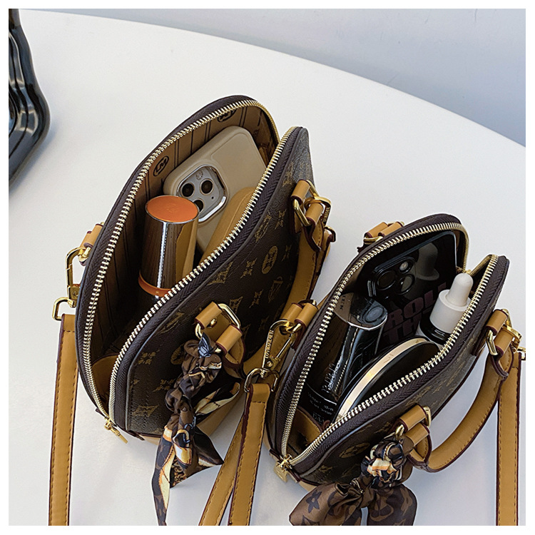 여성을위한 하이 엔드 가방 2025 새로운 유럽과 미국의 복고풍 인쇄 쉘 가방 여성을위한 다목적 클래식 어깨 핸드백
