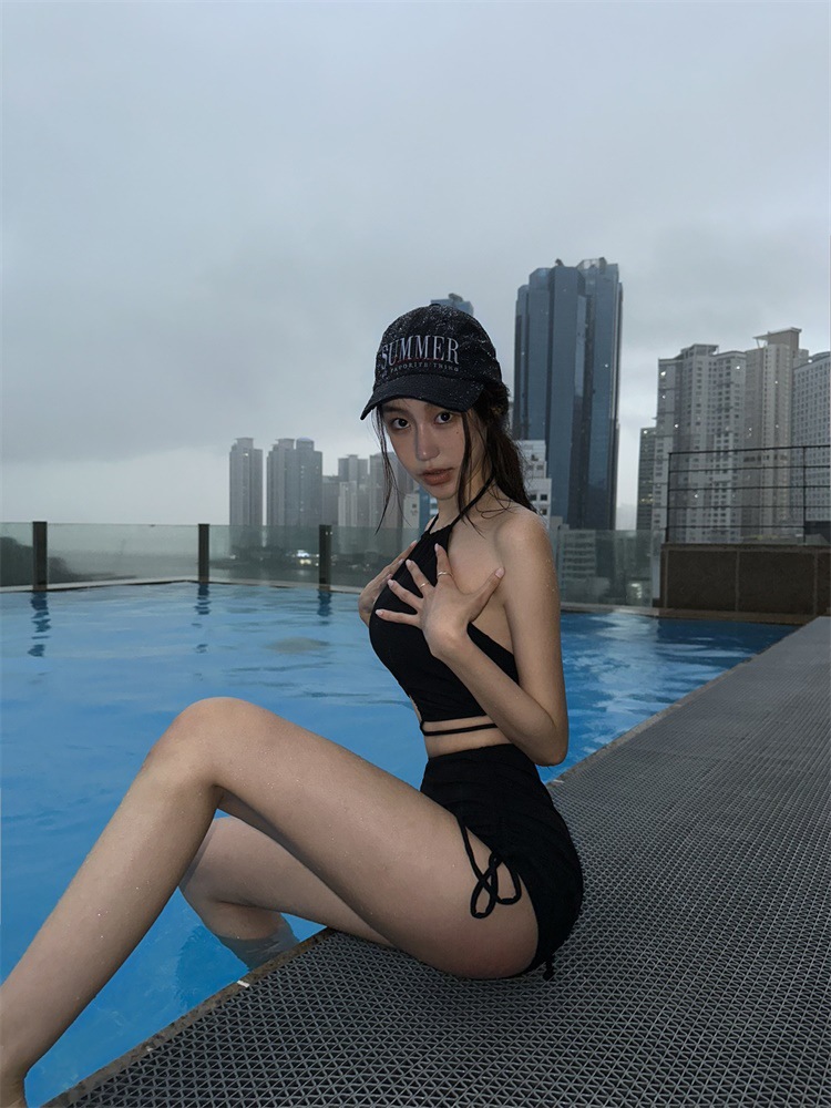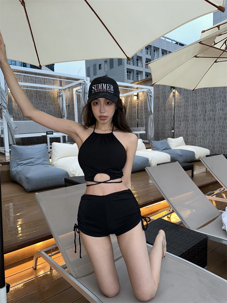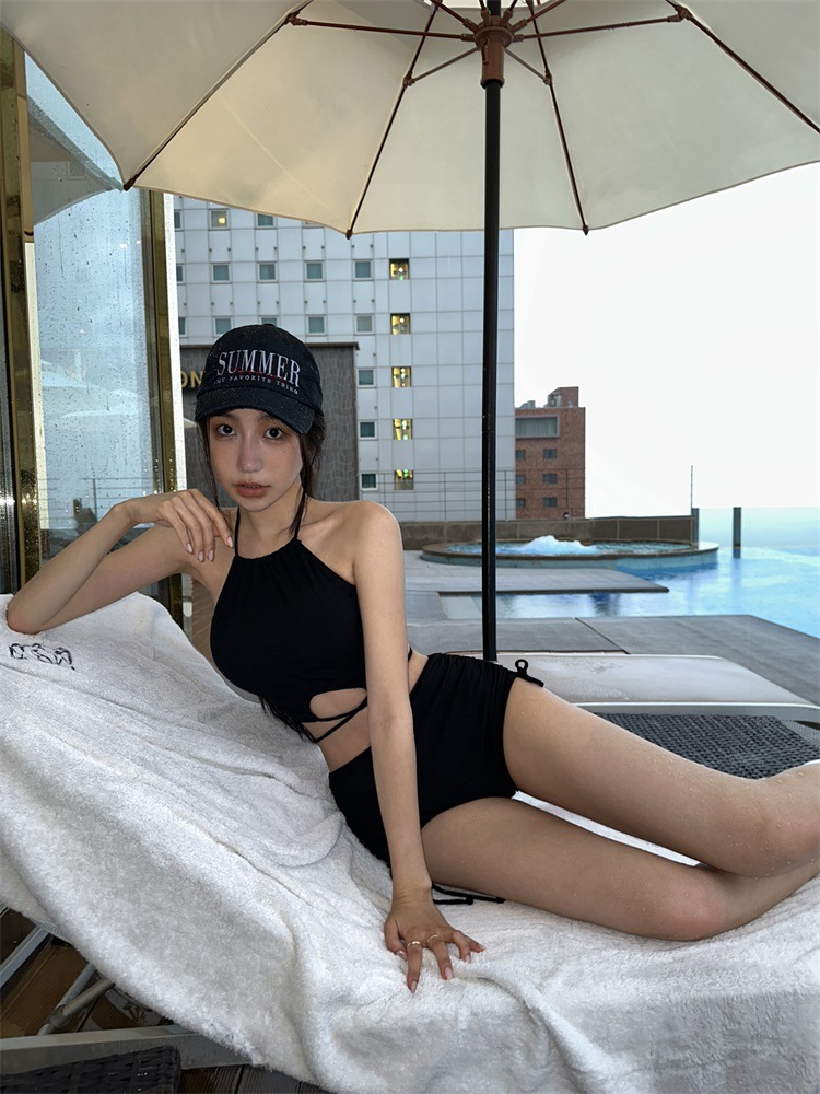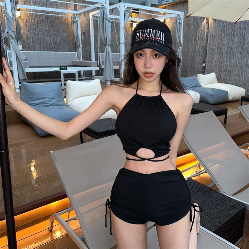 소스 팩토리 패션 뜨거운 소녀 수영복 여성의 2025 새로운 작은 가슴 쪼개지는 섹시한 목을 매달린 하이 엔드 휴가 수영복스토어 가기