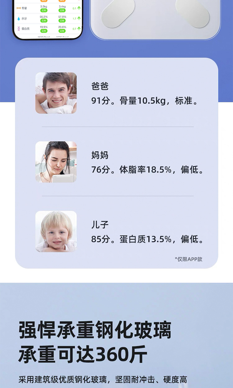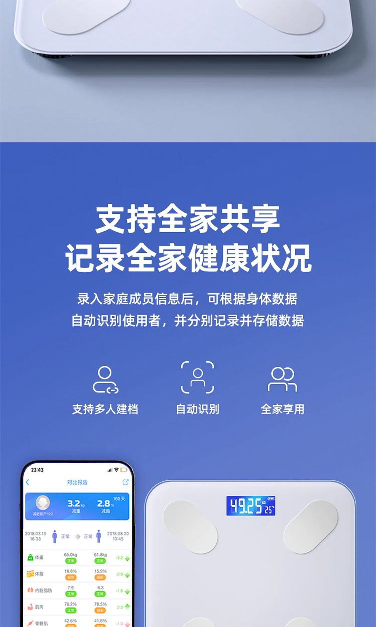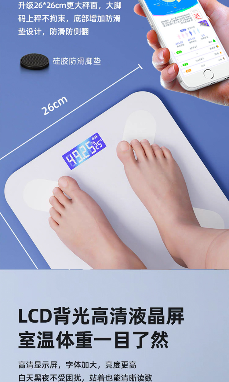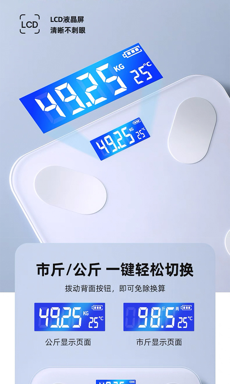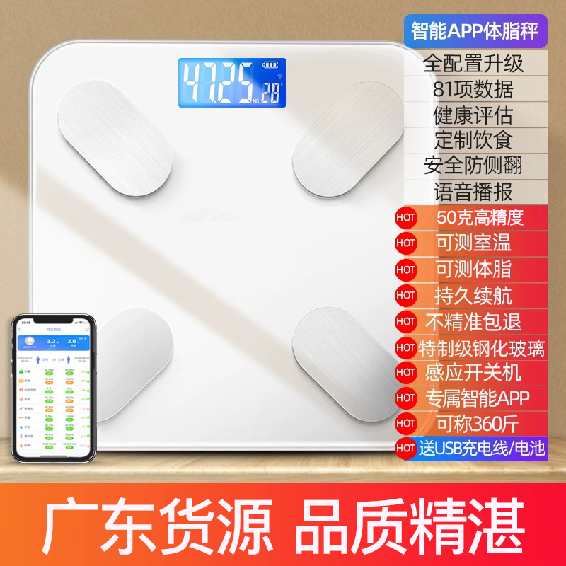 JD.com, Taobao, Pinduoduo에서 제공하는 원피스 배송 체지방 측정기, 가정용 정밀 전자 체중계, 충전식 블루투스 체지방 측정기