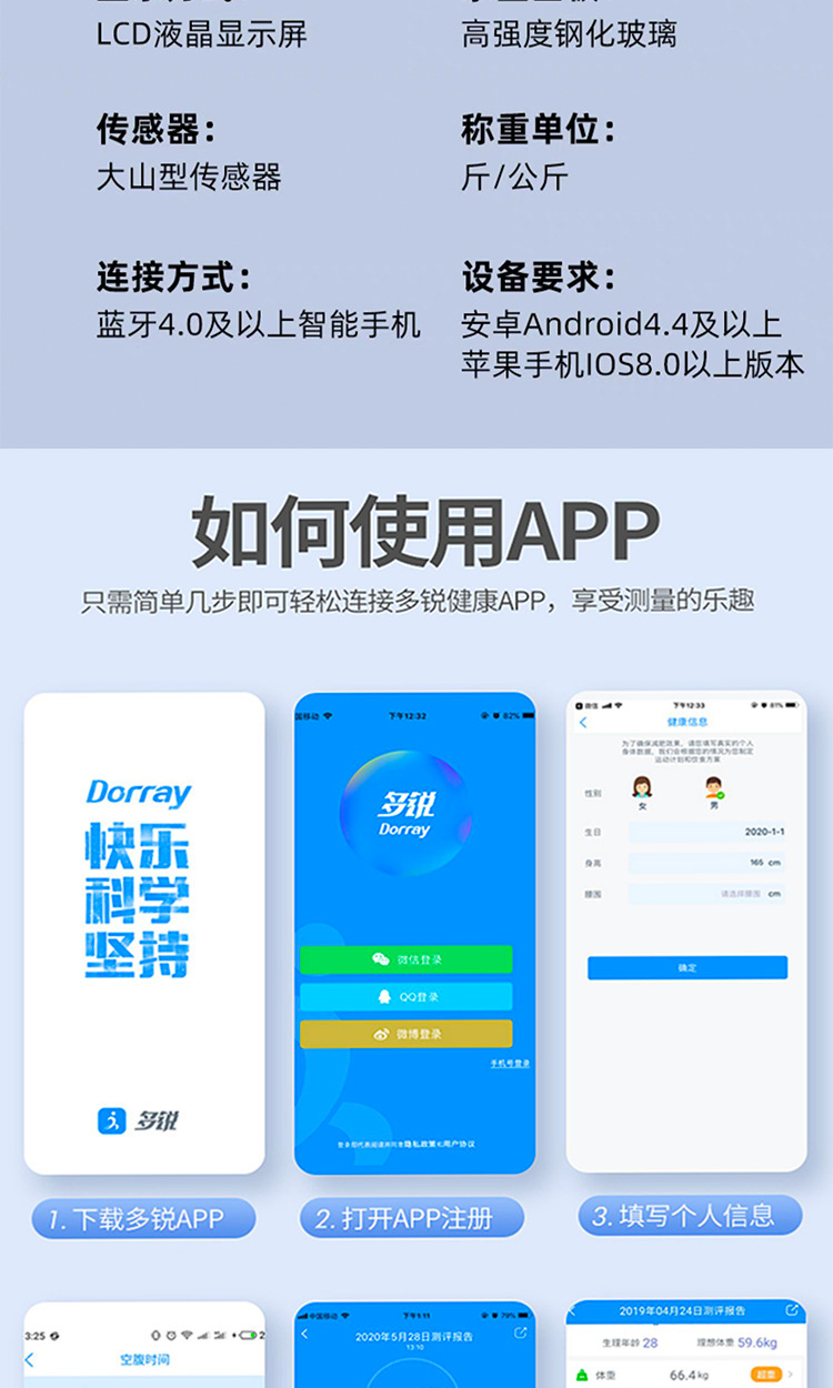 • 스카이블루 [Dorui APP 체지방 측정기] CS952
