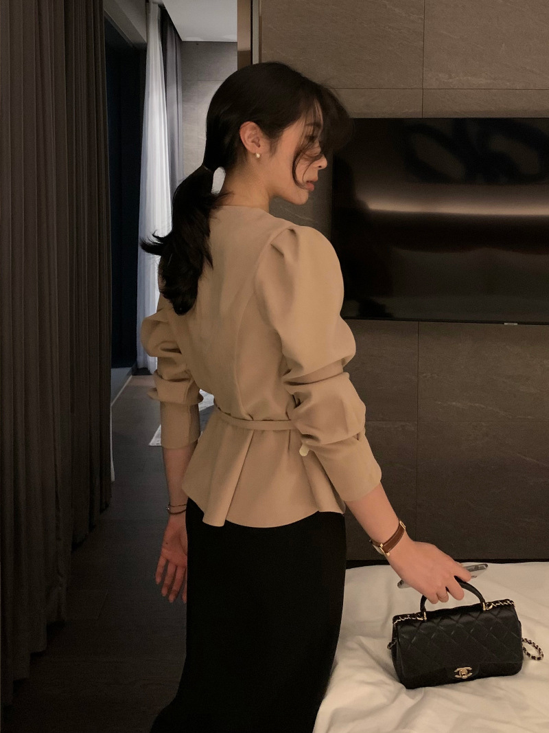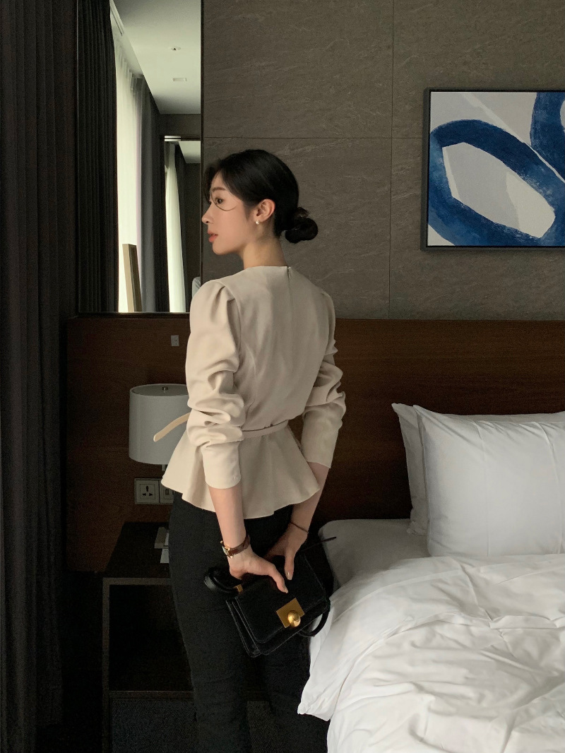 슬림 핏 쉬폰 셔츠 2025 봄 새로운 세련된 복고풍 간단한 올 매치 솔리드 컬러 셔츠 디자인 센스 연예인 우아함스토어 가기