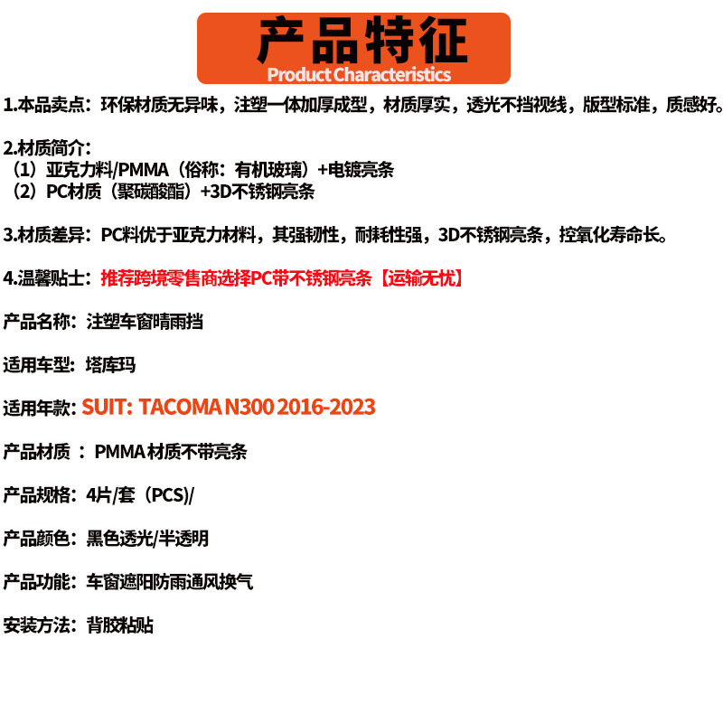 2016-23 타코마 레인 쉴드 타코마 레인 쉴드 타코마 윈도우 레인 쉴드 레인 쉴드