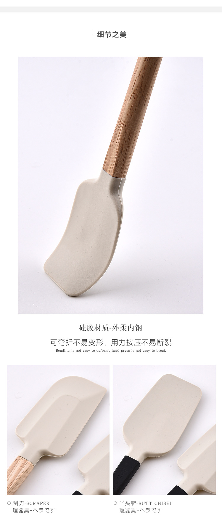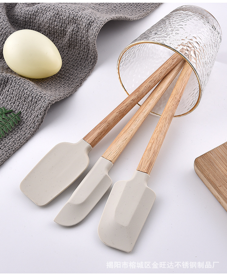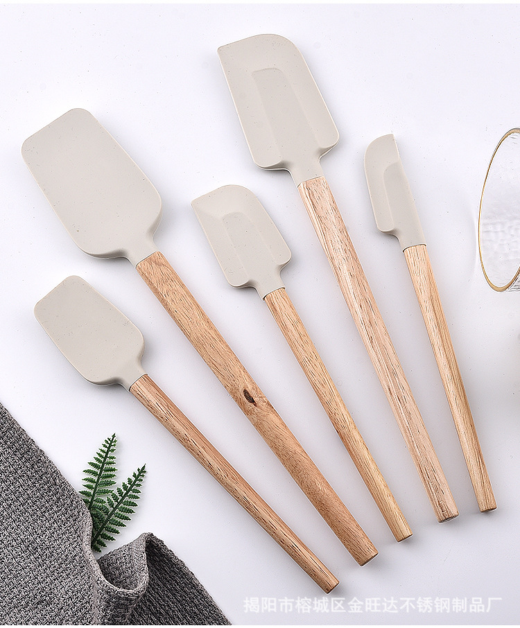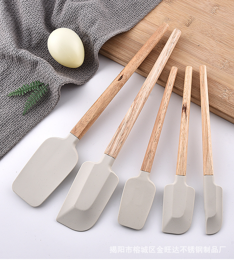 창조적 인 나무 손잡이 실리콘 주걱 버터 케이크 크림 주걱 굽기 도구 주걱 세트