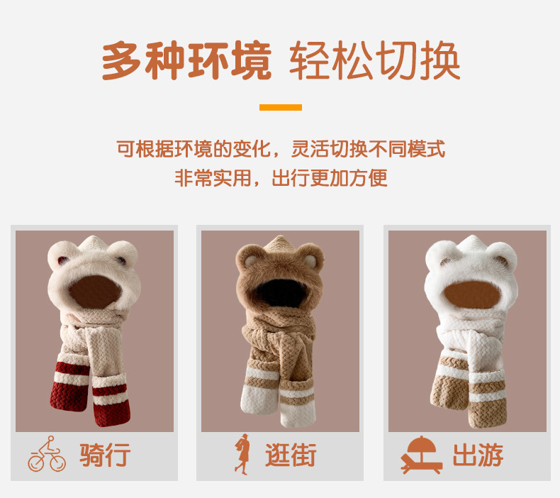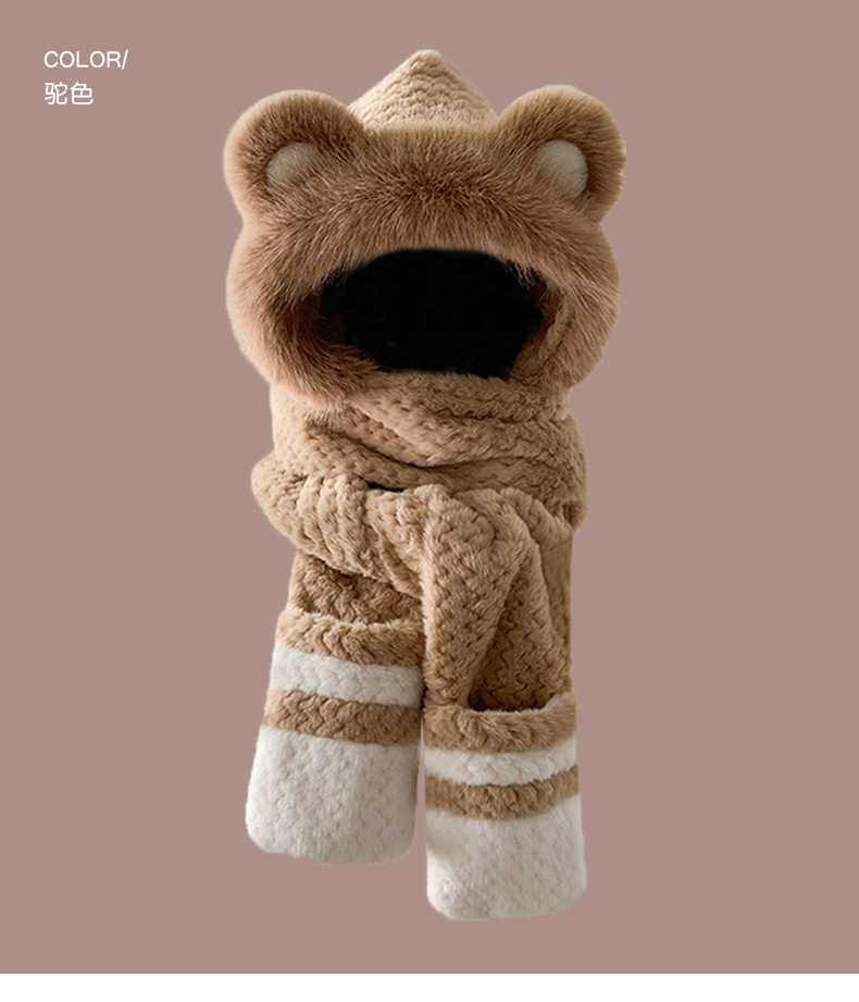2024 새로운 방한 따뜻한 곰 플러시 모자 스카프 장갑 올인원 여성 겨울 두꺼운 귀 보호 사이클링 모자스토어 가기