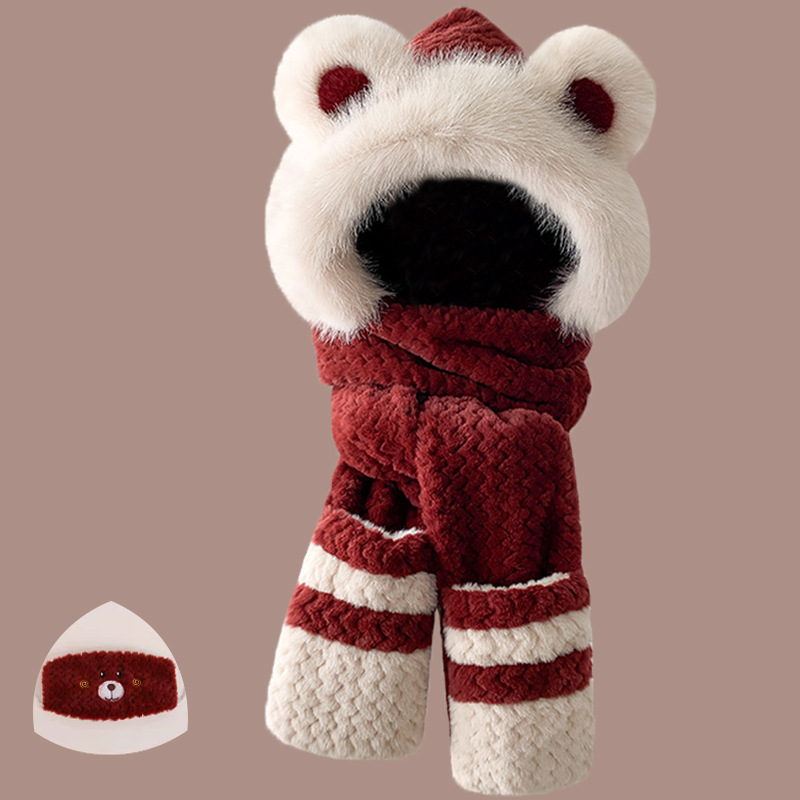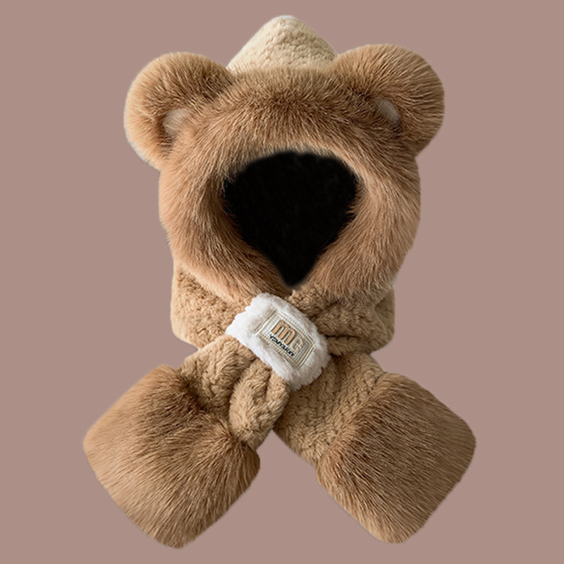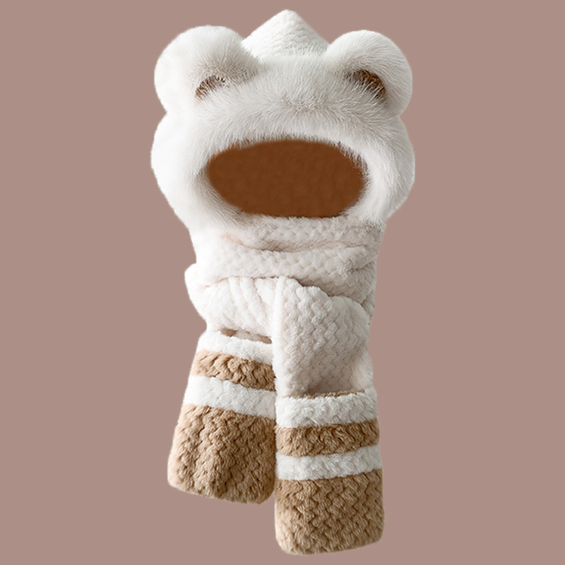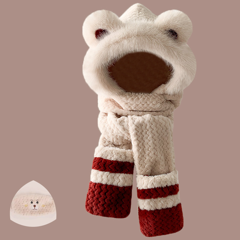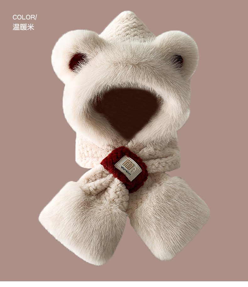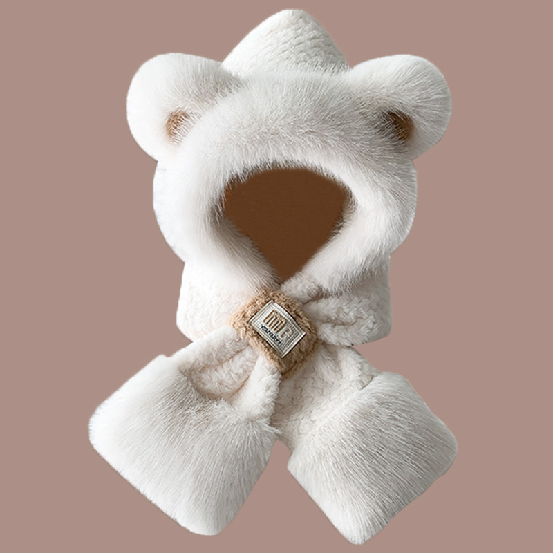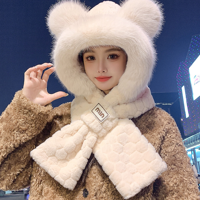 2024 새로운 방한 따뜻한 곰 플러시 모자 스카프 장갑 올인원 여성 겨울 두꺼운 귀 보호 사이클링 모자