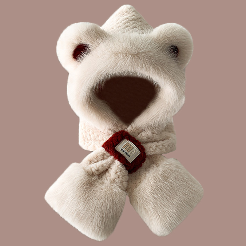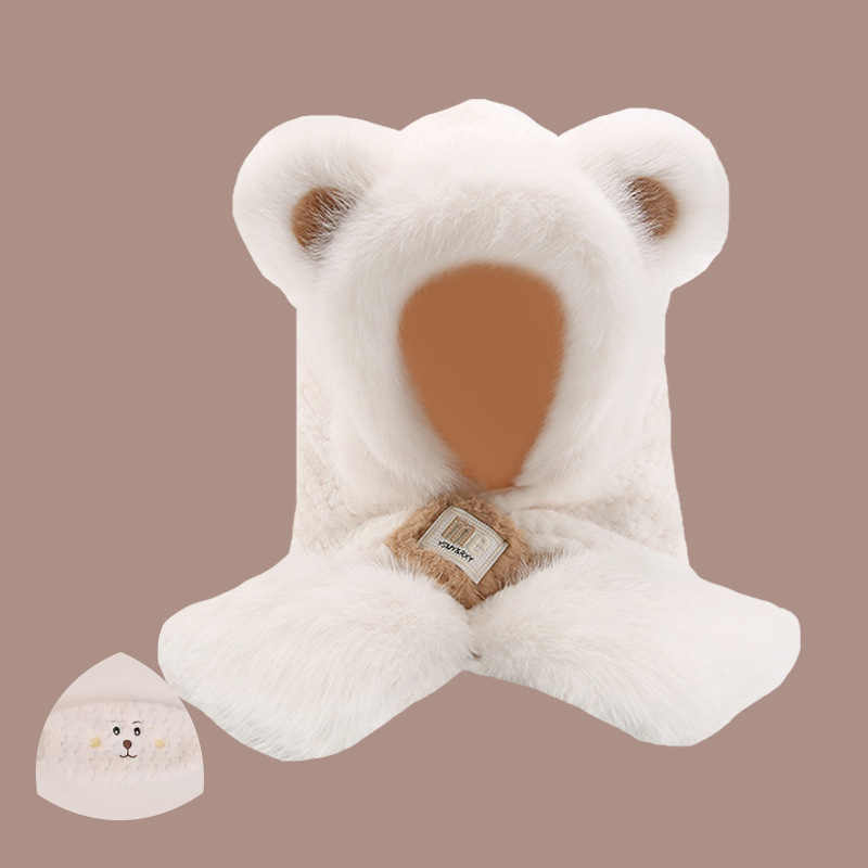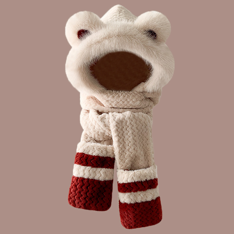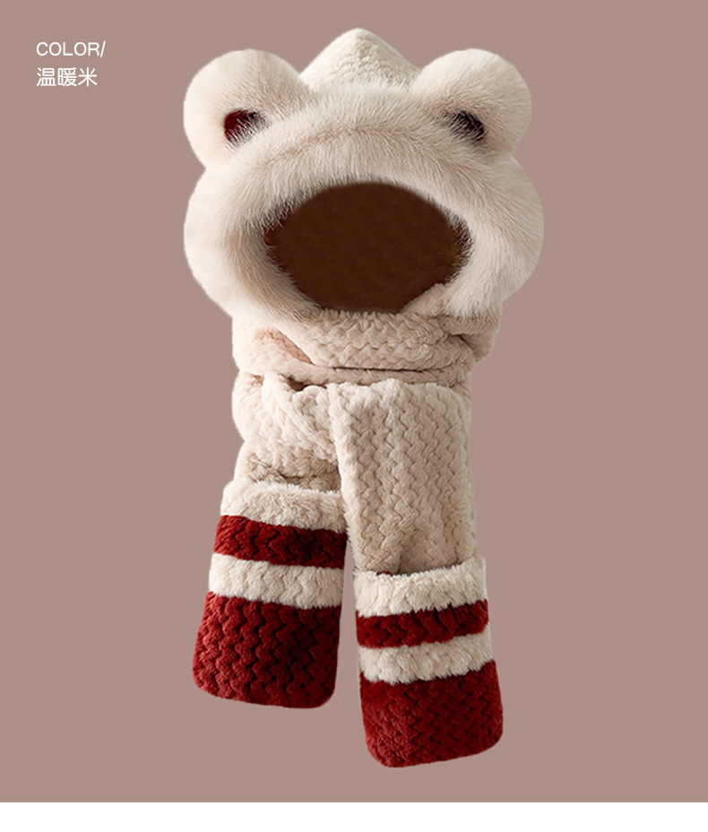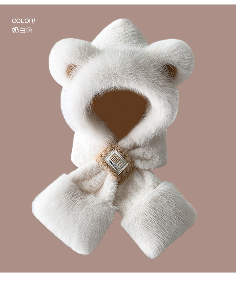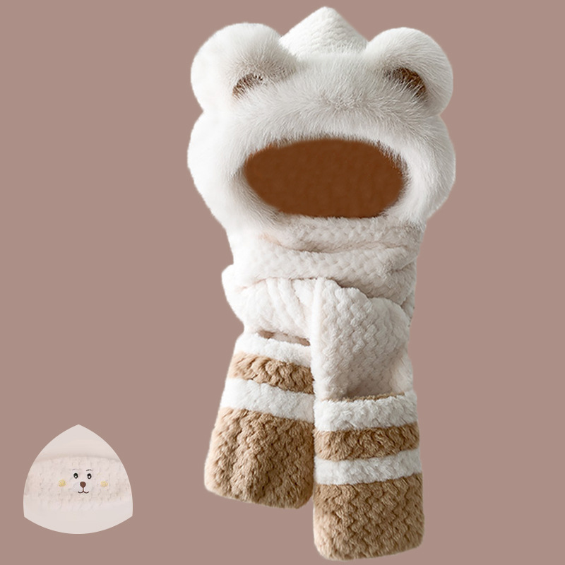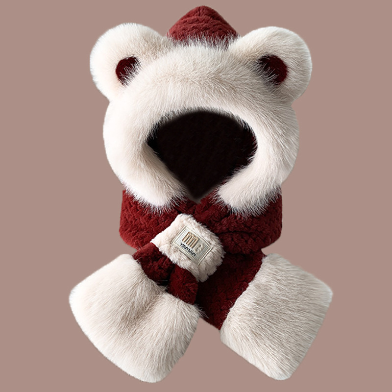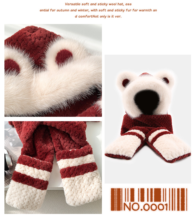 2024 새로운 방한 따뜻한 곰 플러시 모자 스카프 장갑 올인원 여성 겨울 두꺼운 귀 보호 사이클링 모자