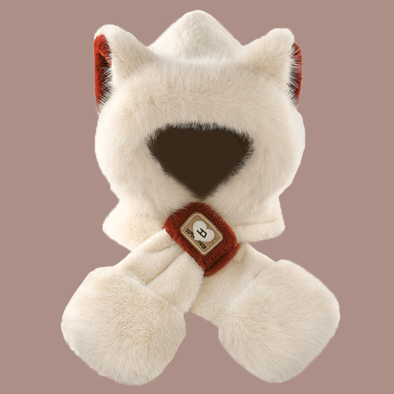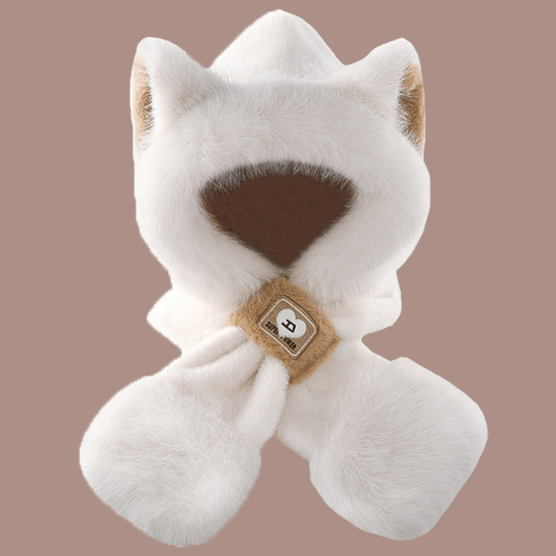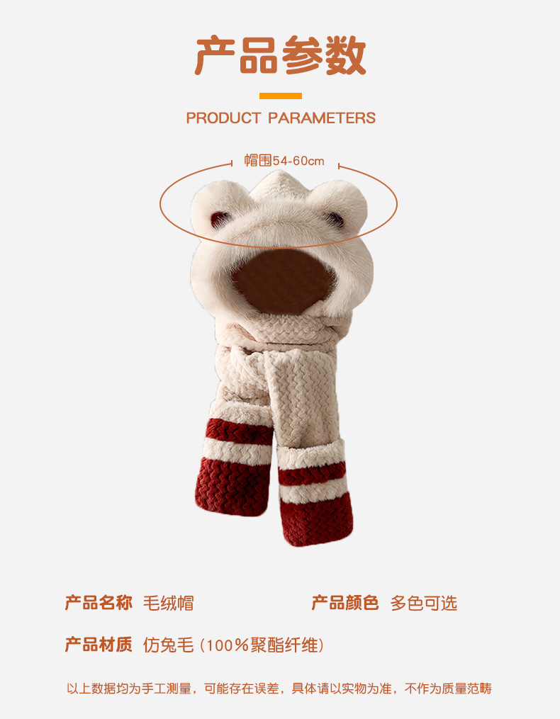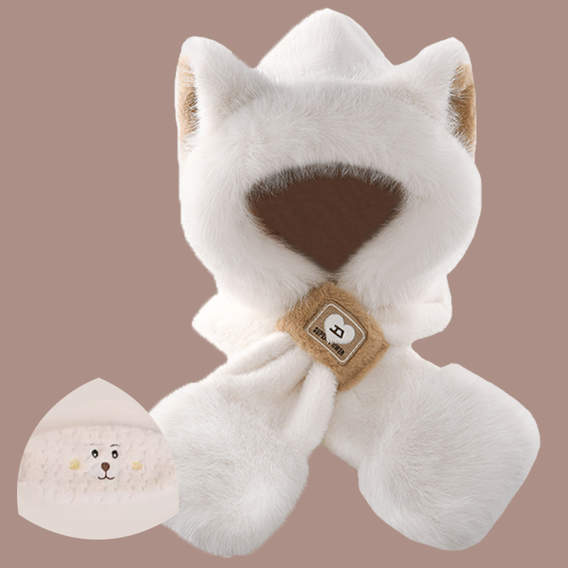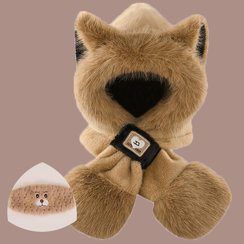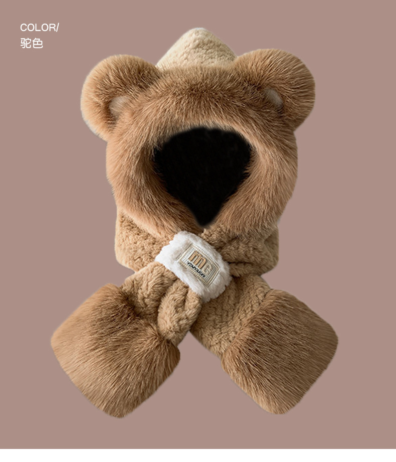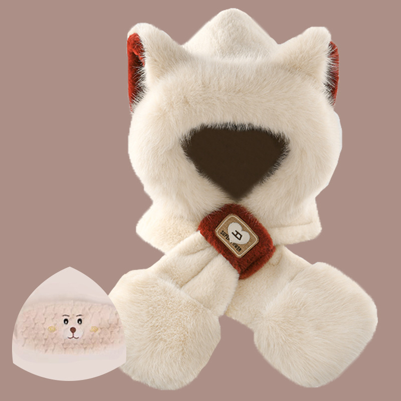 2024 새로운 방한 따뜻한 곰 플러시 모자 스카프 장갑 올인원 여성 겨울 두꺼운 귀 보호 사이클링 모자