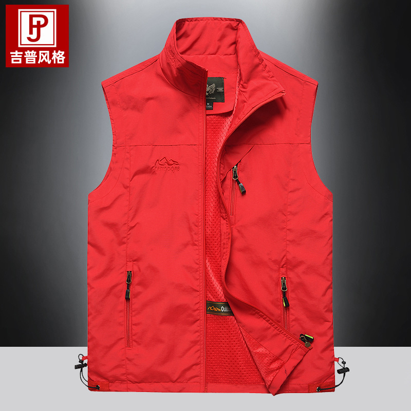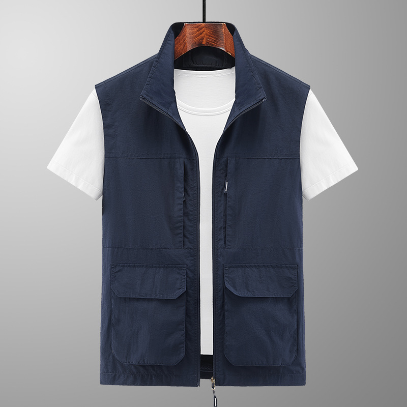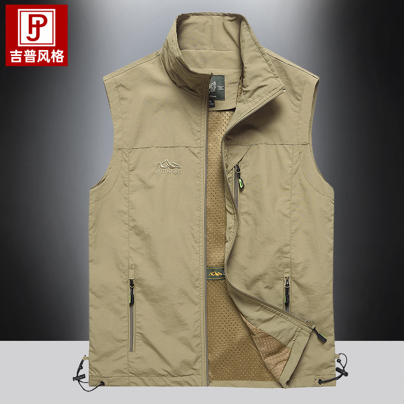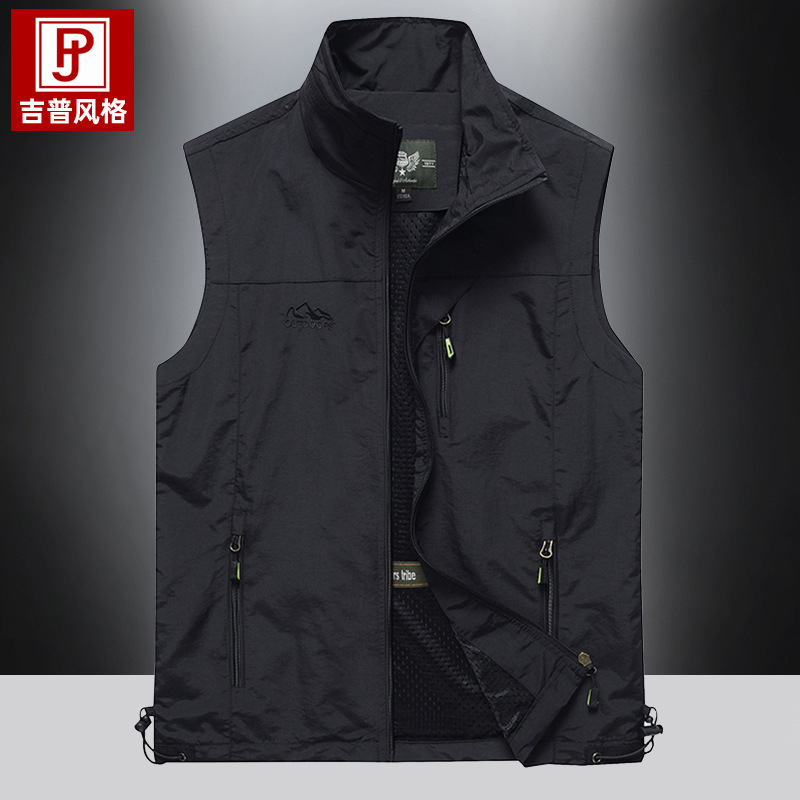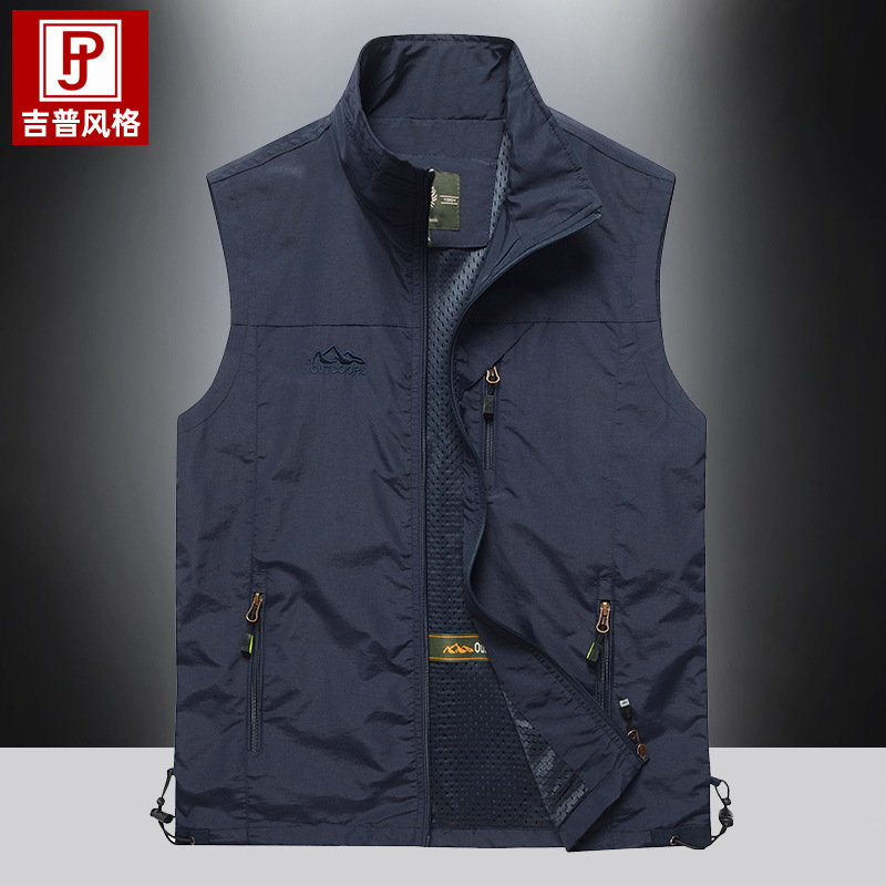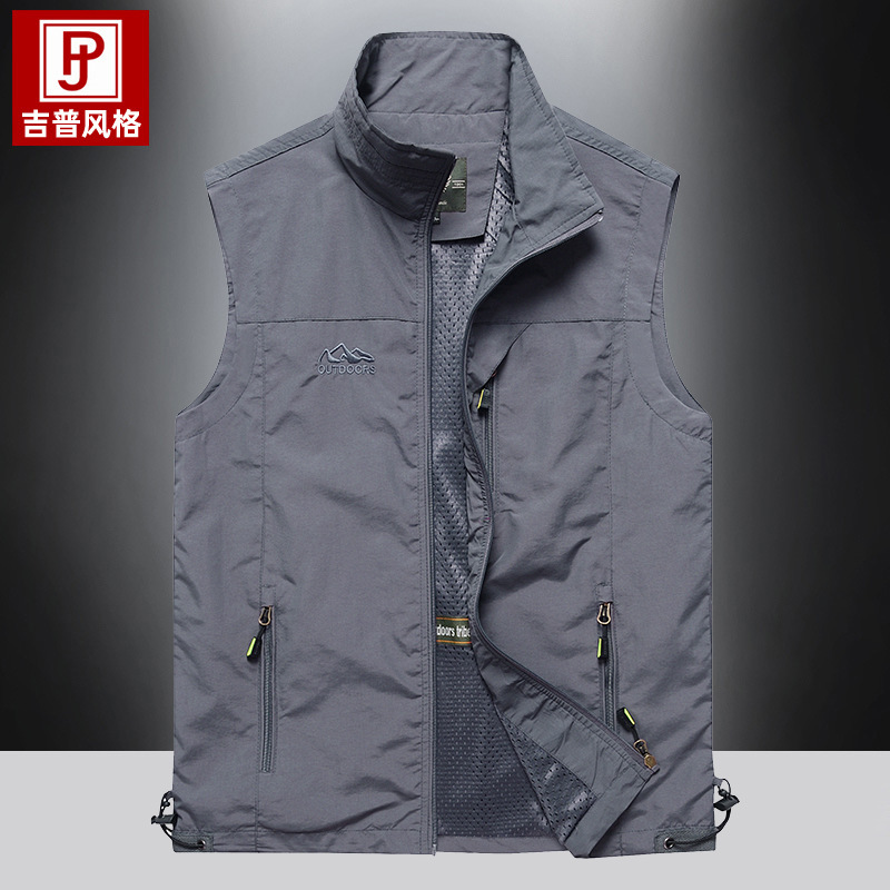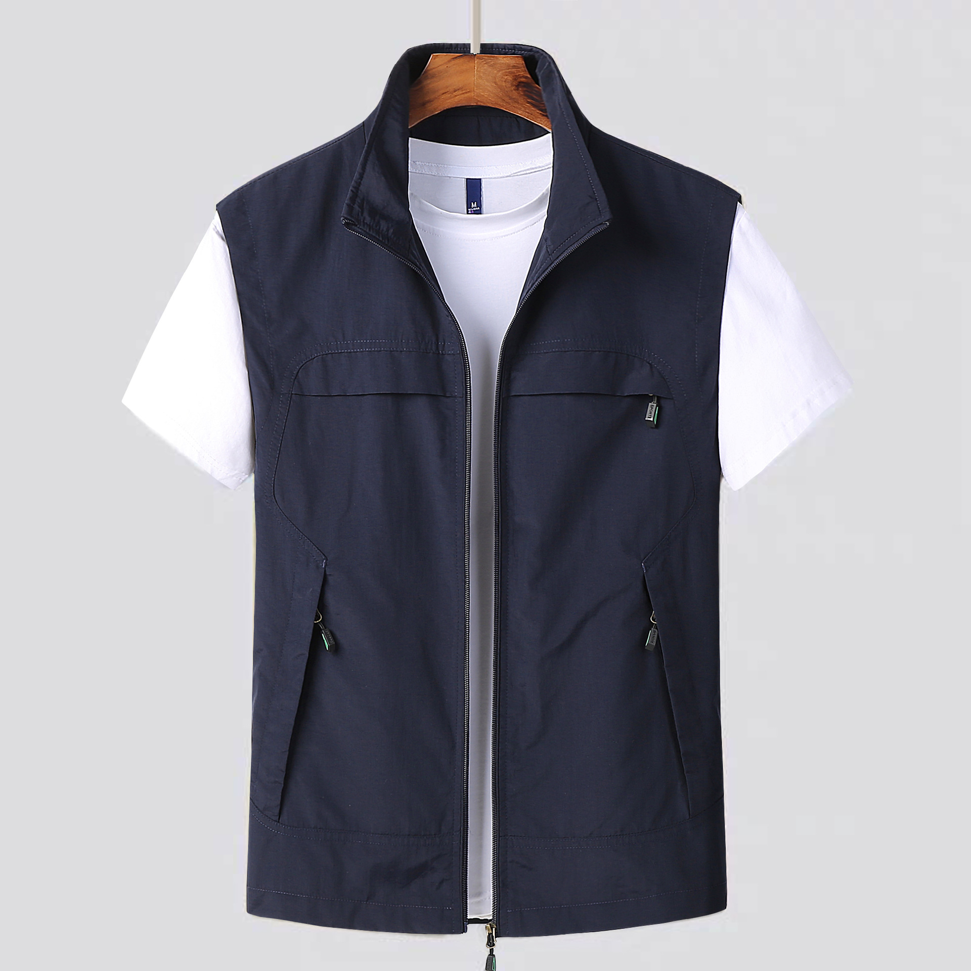 2023 가을 야외용 긁힘 방지 내마모성 스포츠 남성용 카디건 스타일 스탠드 칼라 코튼 조끼
