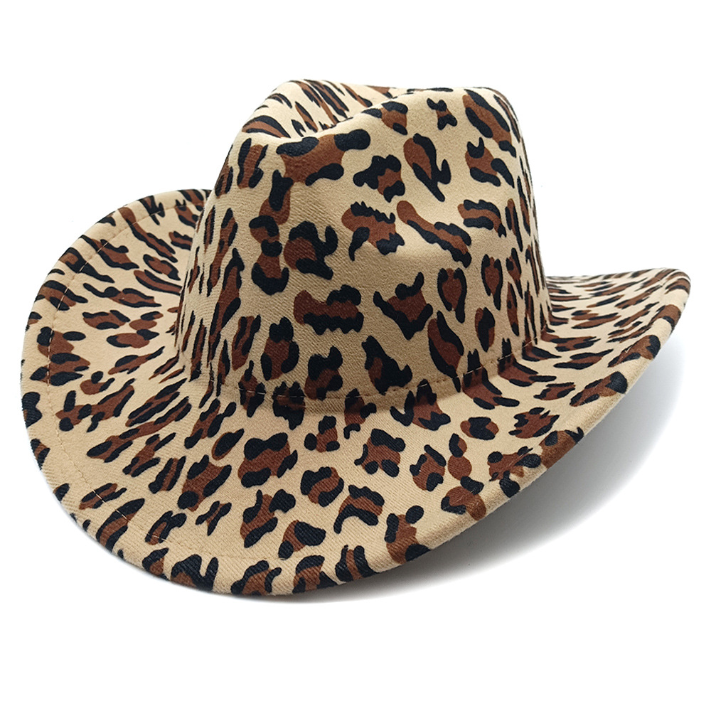 레오파드 무늬 새로운 유럽과 미국 스타일의 서부 카우보이 모자 유제품 소 프린트 선 스크린 차양 모자 빈티지 모자 등산가 모자