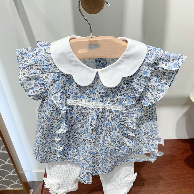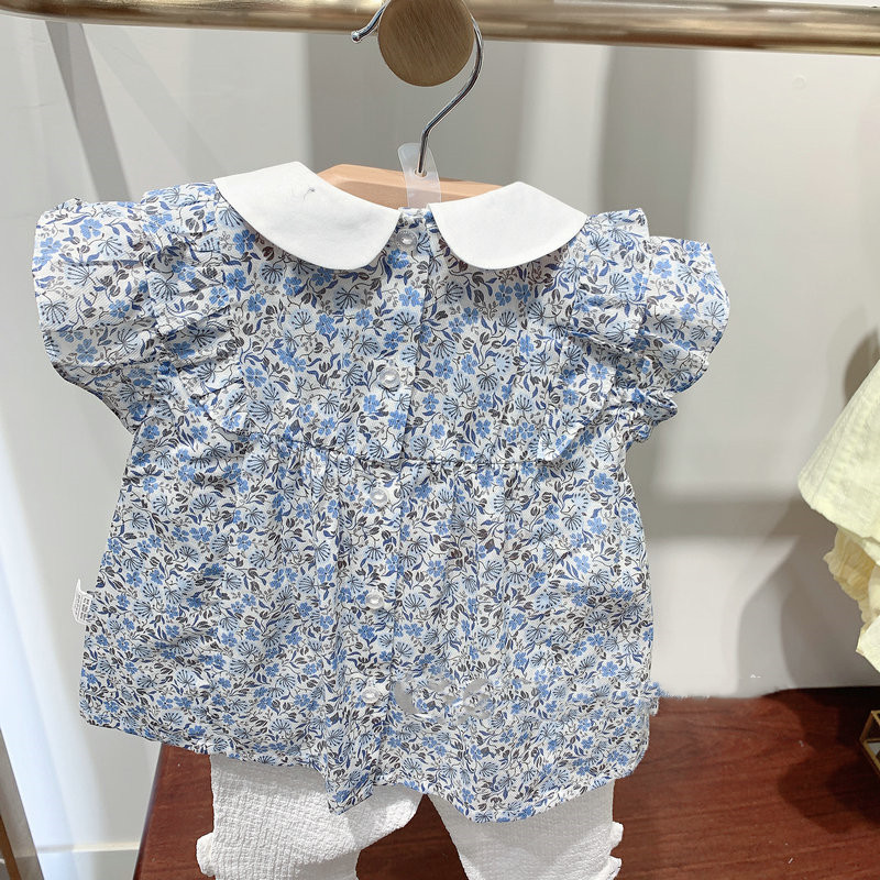 • 스커트 스타일 블루 플로럴 탑(반바지 제외)