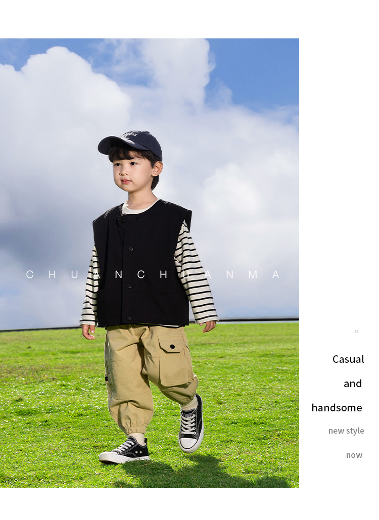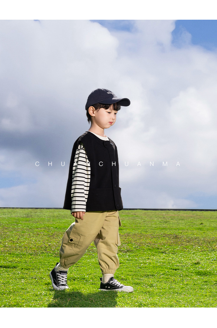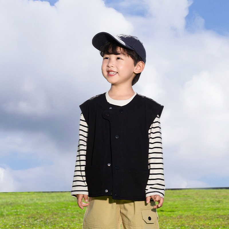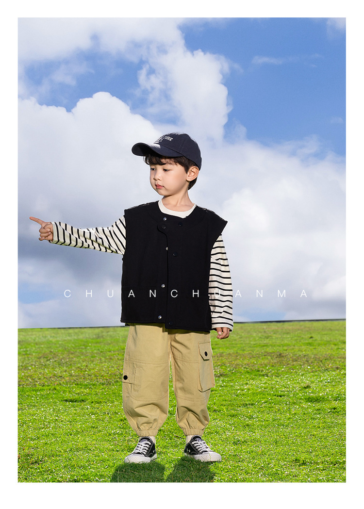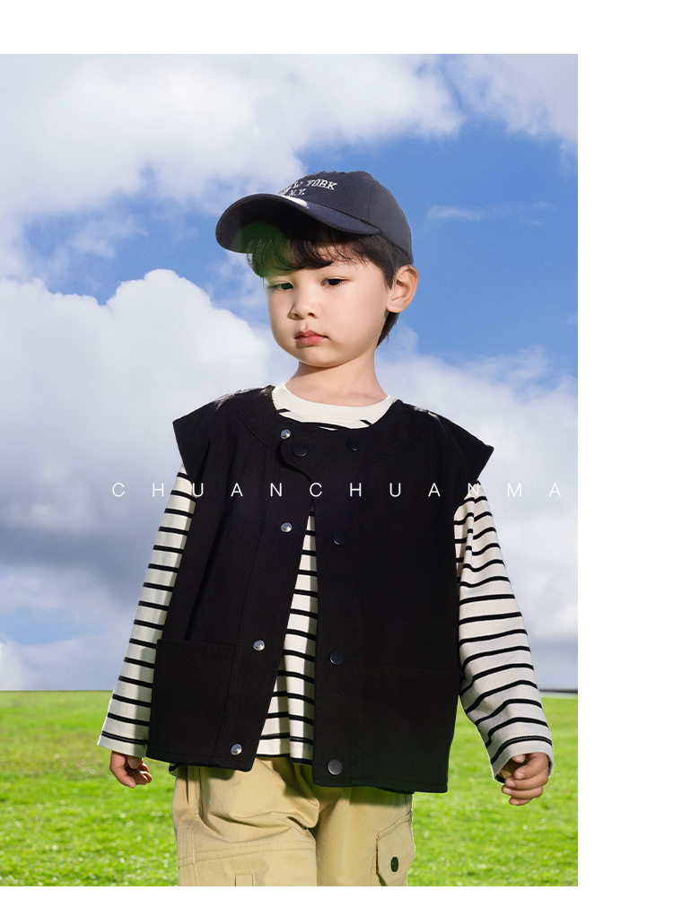 샤나오 2025 봄새 아동복 어린이 한국식 봄 · 가을 웨이스트코트 남녀를 위한 올매치 트렌디 쿨 블랙 조끼스토어 가기