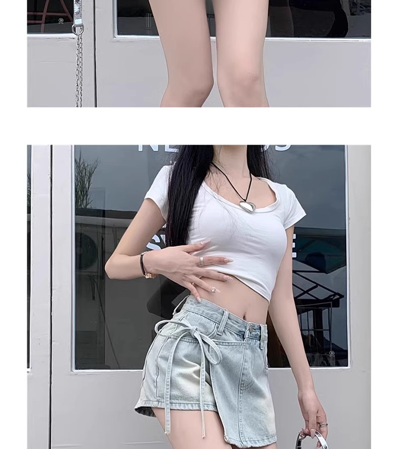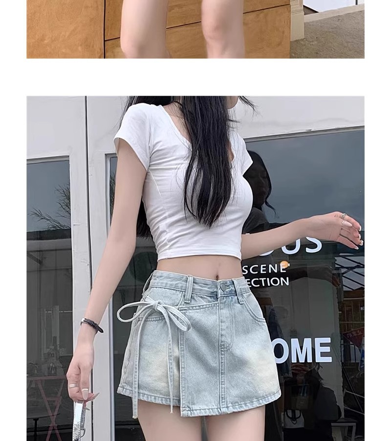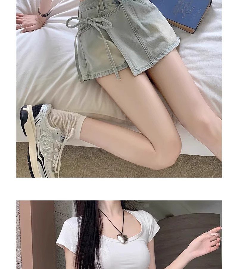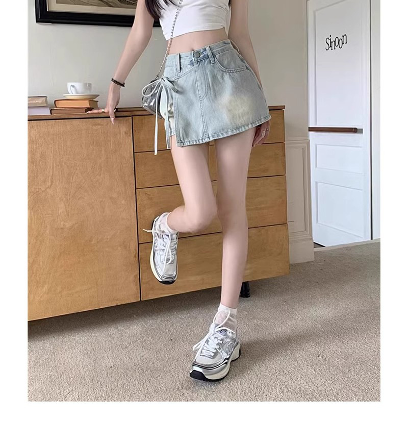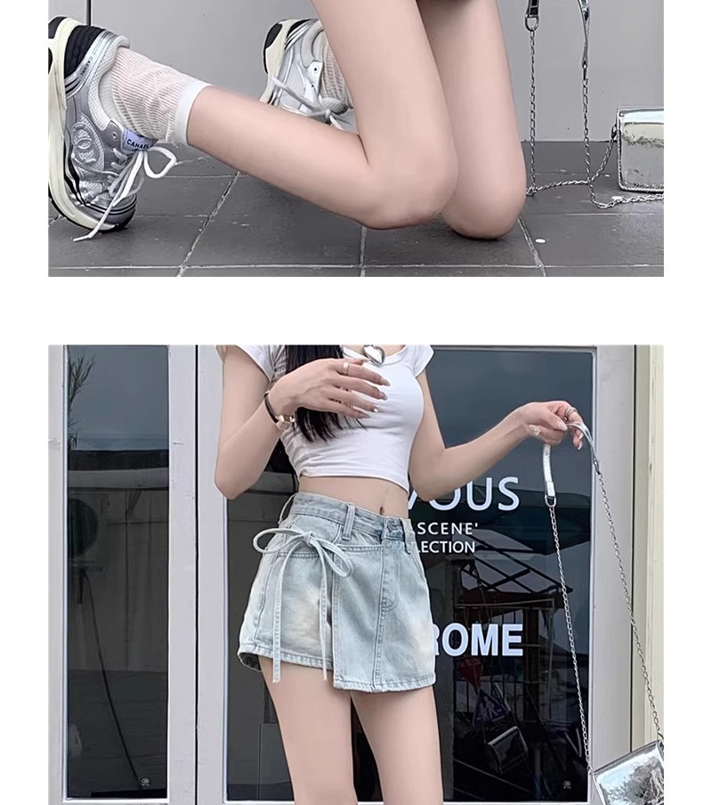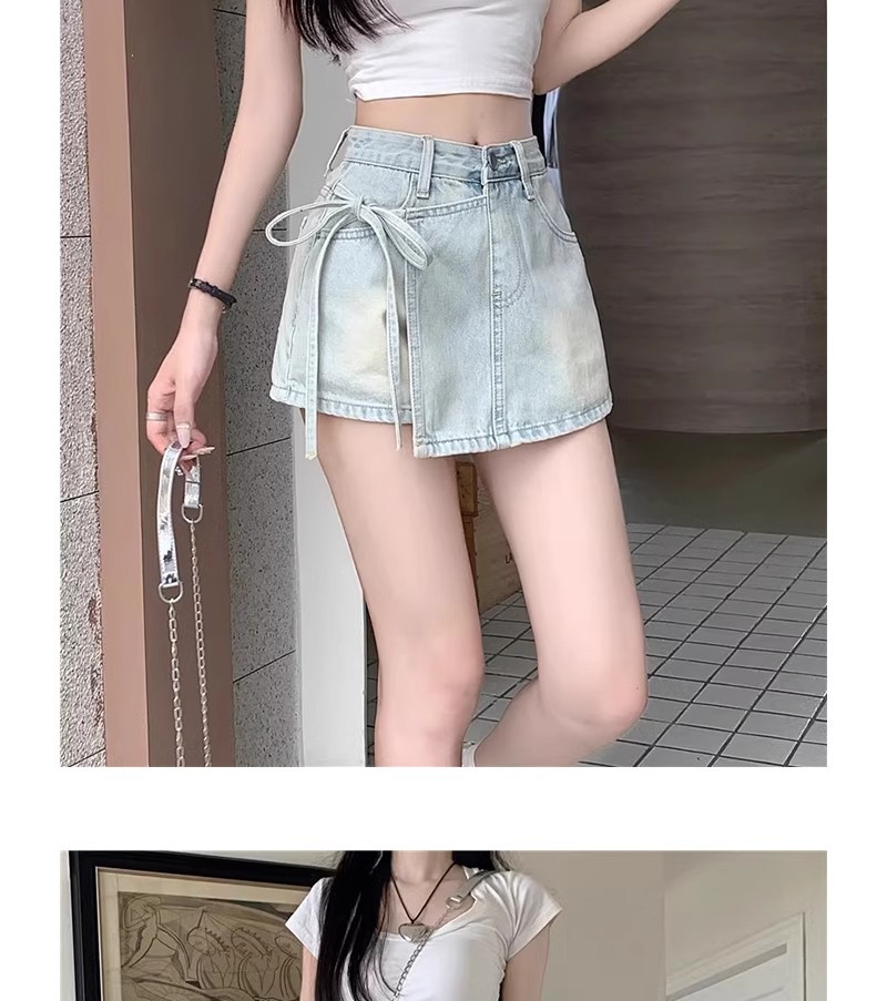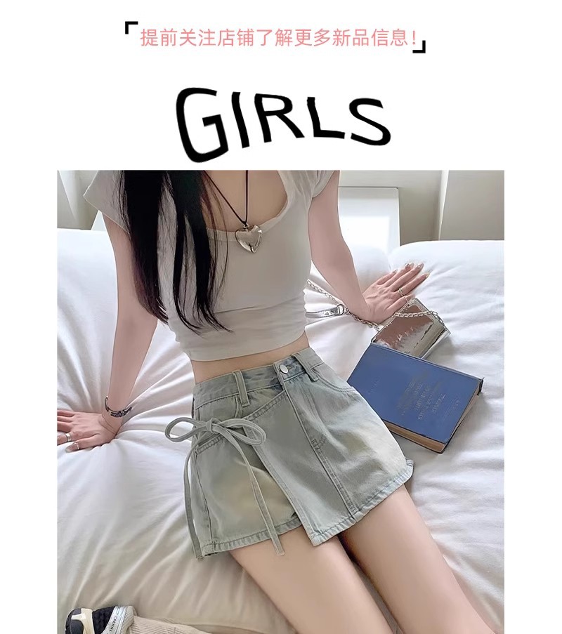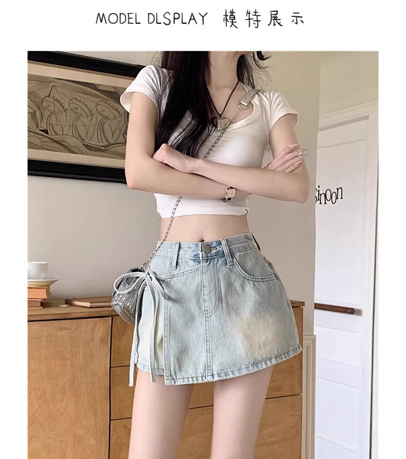 가짜 두 조각 데님 반바지 여성 여름 A 모양 높은 허리 불규칙한 서양식 스트랩 컬로 테스 작은 뜨거운 소녀 바지스토어 가기