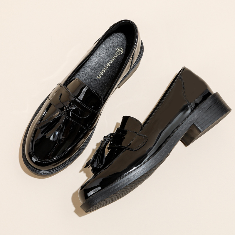 Lefu 신발 여성 영국 스타일 블랙 플랫 신발 2025 봄 Doudou 통근 신발 작은 블랙 전문 작업스토어 가기