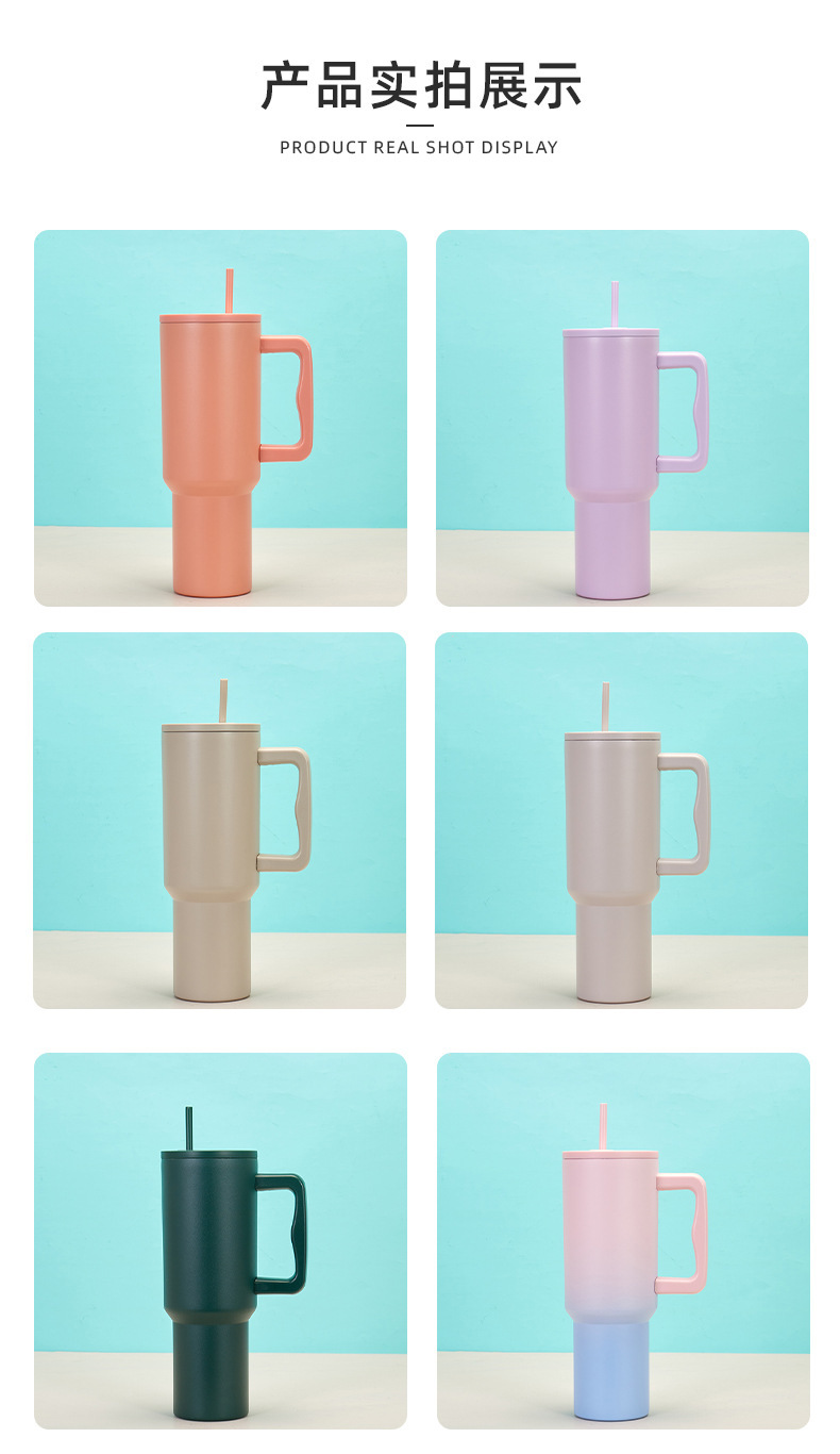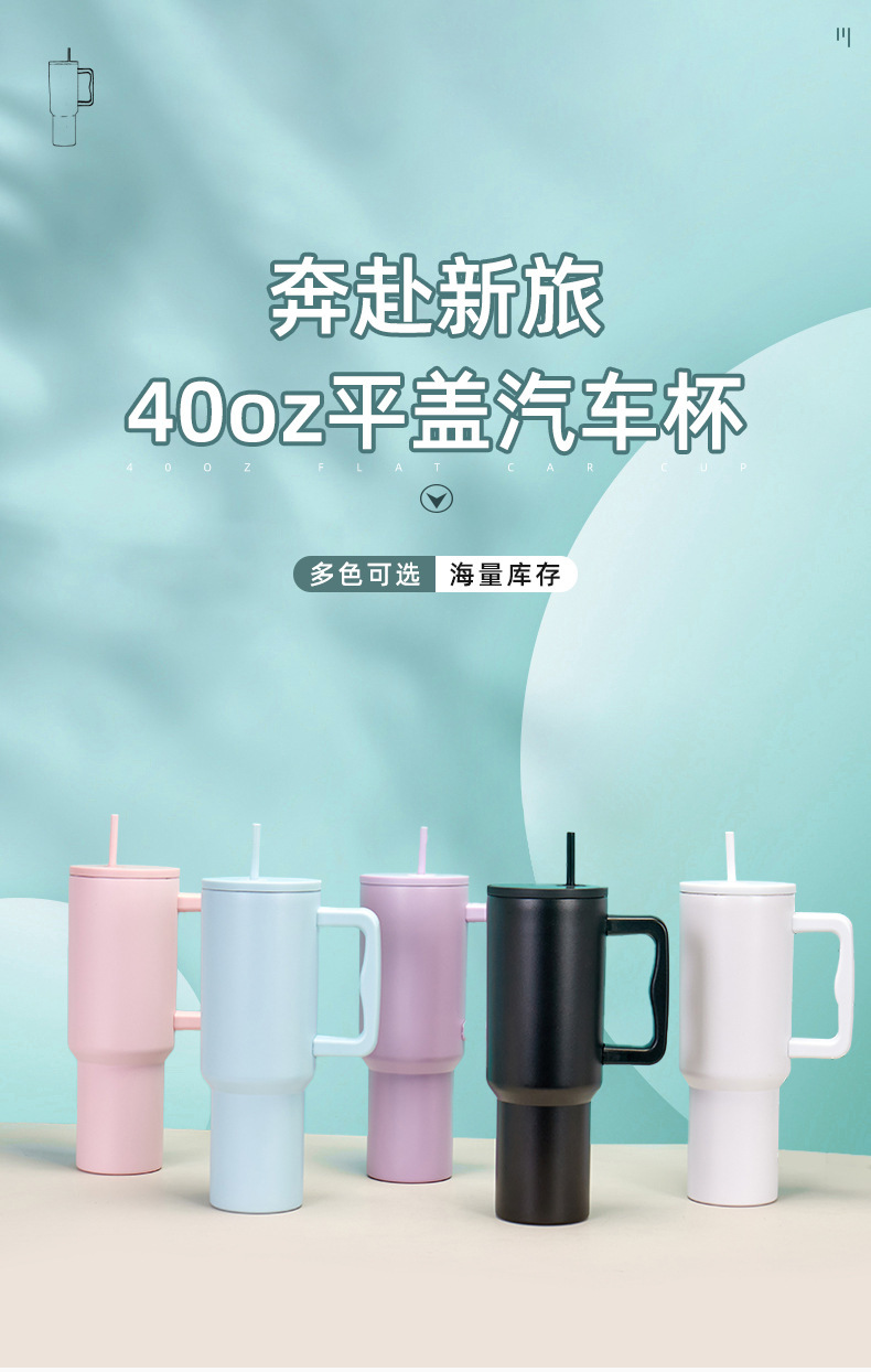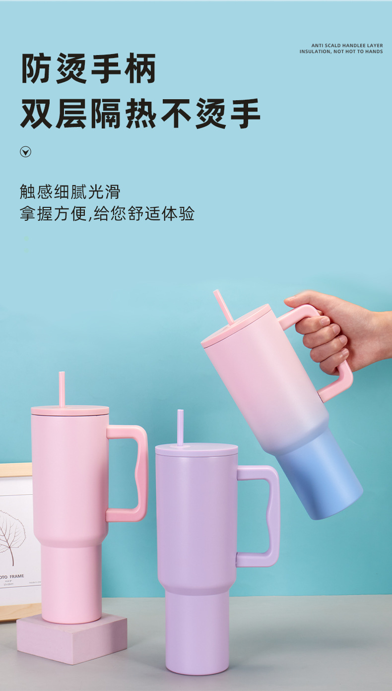 40온스 아이스 컵, 스테인리스 스틸 대용량 보온병 컵, 손잡이와 빨대가 있는 대용량 차량용 컵, 휴대용 컵
