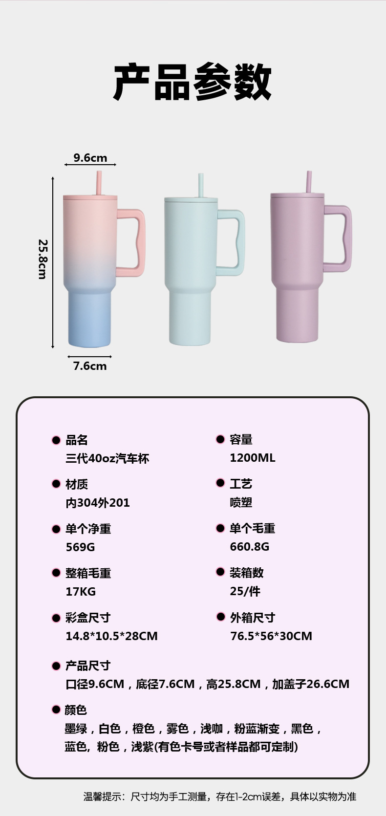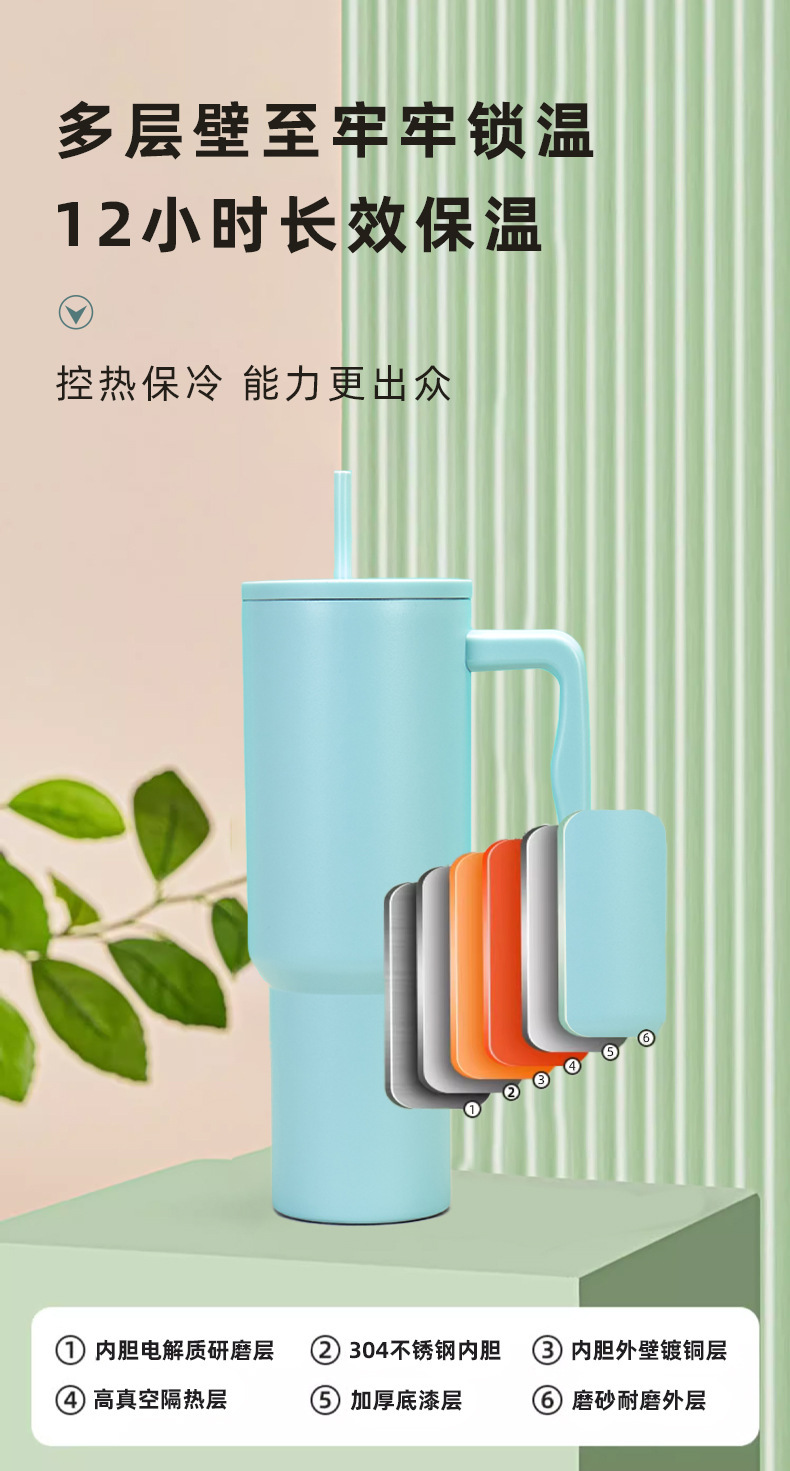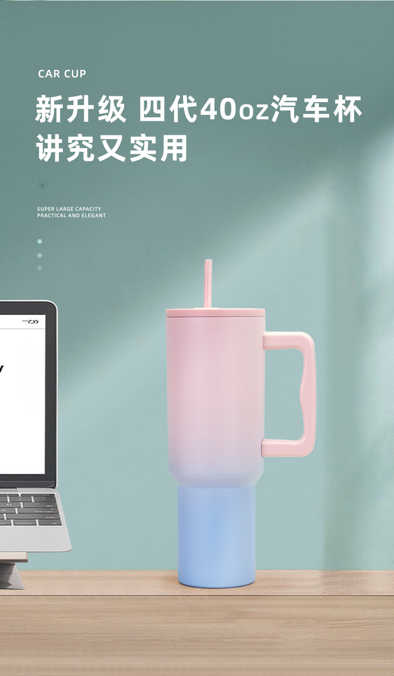 40온스 아이스 컵, 스테인리스 스틸 대용량 보온병 컵, 손잡이와 빨대가 있는 대용량 차량용 컵, 휴대용 컵