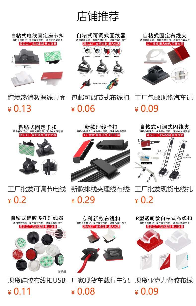 자체 접착식 전선 네트워크 케이블 고정대 접착식 와이어 클립 플라스틱 와이어 홀더 무타공 클립스토어 가기
