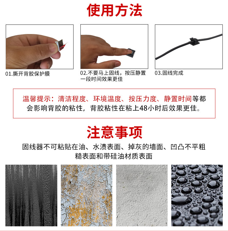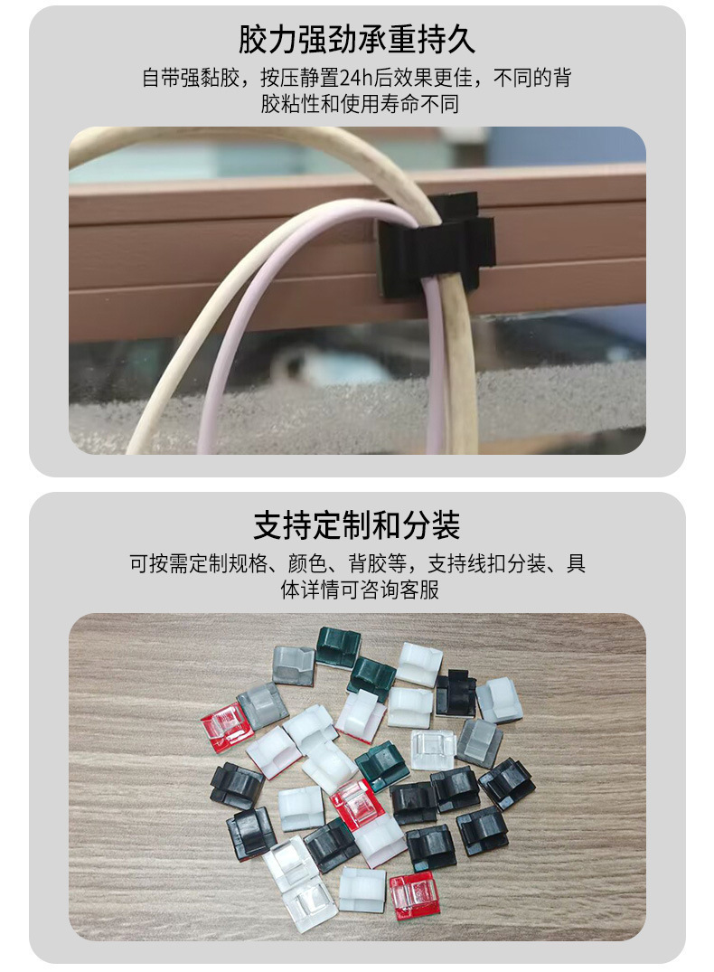 자체 접착식 전선 네트워크 케이블 고정대 접착식 와이어 클립 플라스틱 와이어 홀더 무타공 클립