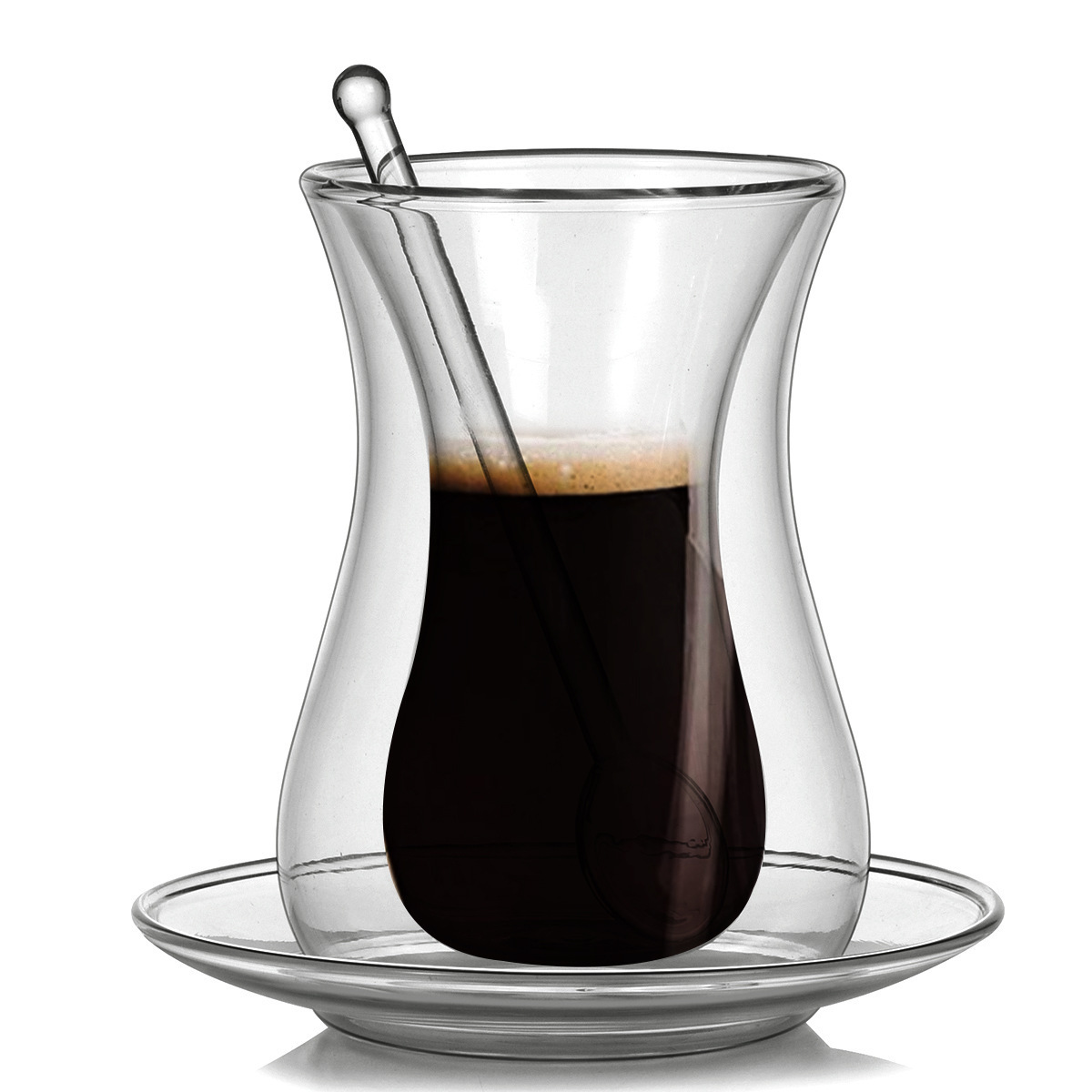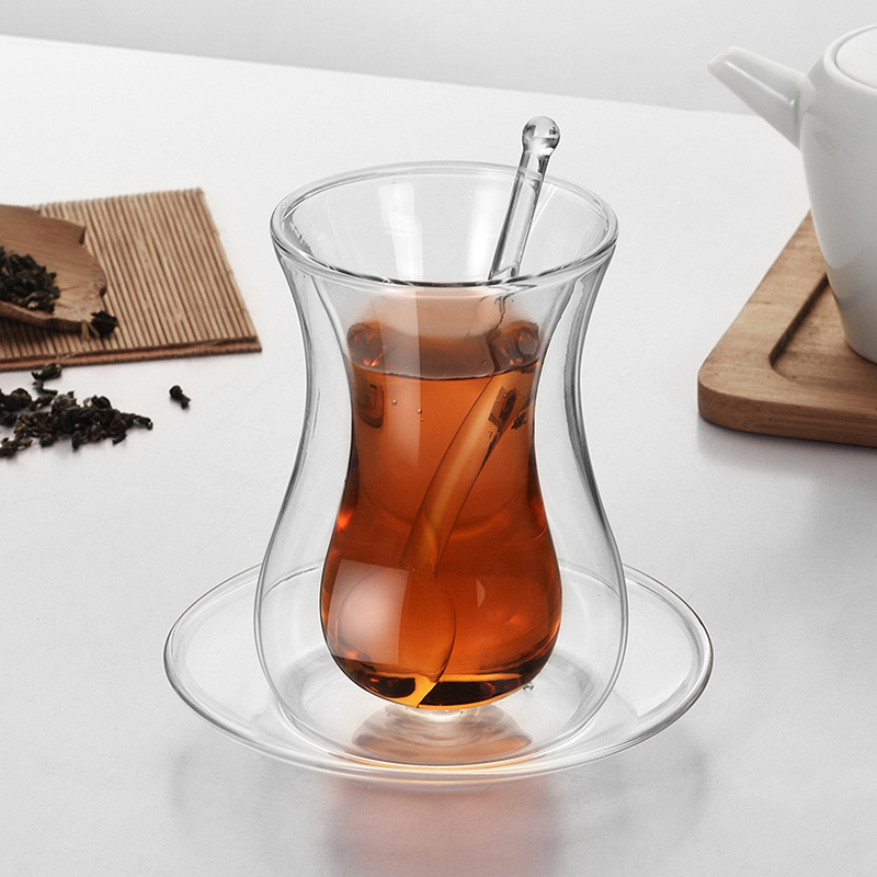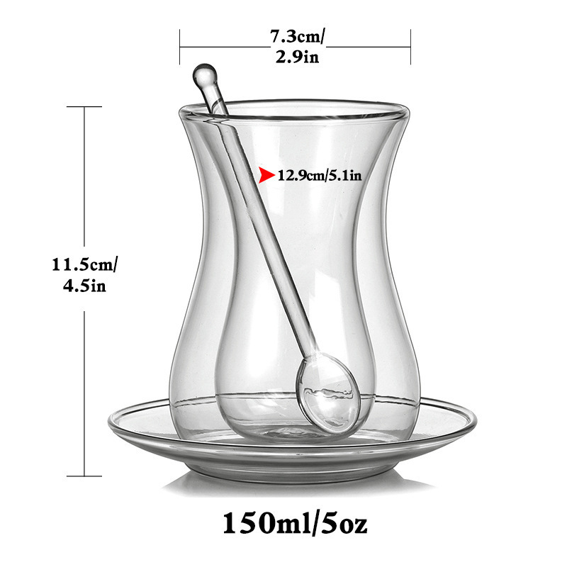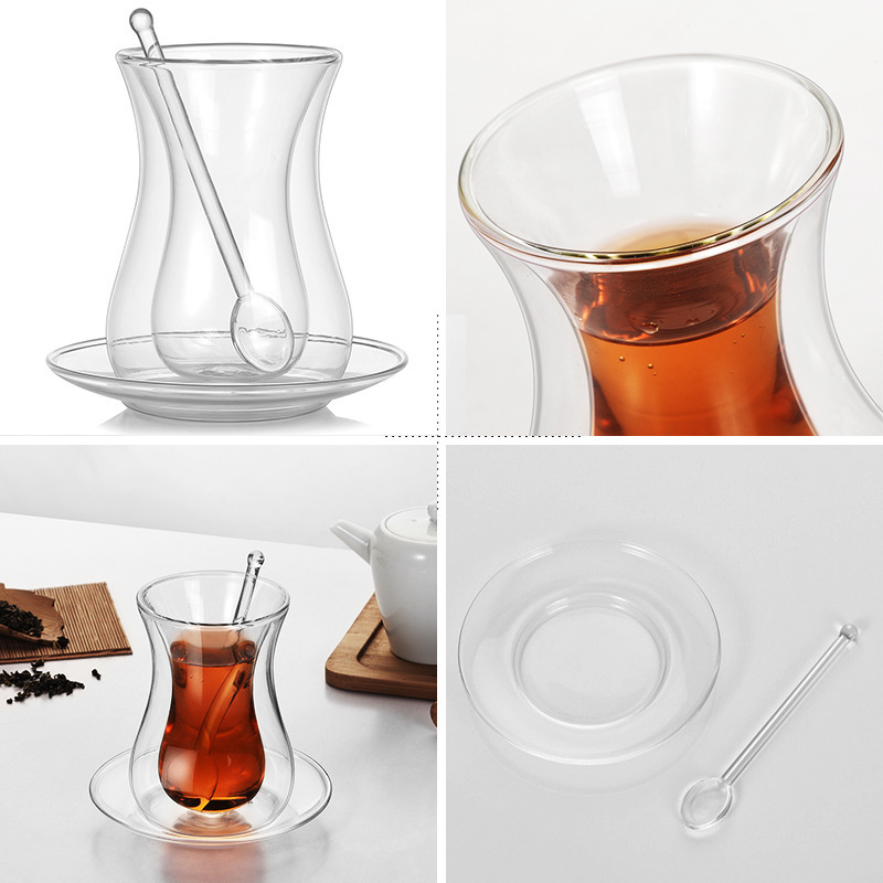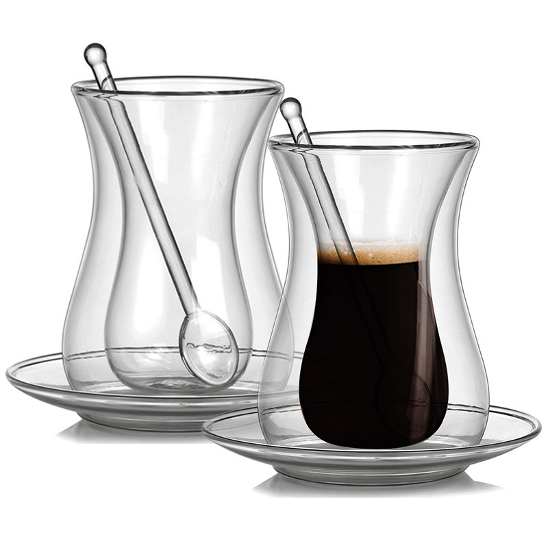 유리 스푼 세트 절연 이중 층 유리 투명한 홍차 컵 가정용 차 컵과 함께 접시 커피 컵