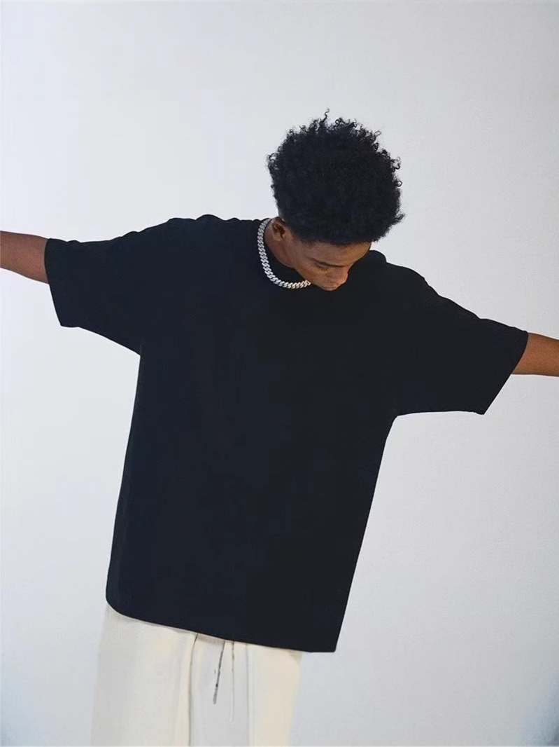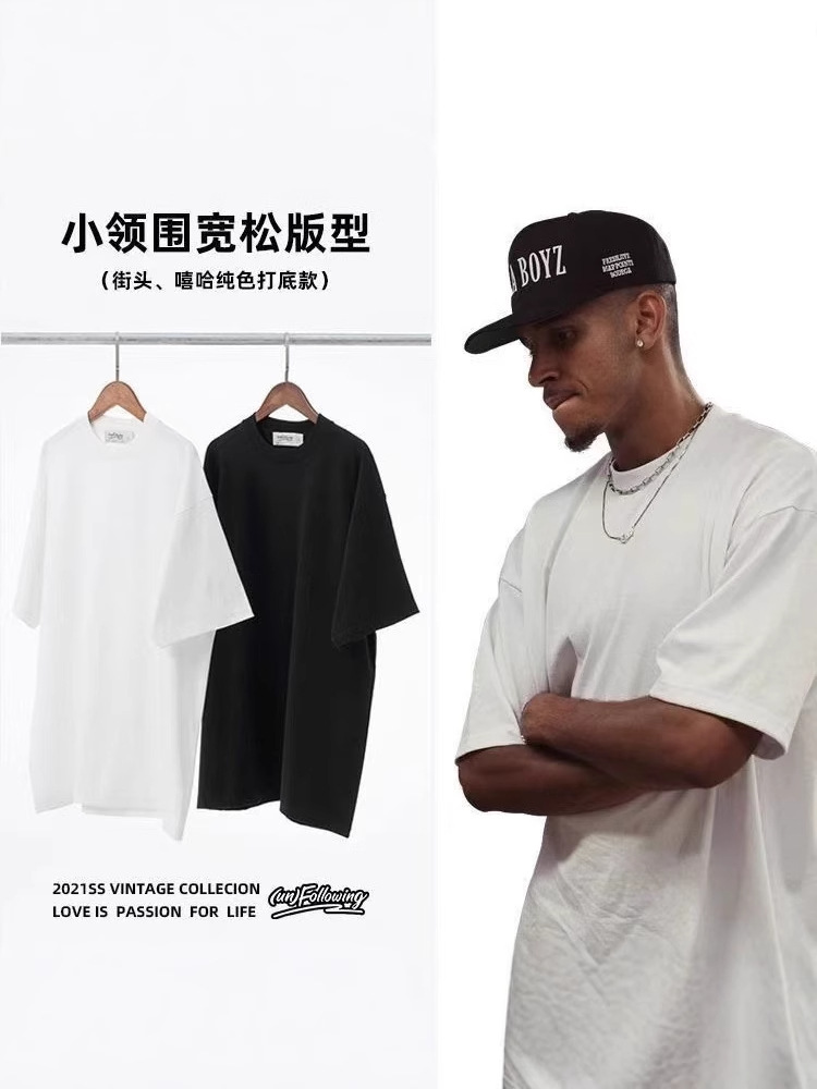 Guochao 600g 헤비급 신장 순수 코튼 남성 여름 반팔 티셔츠 솔리드 컬러 커플 착용 느슨한 도매 기본 셔츠스토어 가기