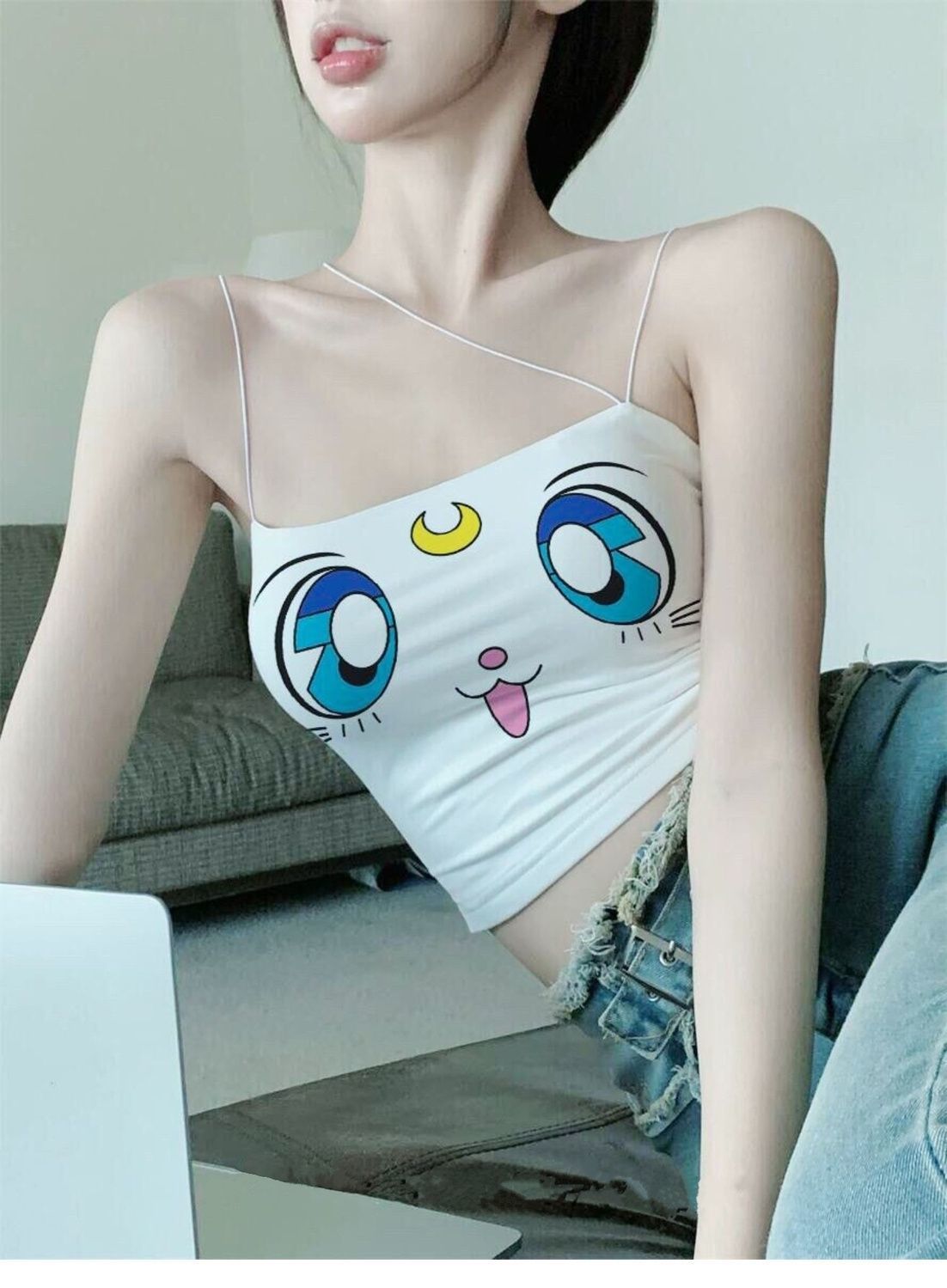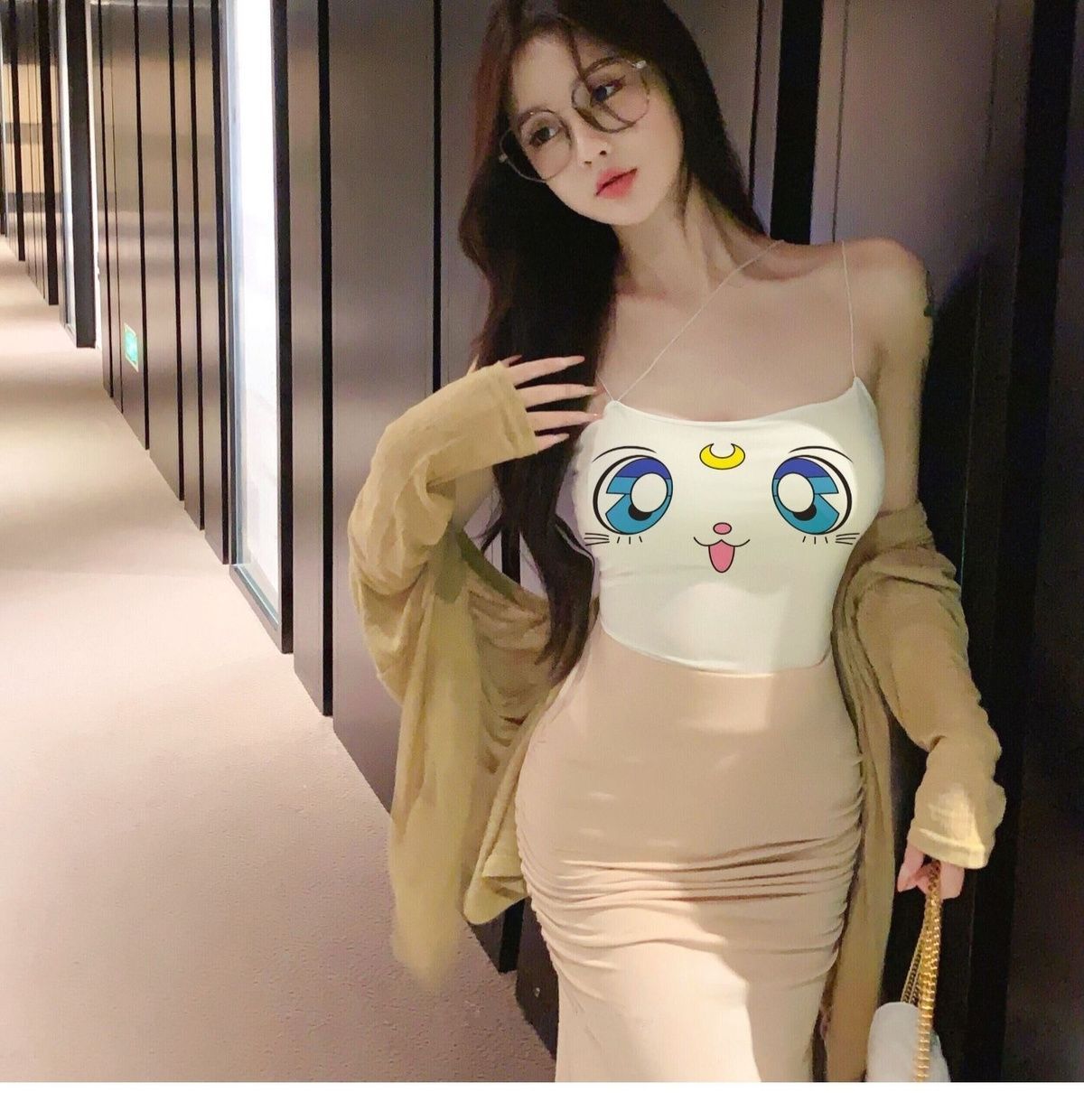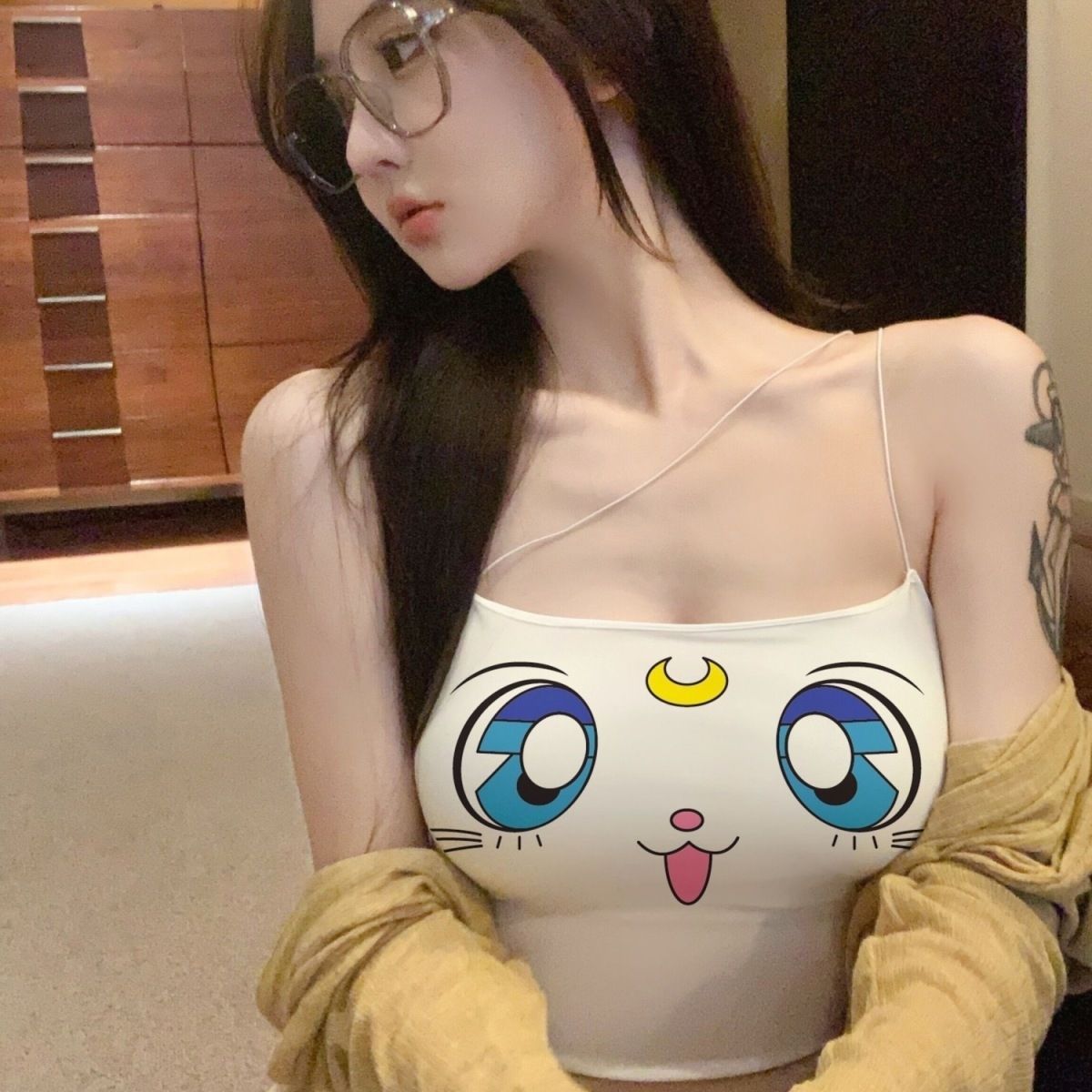 뜨거운 여자 섹시한 조끼베이스 여성의 순수한 욕망 스타일 달콤한 매운 캐리 머신 삼각형 짧은 슬링 벨트 배꼽 외관 착용 탑스토어 가기