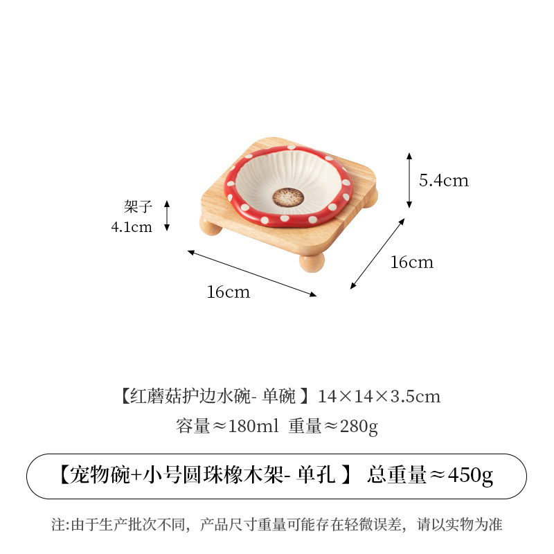 창의적인 빨간 버섯 시리즈 세라믹 애완동물 그릇 귀여운 고양이와 강아지 그릇 가정용 고양이와 강아지 식기 물그릇 고양이 밥그릇