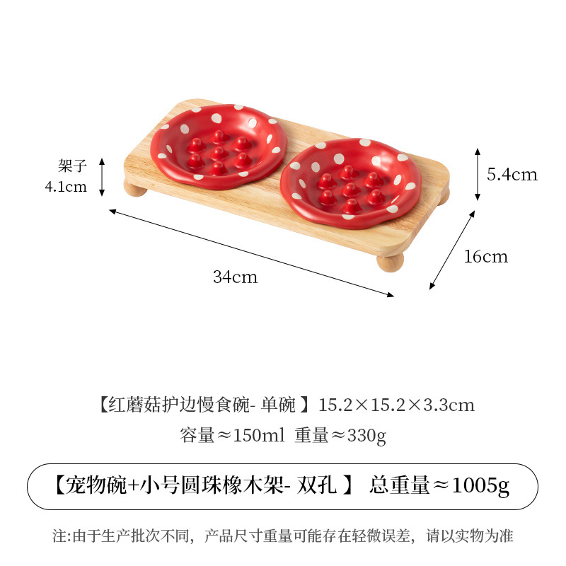 • 버섯 슬로우 푸드 그릇*2+이중 구멍 둥근 구슬 오크 스탠드