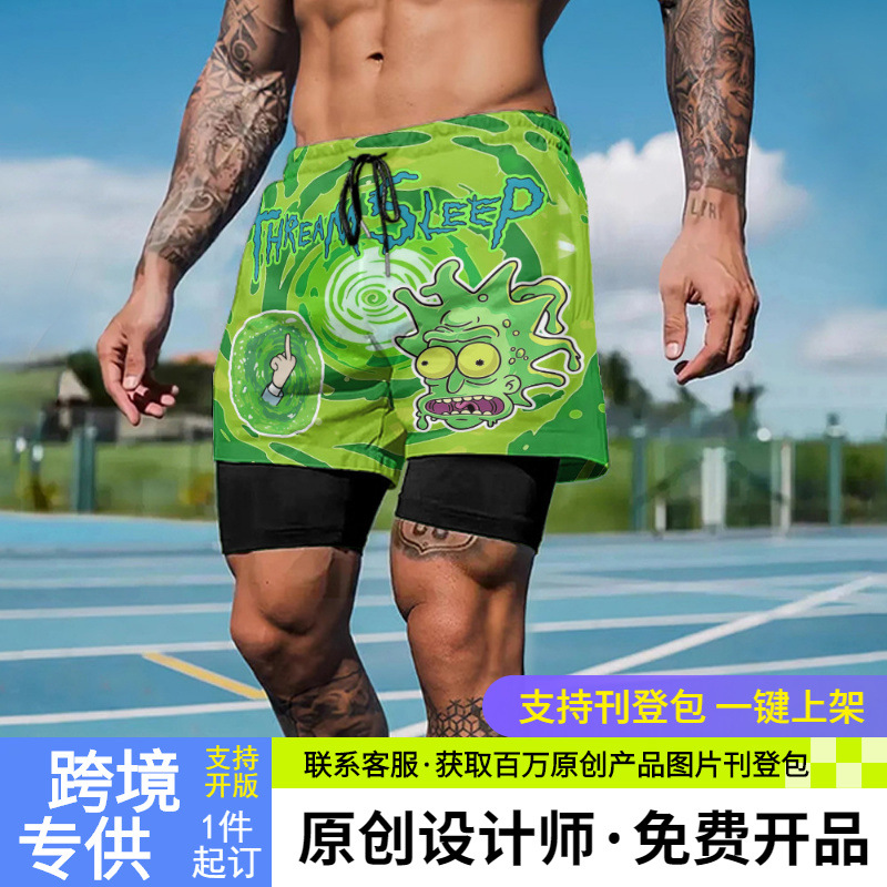 새로운 만화풍 재미있는 미국식 농구 반바지 남성용 러닝 스포츠 투피스 트레이닝 팬츠 트렌디 브랜드 여름스토어 가기