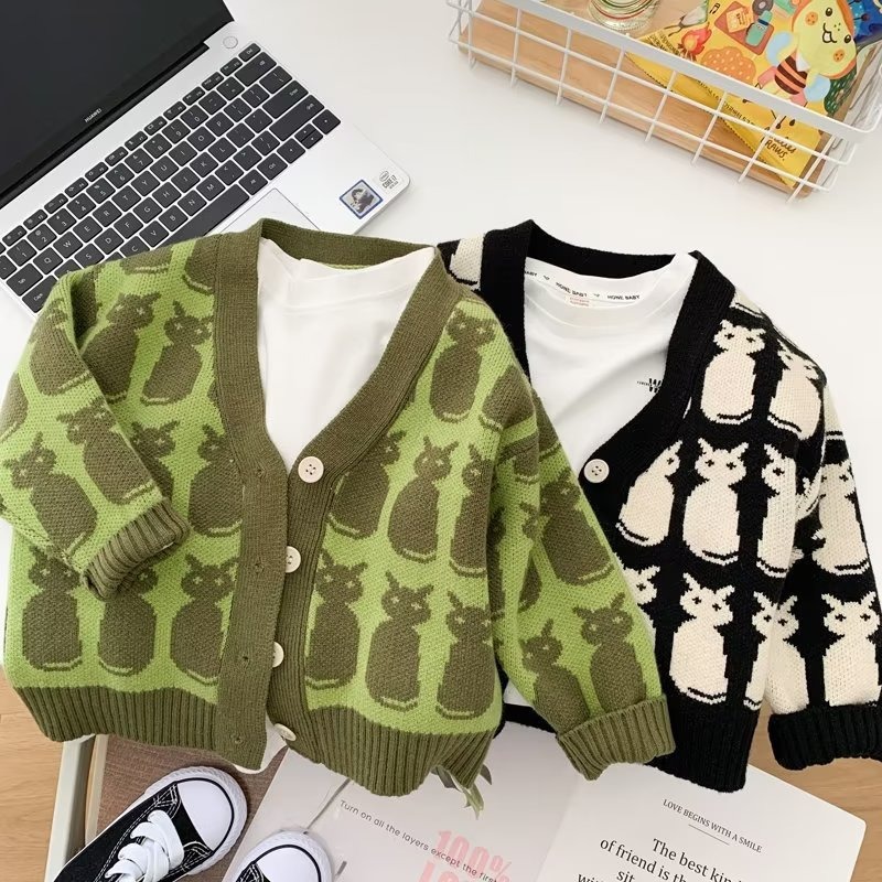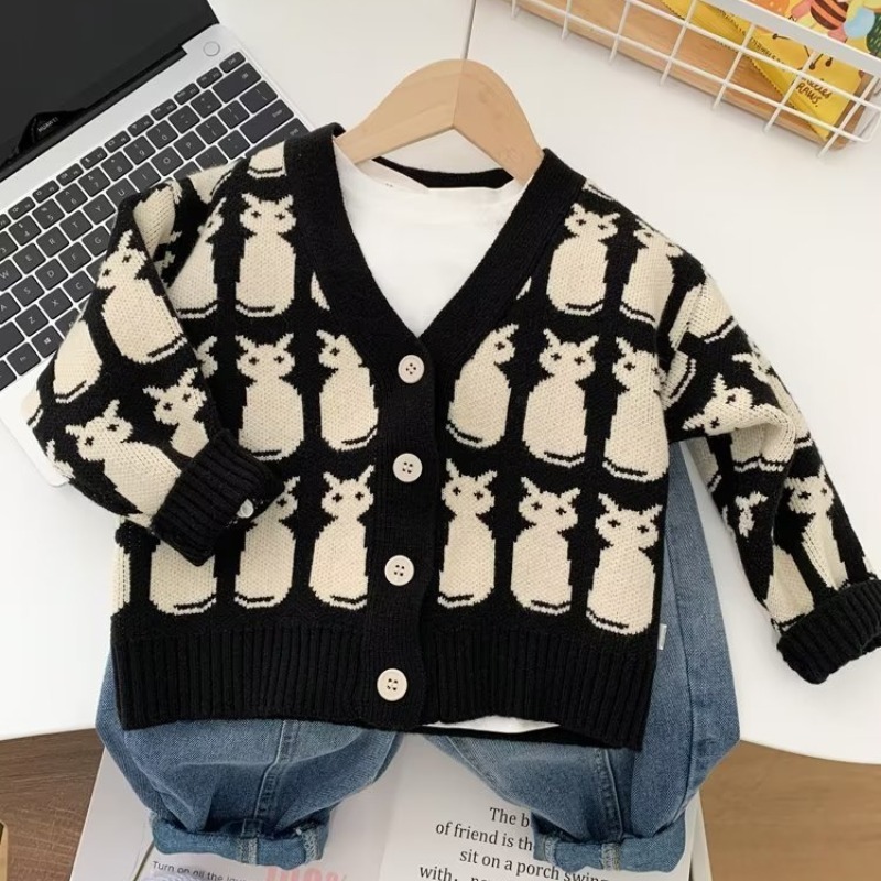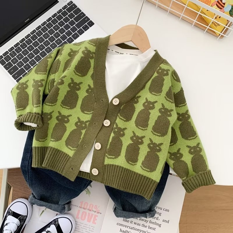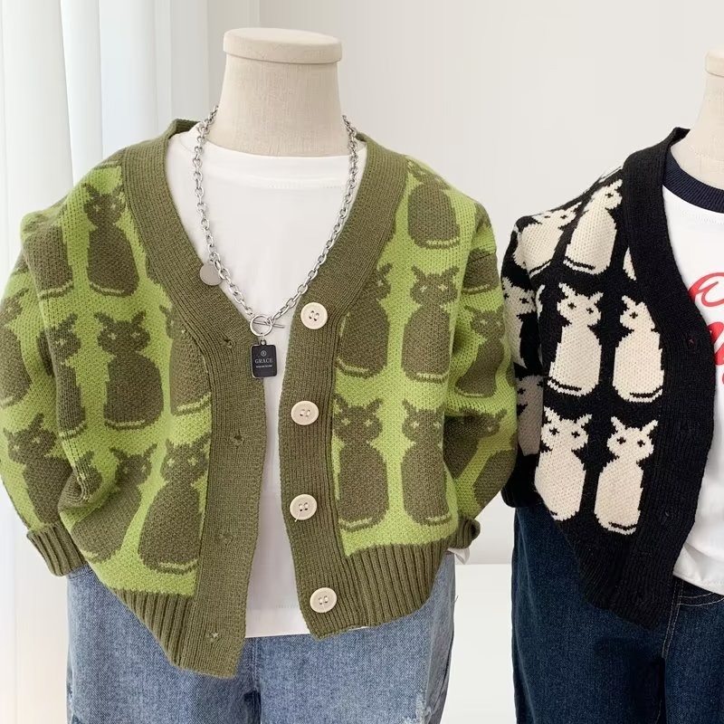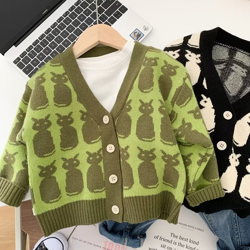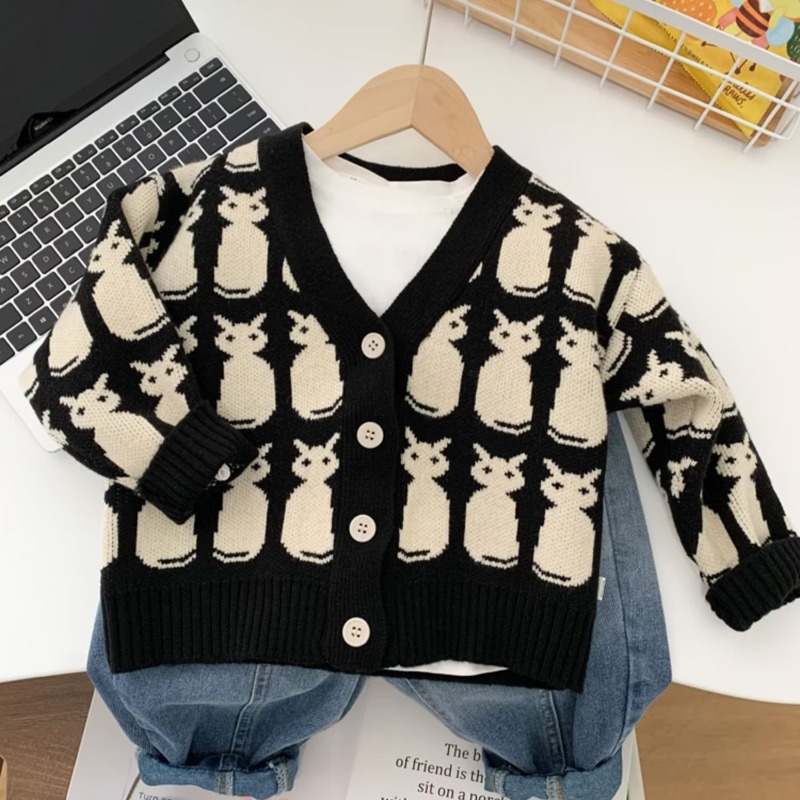 소년 카디건 스웨터 2024 새로운 유행 어린이 봄과 가을 코트 어린이 한국식 V 넥 스웨터 트렌디스토어 가기