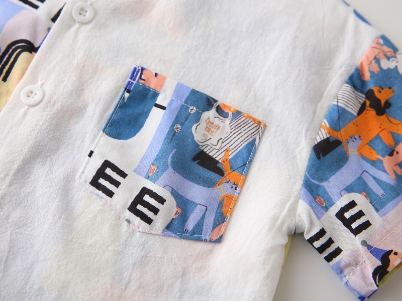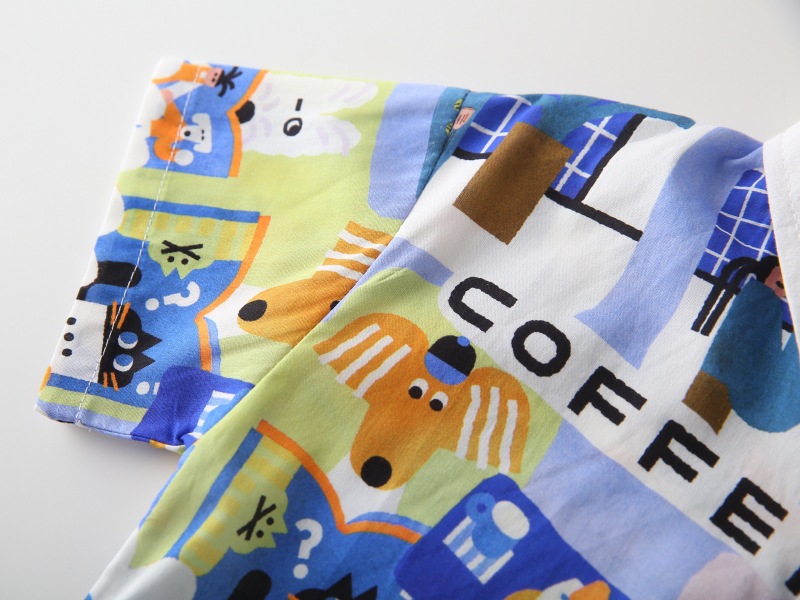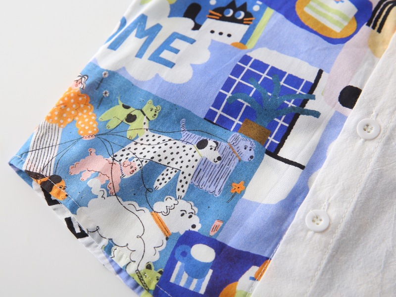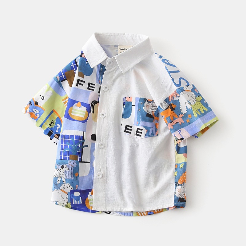 패션 여름 도매 2025 새로운 소년 반팔 셔츠 한국 아기 인쇄 바느질 짧은 소매 셔츠 세대스토어 가기