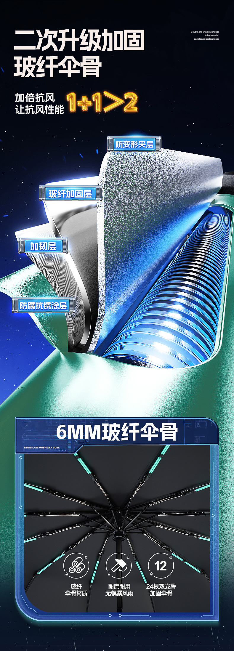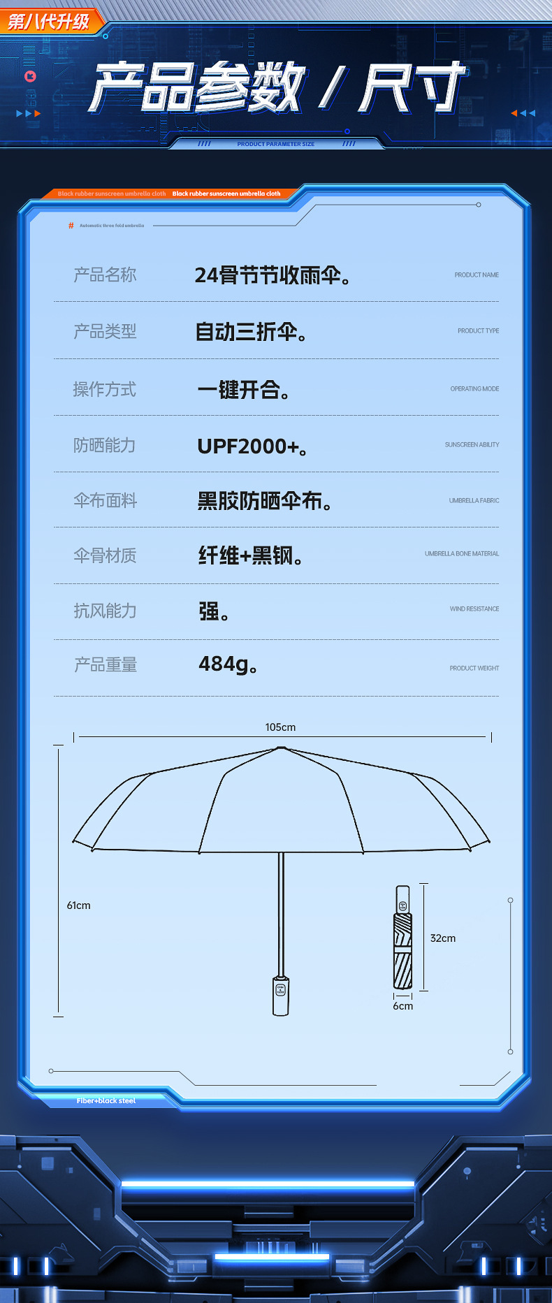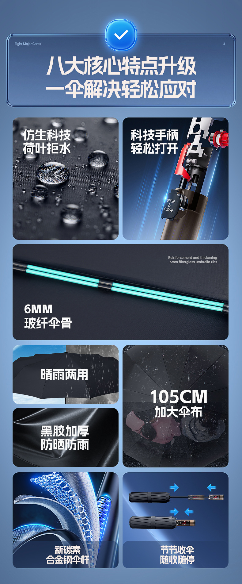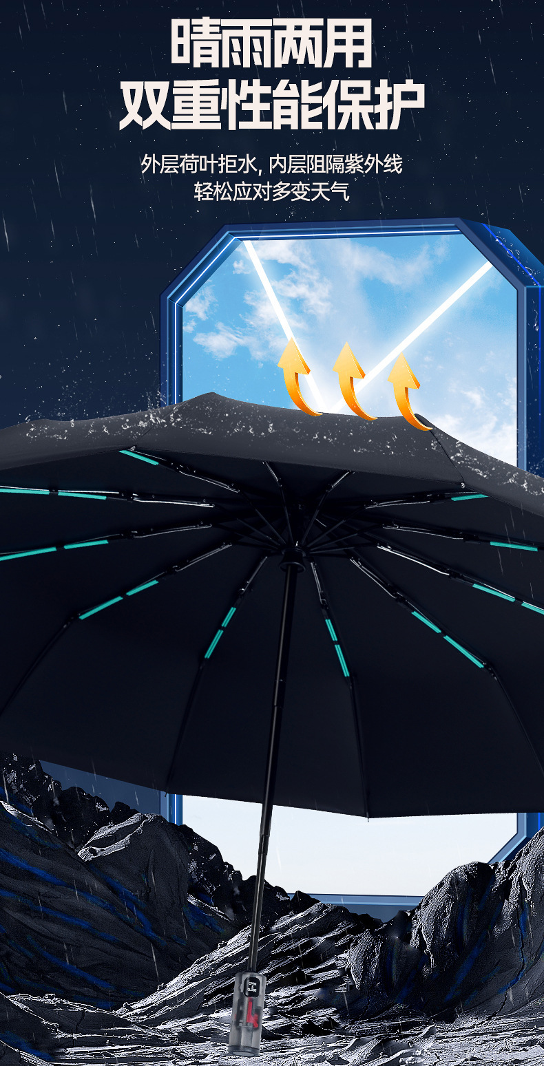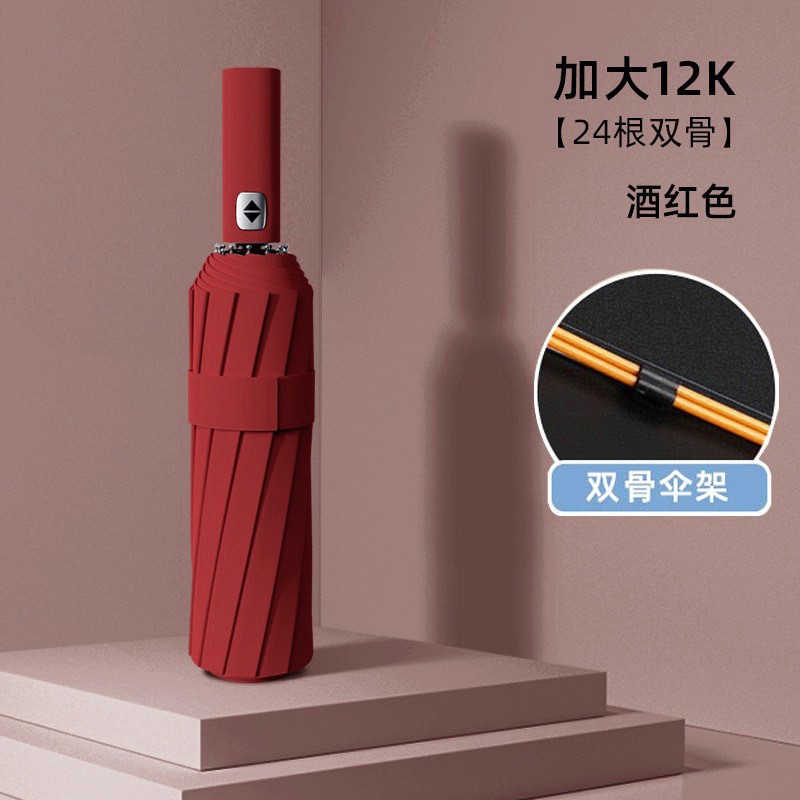 24개의 뼈가 있는 자동 접이식 우산, 대형 및 두꺼운, 비와 햇빛 모두 사용 가능, 접이식 자외선 차단 우산, 맞춤형 로고 가능