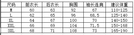 更新衣服尺寸,按照这个表格为准2025. 9.10