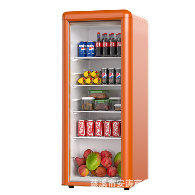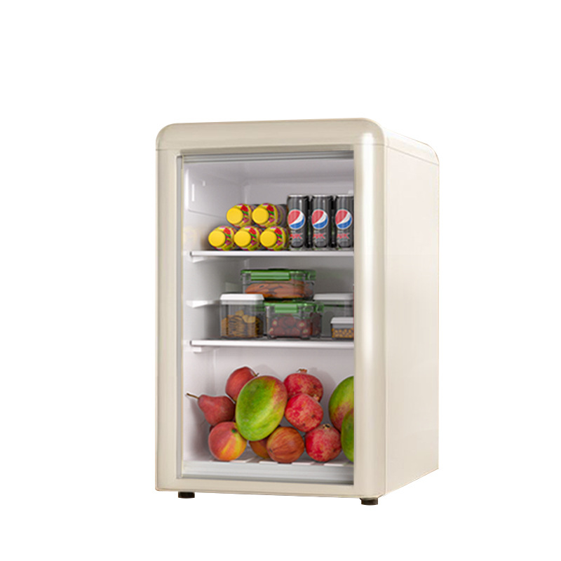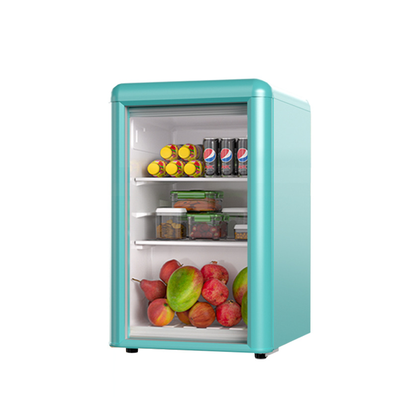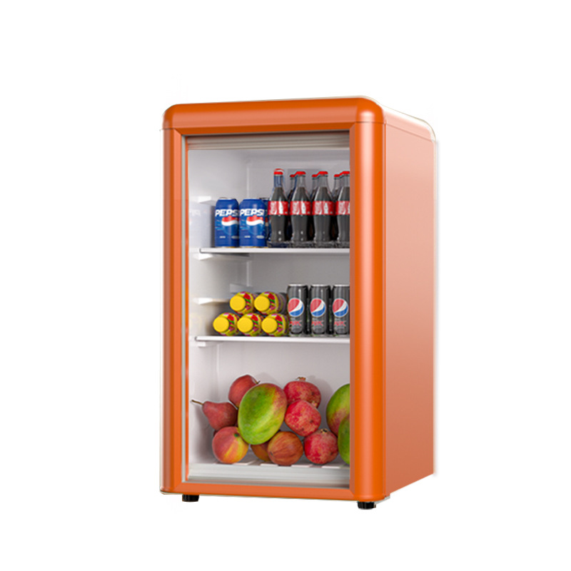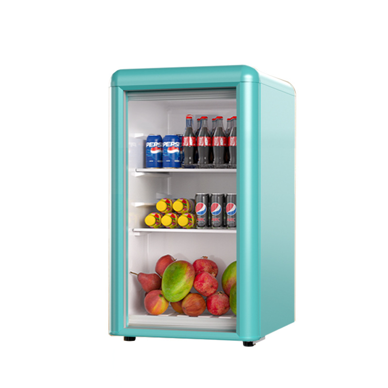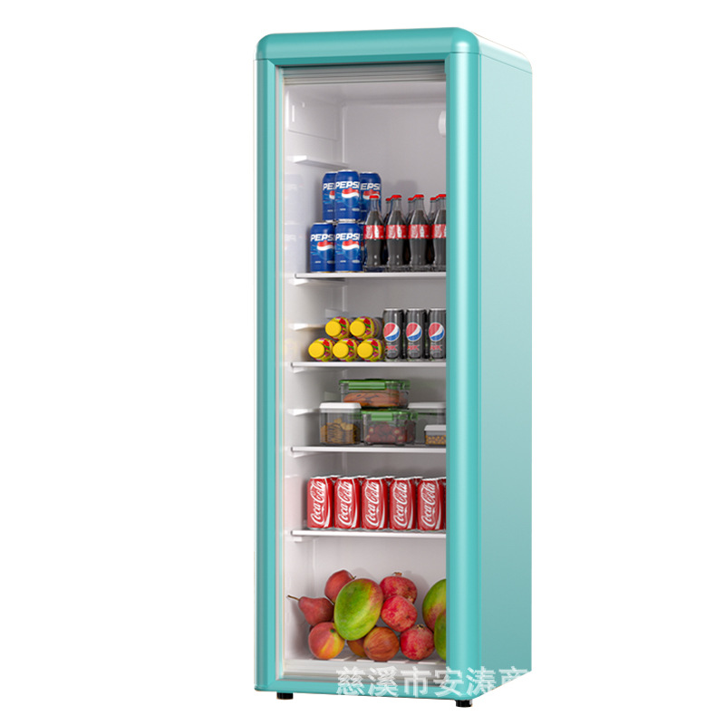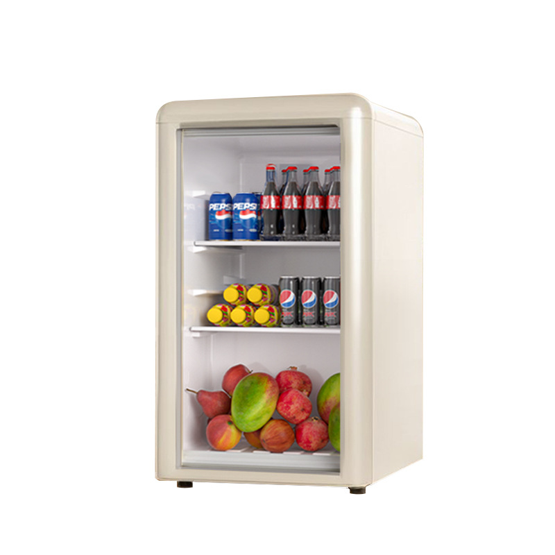 Weili 레트로 아이스 바 가정용 미니 냉장고 단일 도어 유리 도어 사무실 냉장고 음료 캐비닛 차 보관