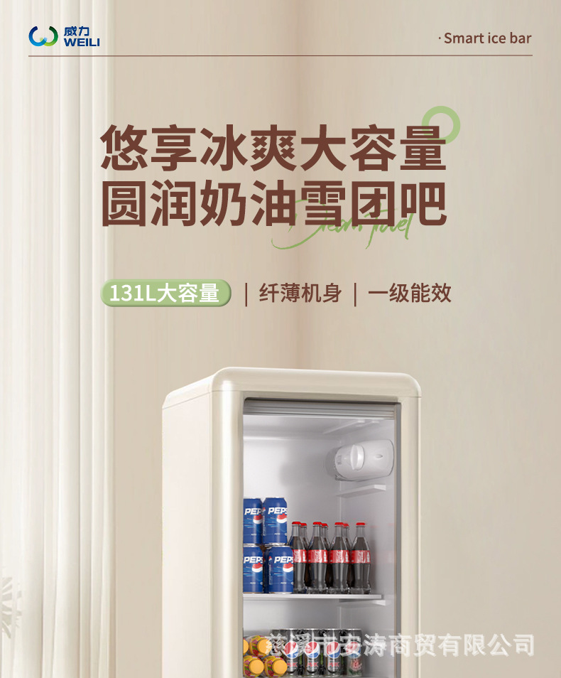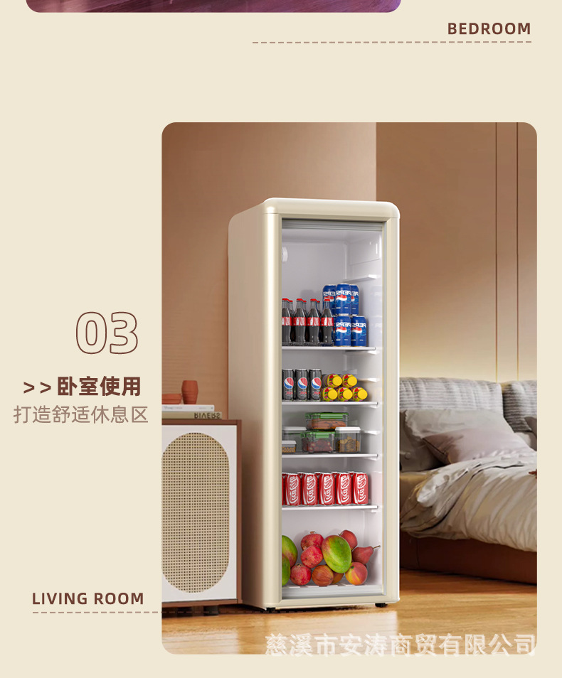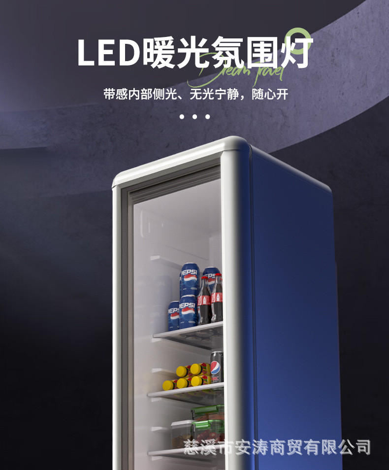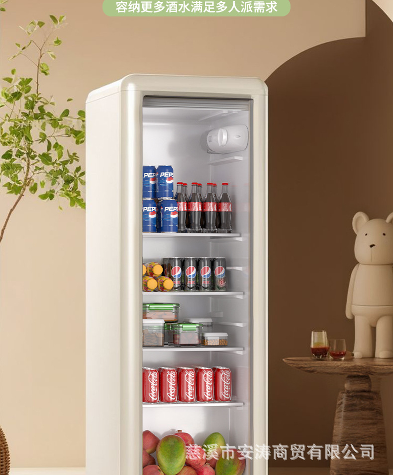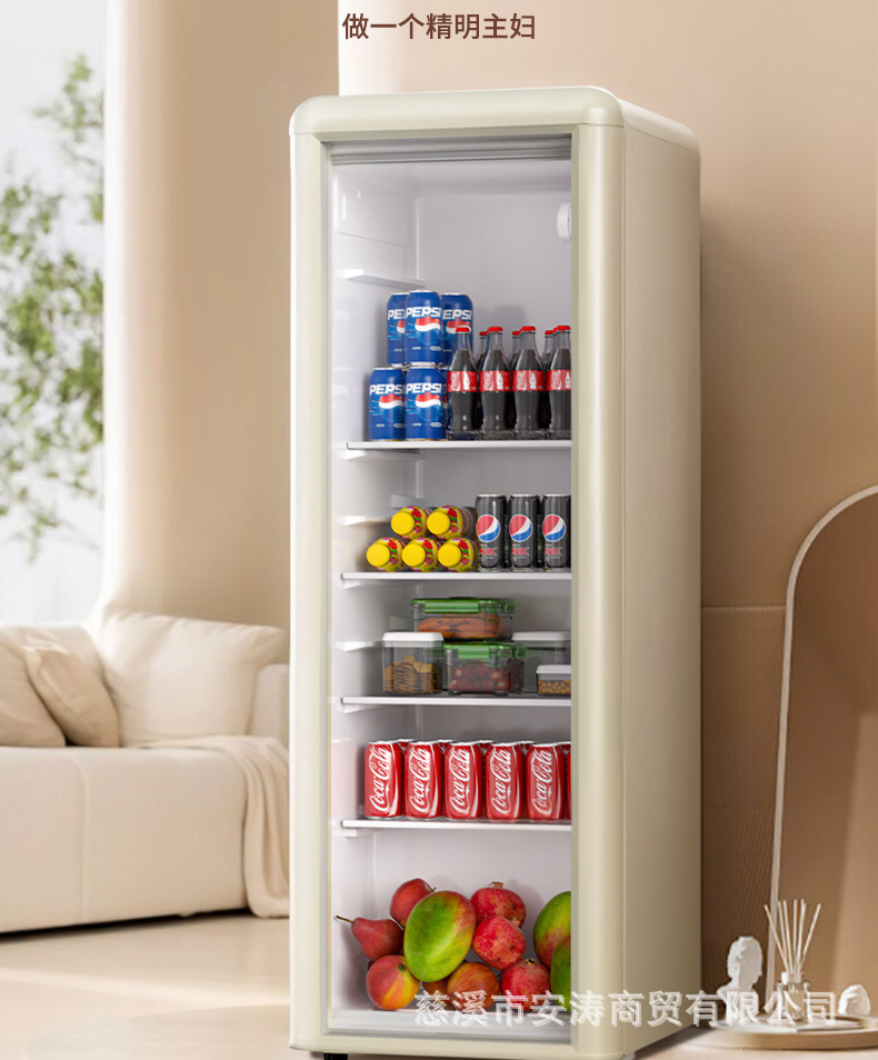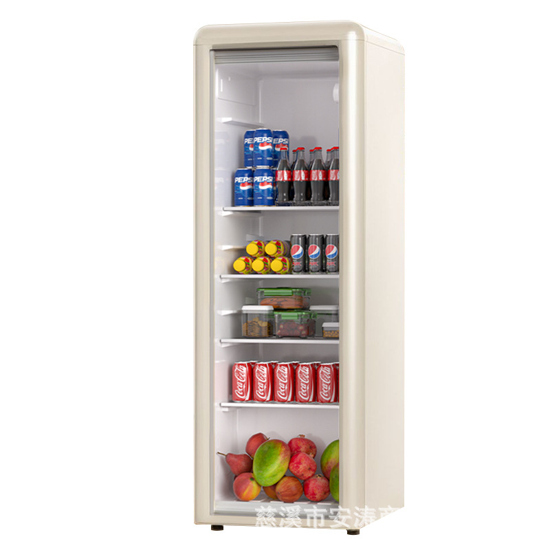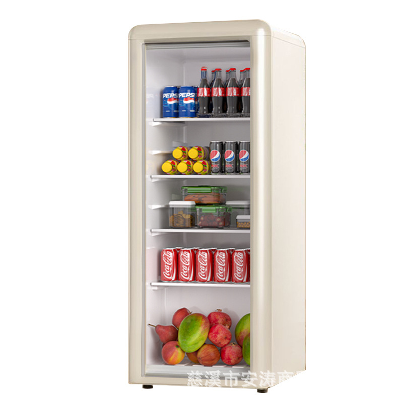 Weili 레트로 아이스 바 가정용 미니 냉장고 단일 도어 유리 도어 사무실 냉장고 음료 캐비닛 차 보관
